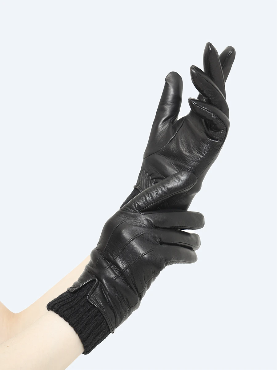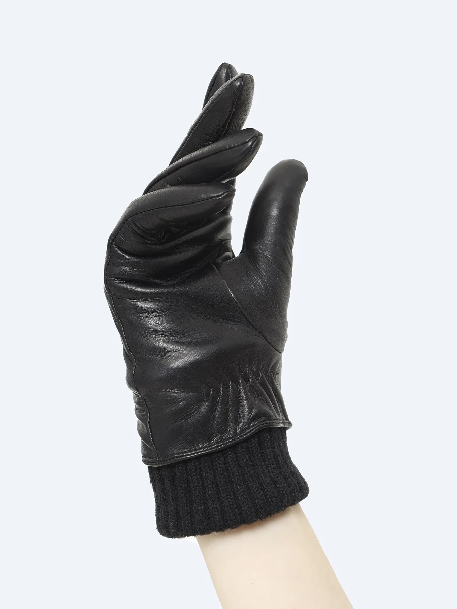 Женские перчатки из натуральной кожи с трикотажным манжетом. Внутри шерстяная подкладка.