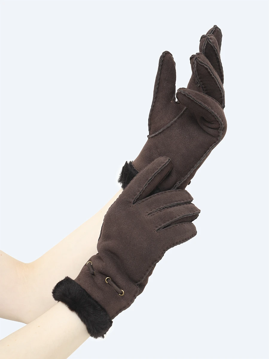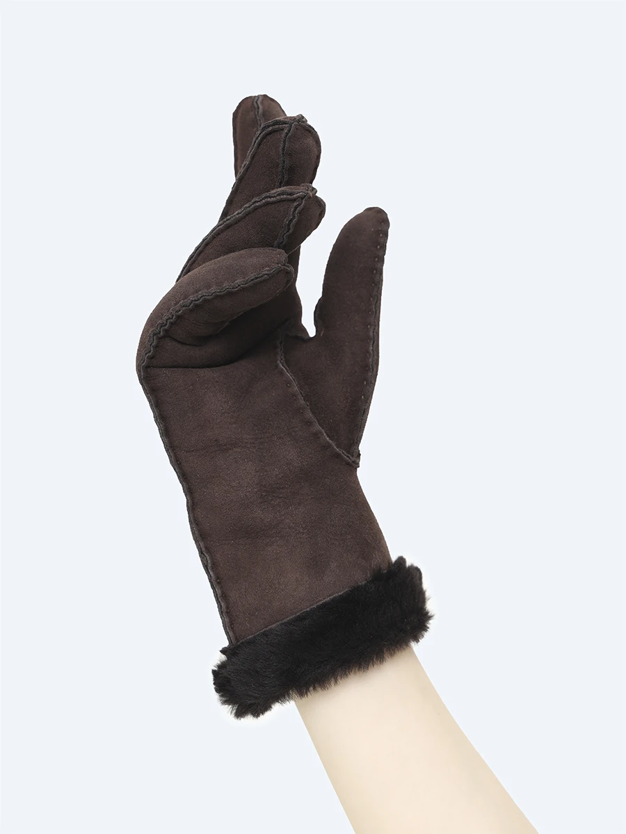Женские перчатки из материала дабл-фейс. Внутри мех.