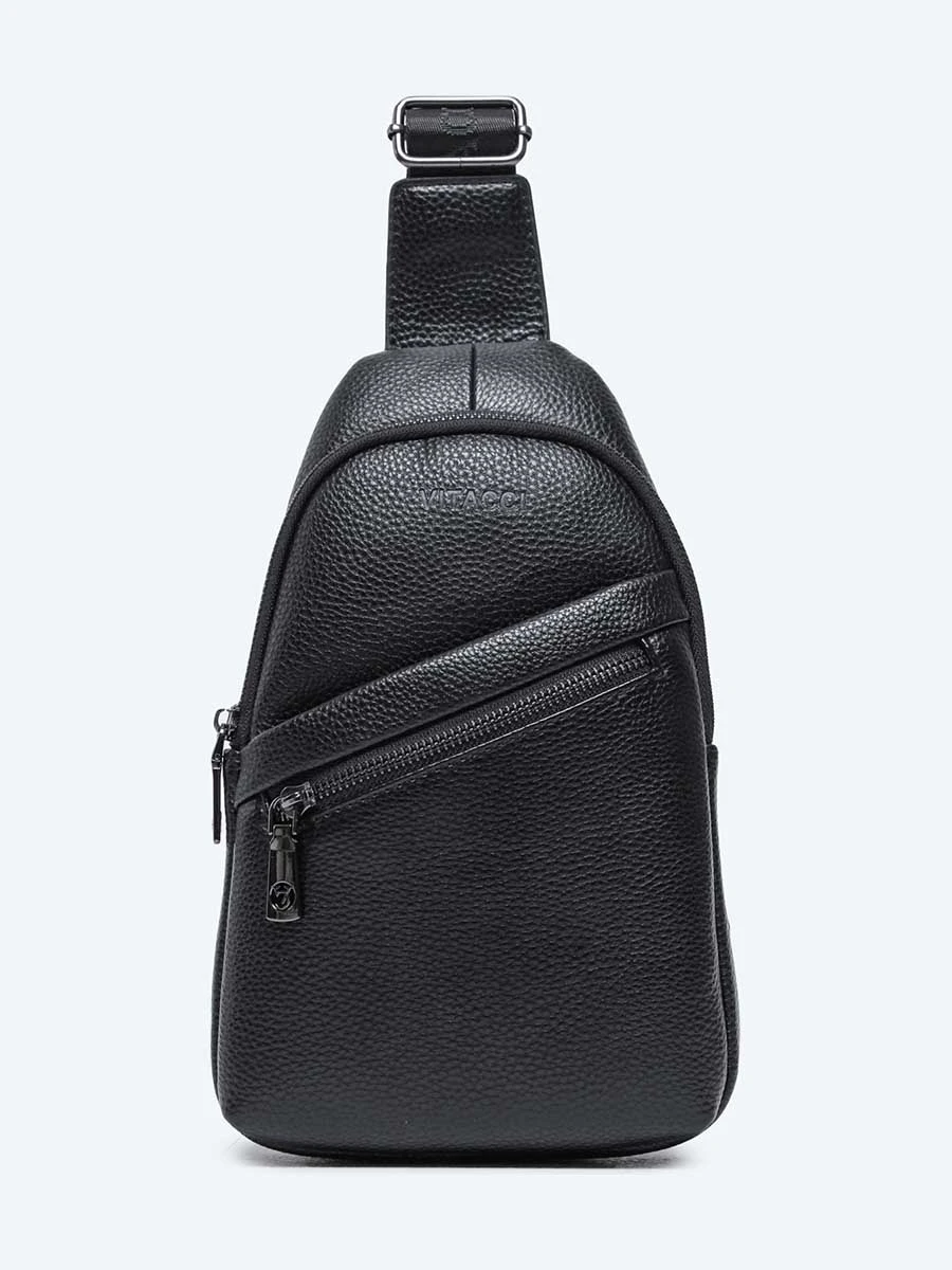 Рюкзак на одно плечо выполнен из искусственной кожи. Подойдет для повседневной носки.