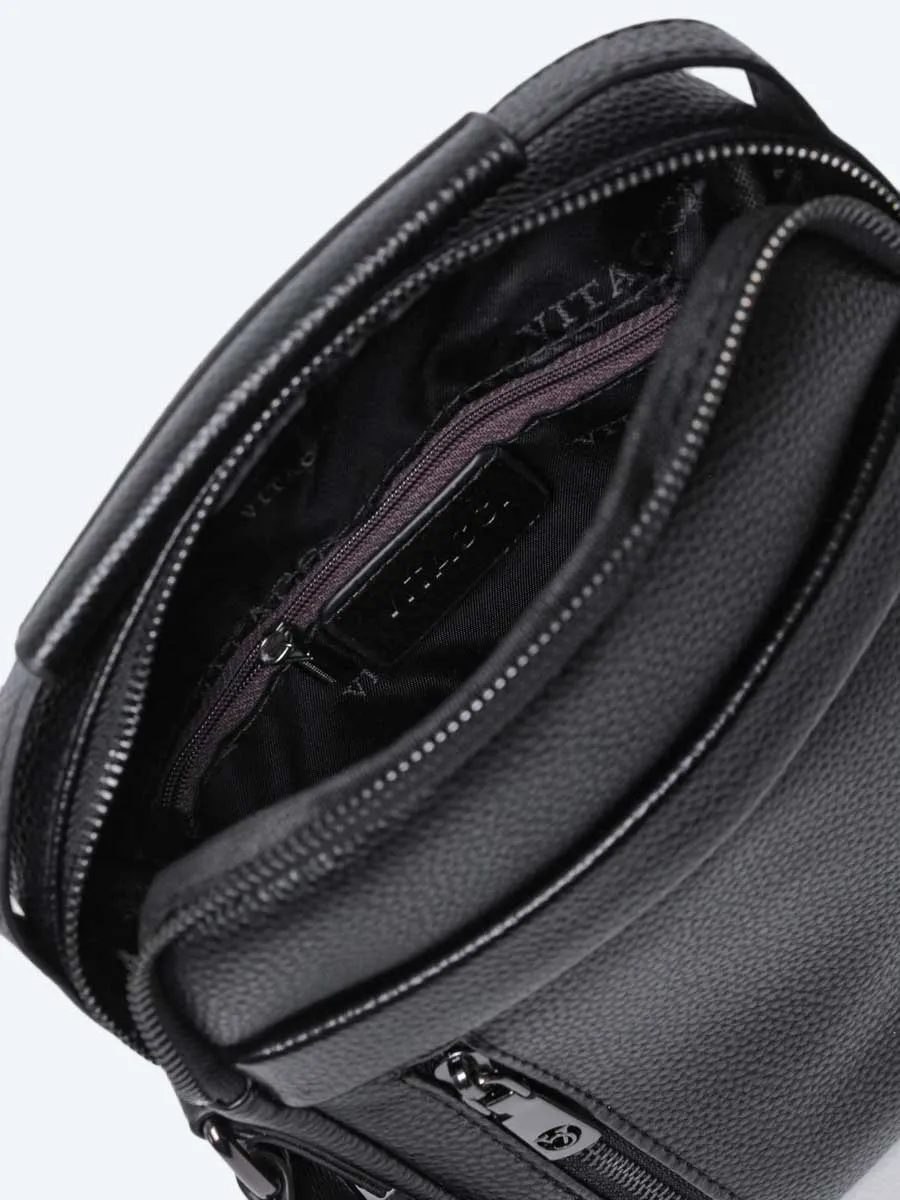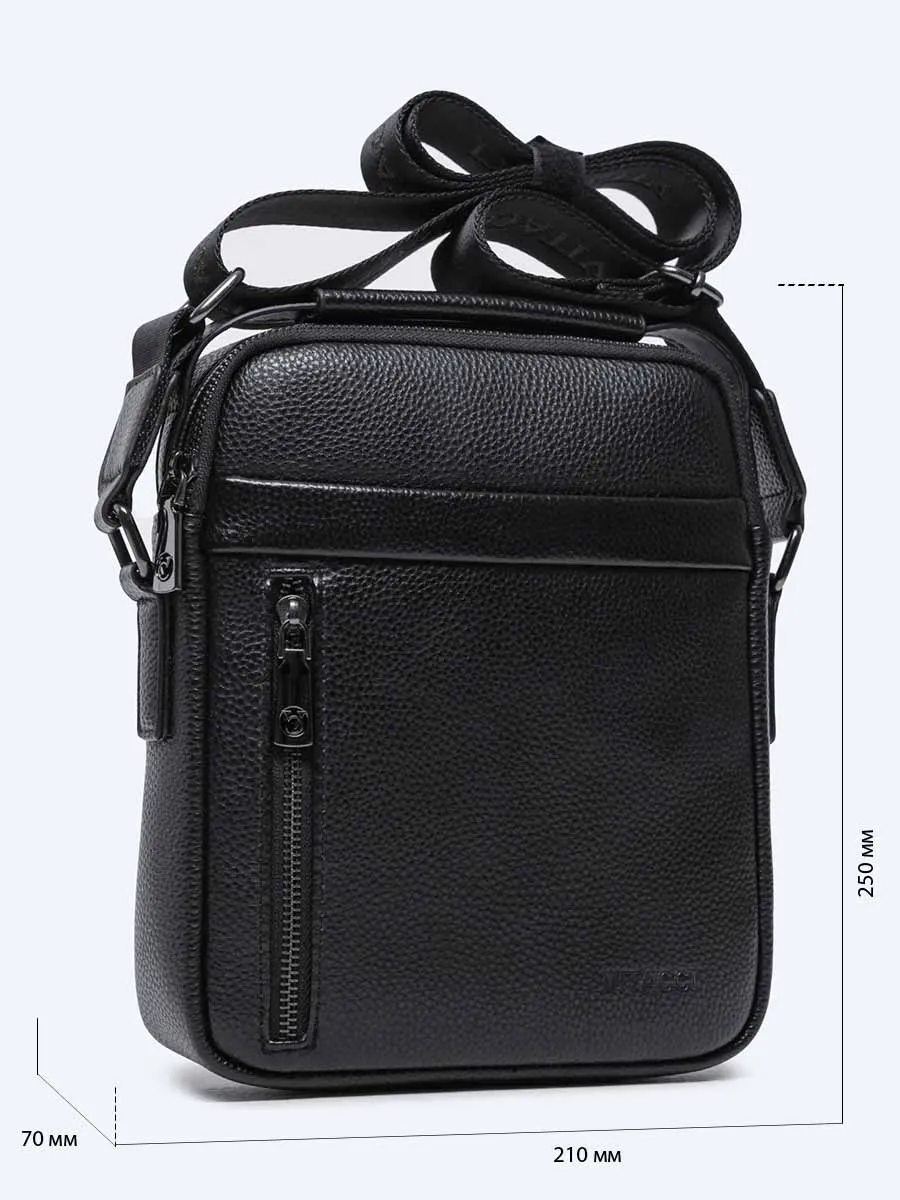 Сумка мужская выполнена из искусственной кожи. Оснащена плечевым ремешком, который регулируется по длине. Сумку можно носить как через плечо, так и на плечо.