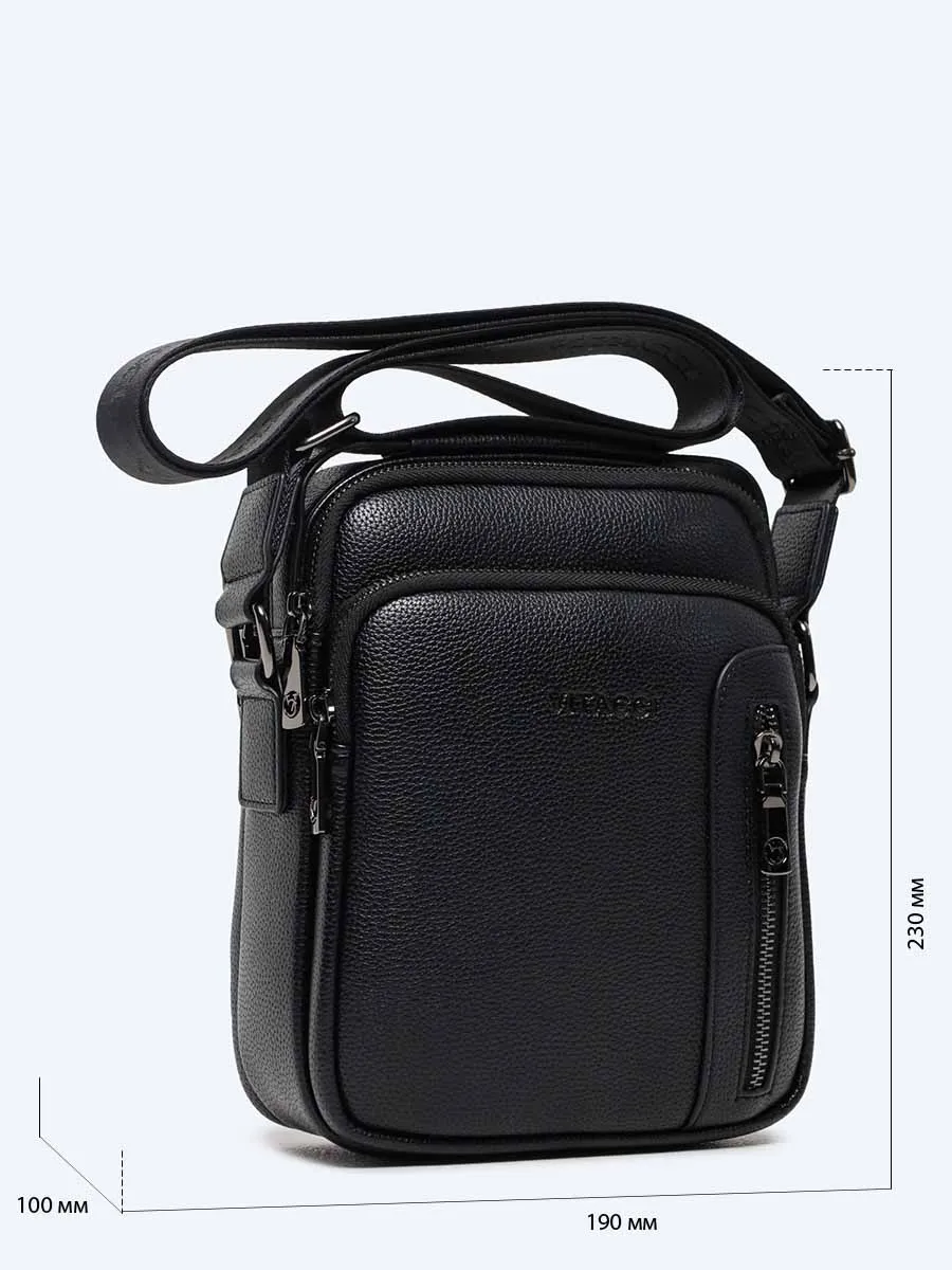 Сумка мужская выполнена из искусственной кожи. Оснащена плечевым ремешком, который регулируется по длине. Сумку можно носить как через плечо, так и на плечо.