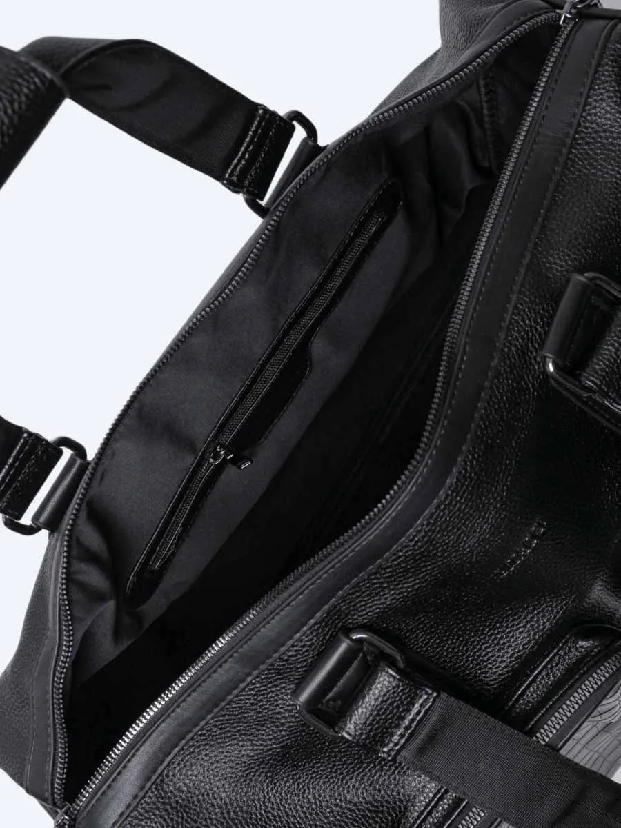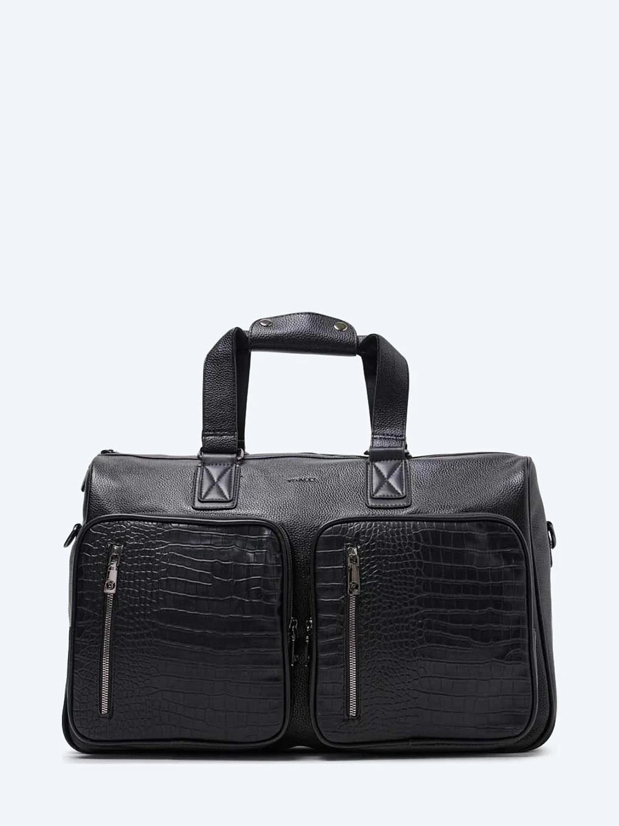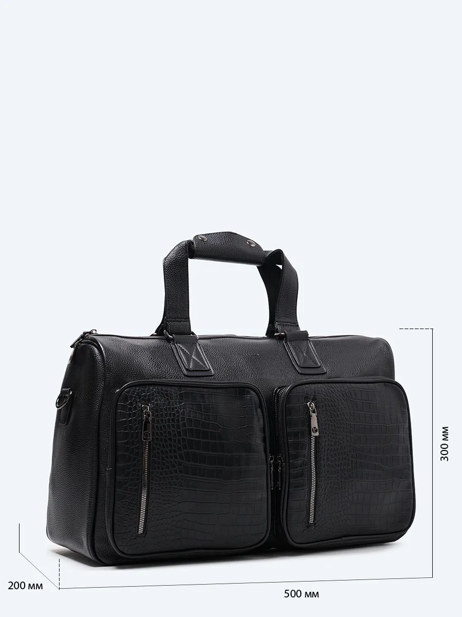 Дорожная сумка выполнена из искусственной кожи. Оснащена множеством функциональных карманов.