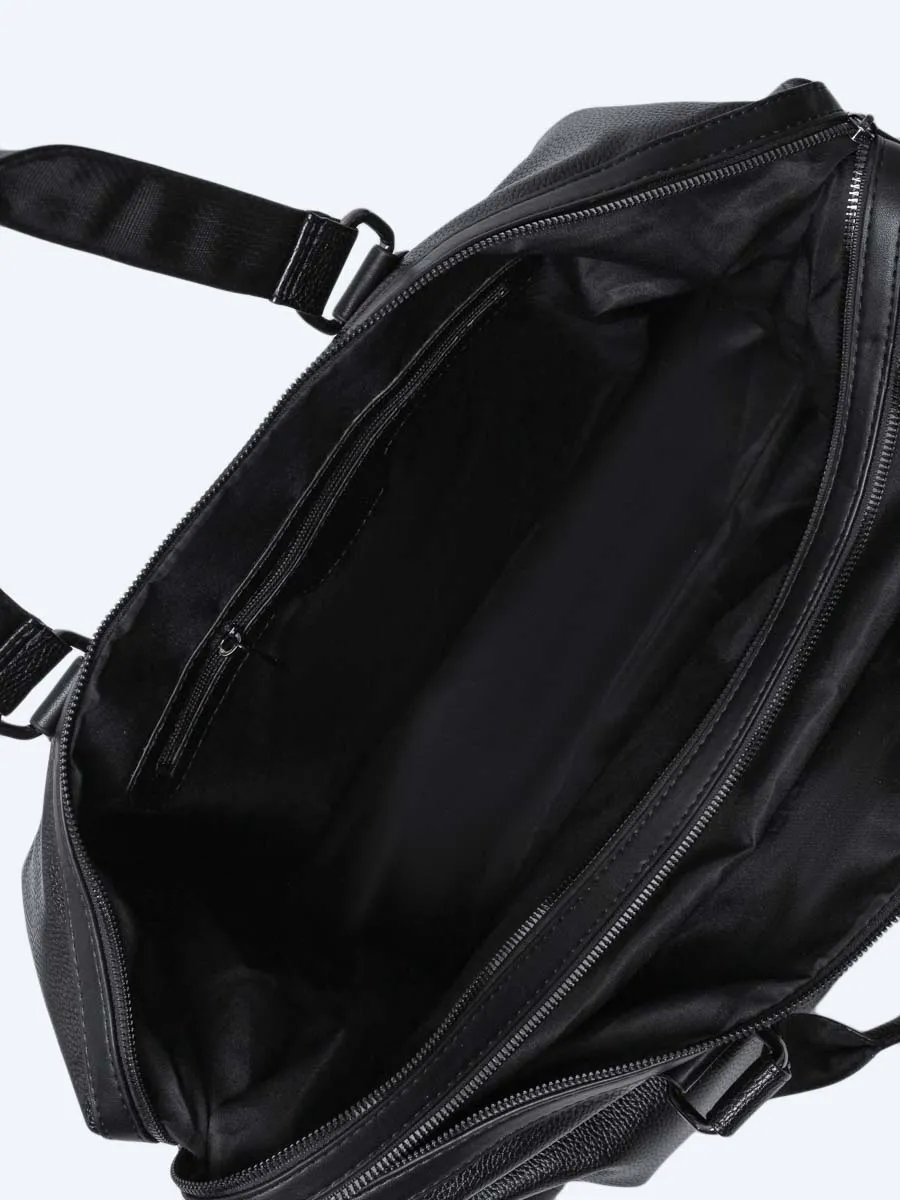 Дорожная сумка выполнена из искусственной кожи. Оснащена множеством функциональных карманов.