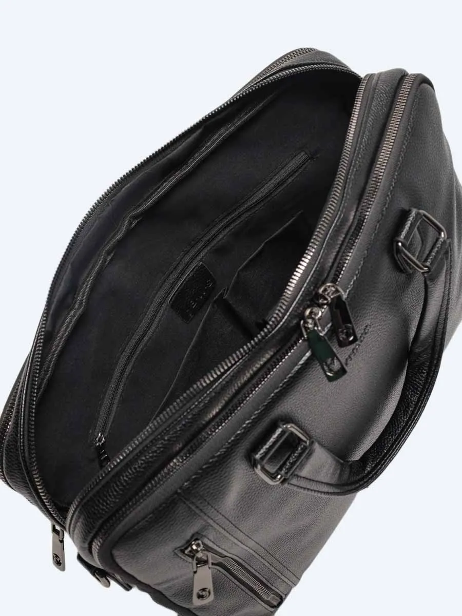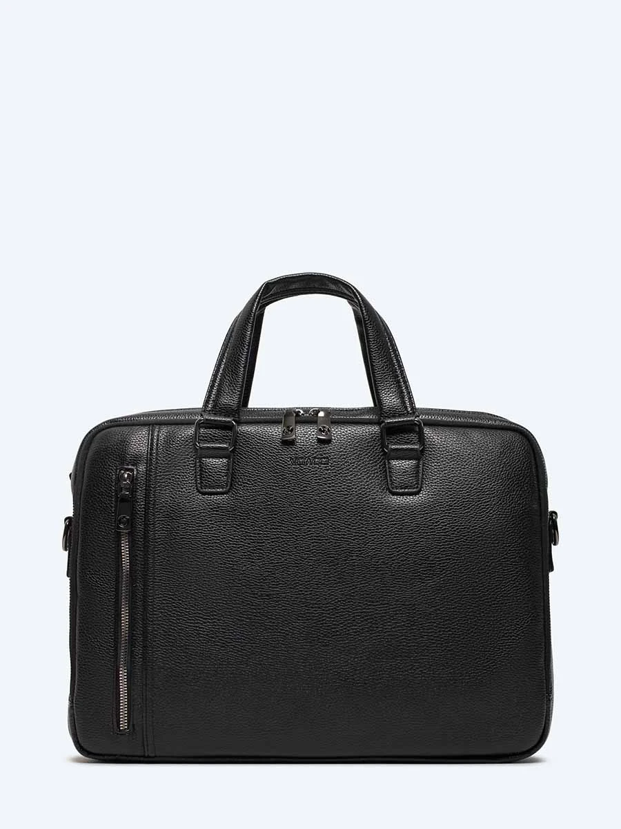 Портфель выполнен из искусственной кожи. Оснащен отсеком для ноутбука.