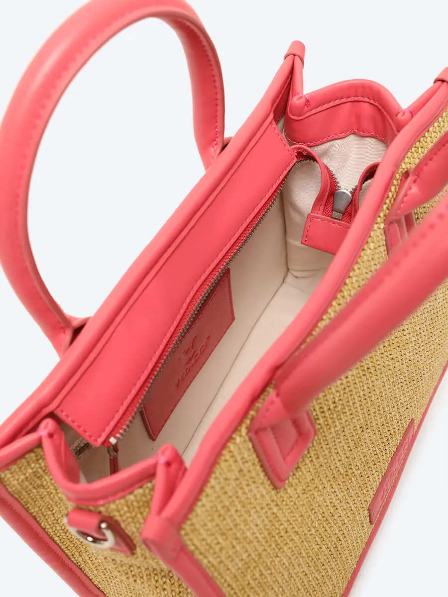 Женская сумка на молнии. Внутри два открытых кармашка для быстрого доступа к необходимому и карман на молнии для хранения документов.
