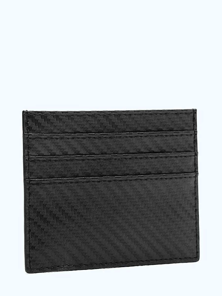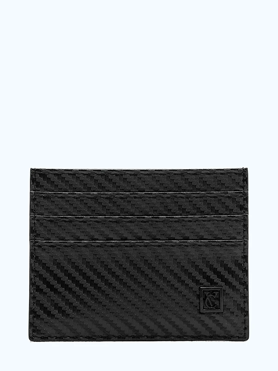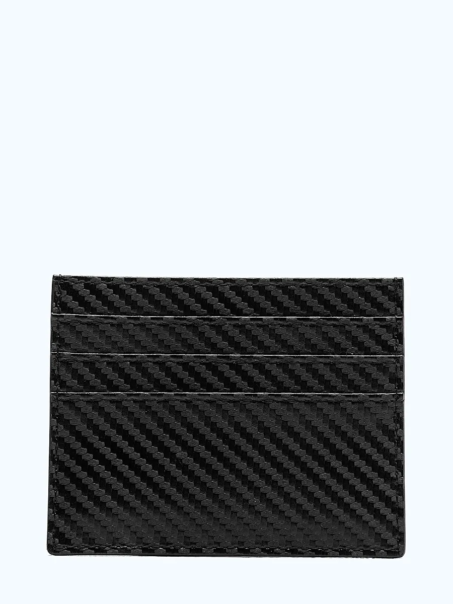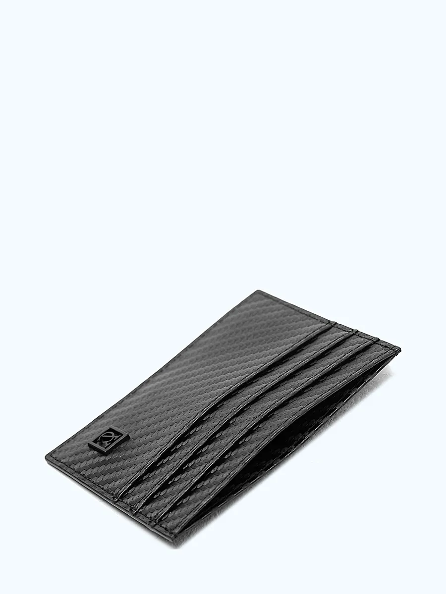 Картхолдер выполнен из искусственной кожи с фактурой под карбон. Оснащен семью отсеками для карточек.