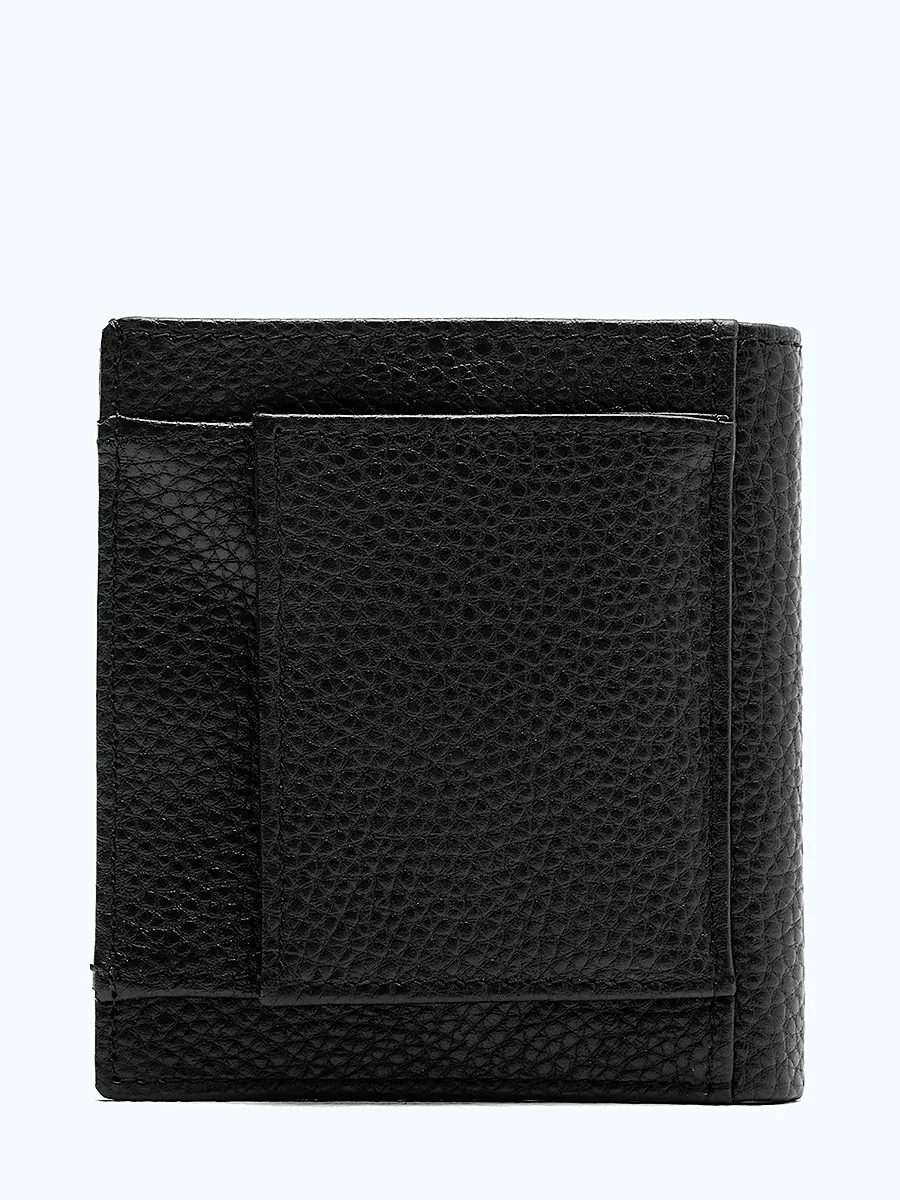 Бумажник выполнен из натуральной кожи. Оснащен двумя отсеками для купюр, восьмью отсеками для карточек и отсеком для монет на кнопке.