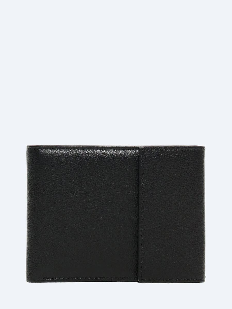 Кошелек закрывается на липучку. Выполнен из натуральной кожи с зернистой фактурой. Оснащен отделениями для купюр, карточек и водительских прав.