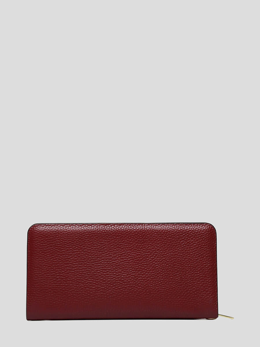 Кошелек женский закрывается на молнию. Внутри три больших и два потайных отдела для купюр, одно отделение для монет на молнии и 8 кармашков для карт. Дополнительно - ремешок на запястье.