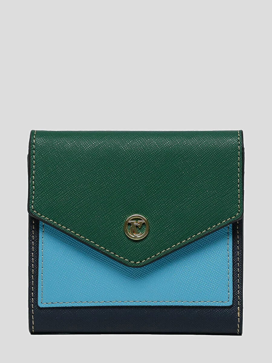 Кошелек женский закрывается на кнопку. Внутри один отдел для купюр, два небольших потайных кармана для карточек, 6 кармашков для карточек и один отдел для карточек под клапаном. С внешней стороны на задней стенке кошелька - карман для мелочи на молнии.
