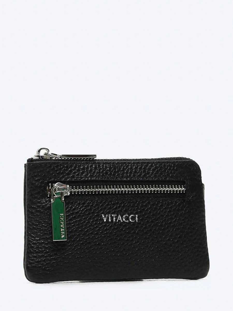 Ключница, закрывается на молнию. С внешней стороны есть дополнительный кармашек на молнии для мелочи или маленького ключа.