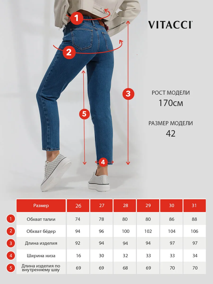 • Длина брюк от пояса 26 (42) - 93,5 см, 27 (42-44) - 94 см, 28 (44) - 94 см, 29 (44-46) - 94 см, 30 (46) - 95,5 см, 31 (46-48) - 96 см.