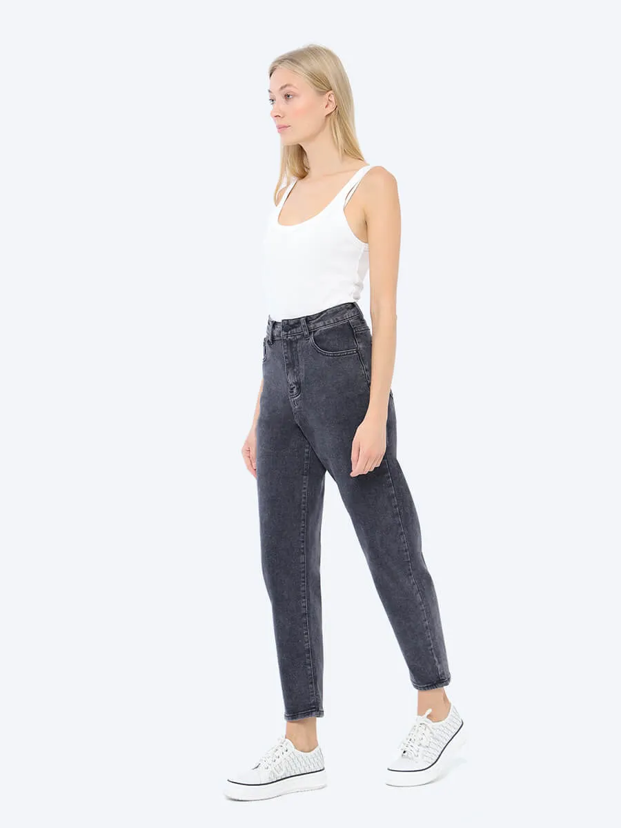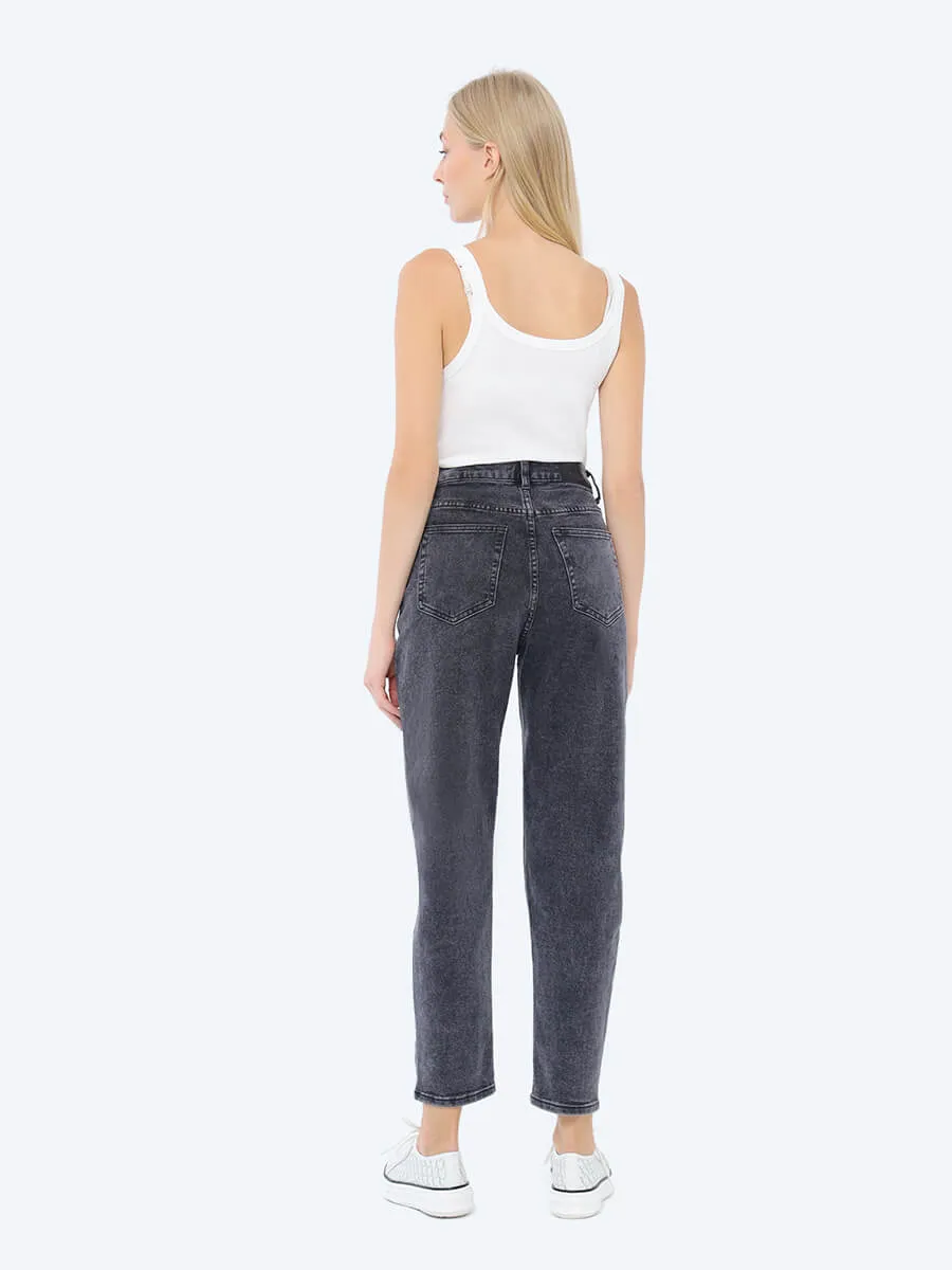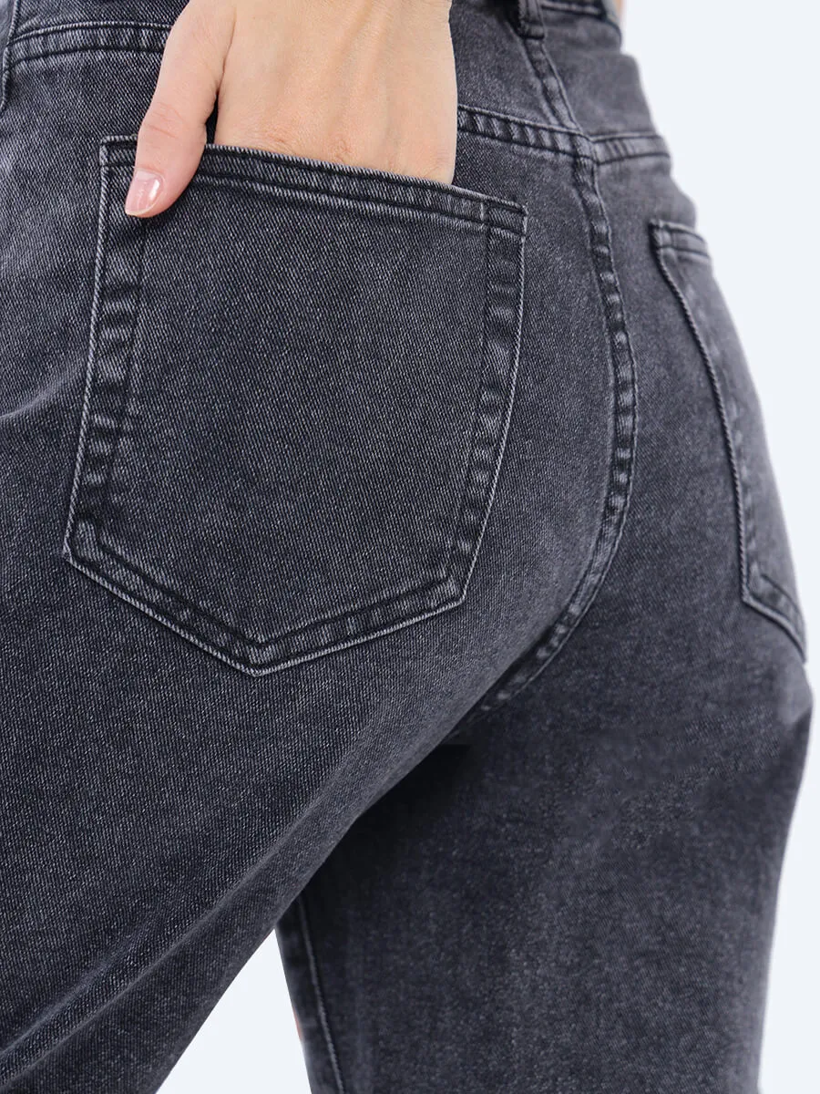 Укороченные джинсы с высокой посадкой. В составе хлопок и полиэстер с небольшим включением спандекса, который обеспечивает эластичность ткани. Застежка на молнию и пуговицу. Имеются действующие карманы.