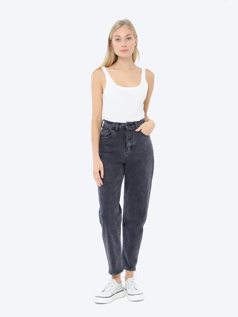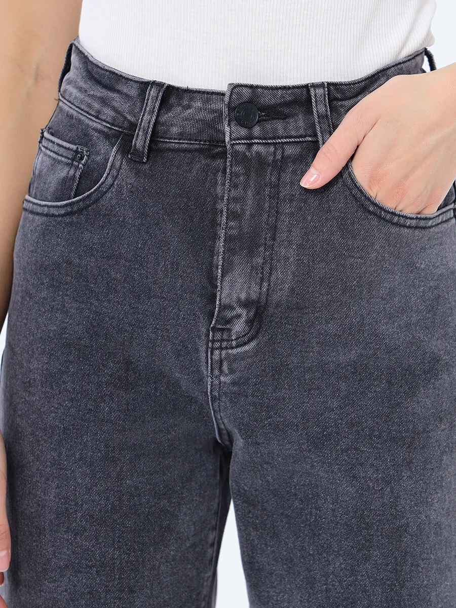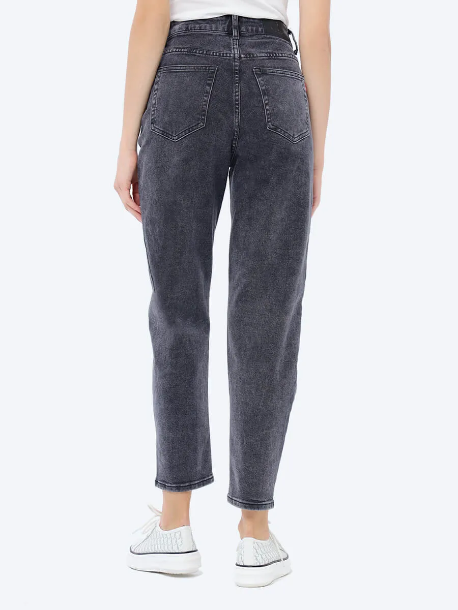 Укороченные джинсы с высокой посадкой. В составе хлопок и полиэстер с небольшим включением спандекса, который обеспечивает эластичность ткани. Застежка на молнию и пуговицу. Имеются действующие карманы.