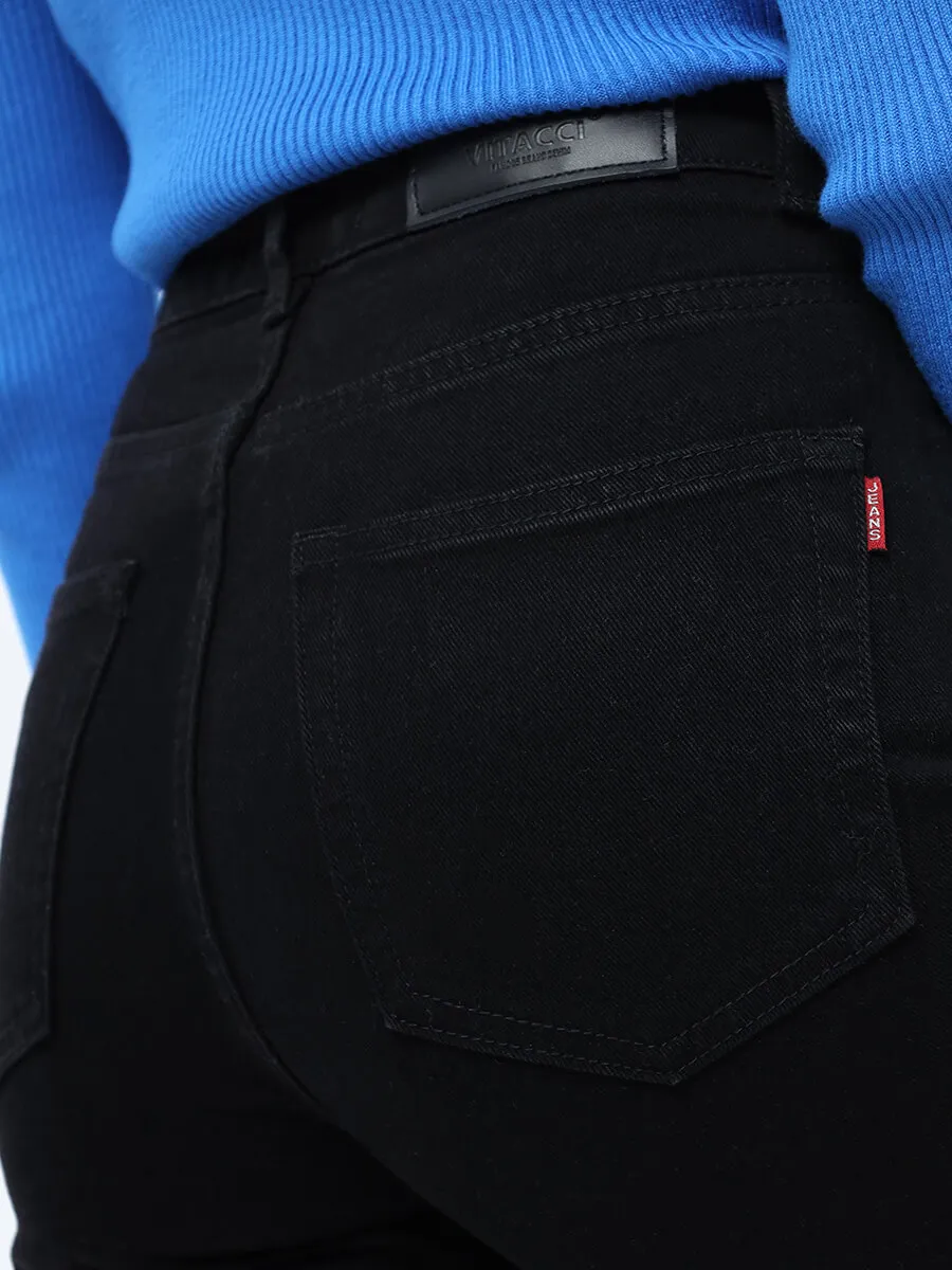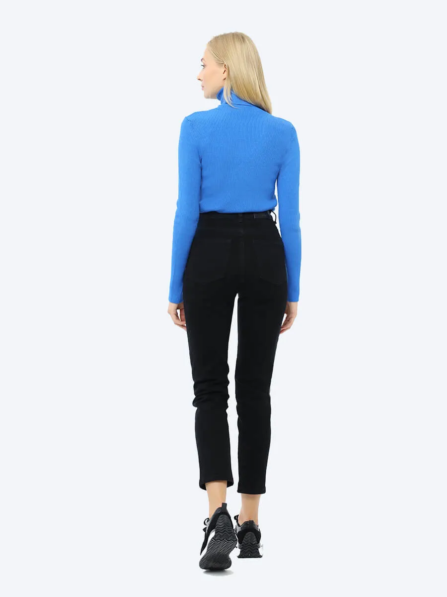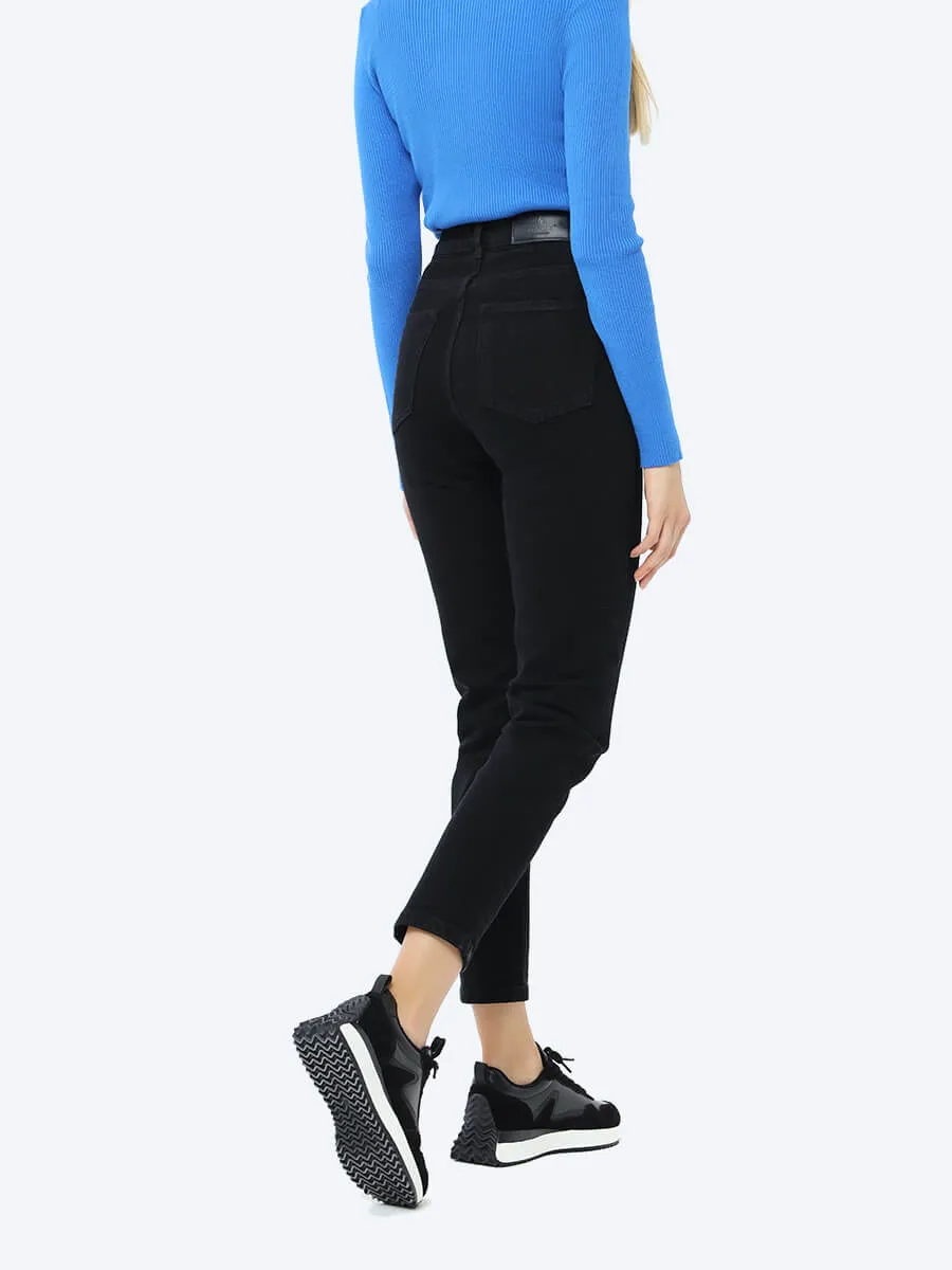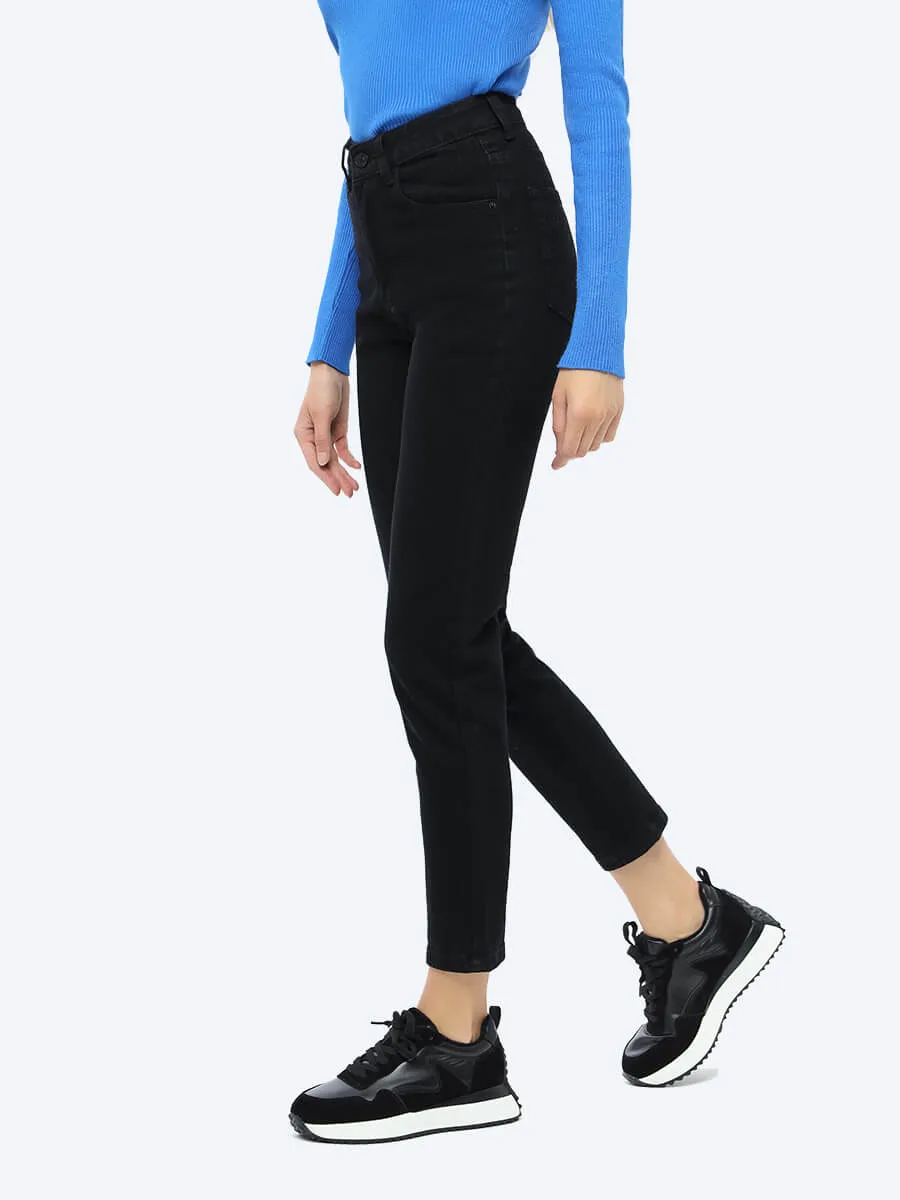 Укороченные джинсы с высокой посадкой. В составе хлопок и полиэстер с небольшим включением спандекса, который обеспечивает эластичность ткани. Застежка на молнию и пуговицу. Имеются действующие карманы.