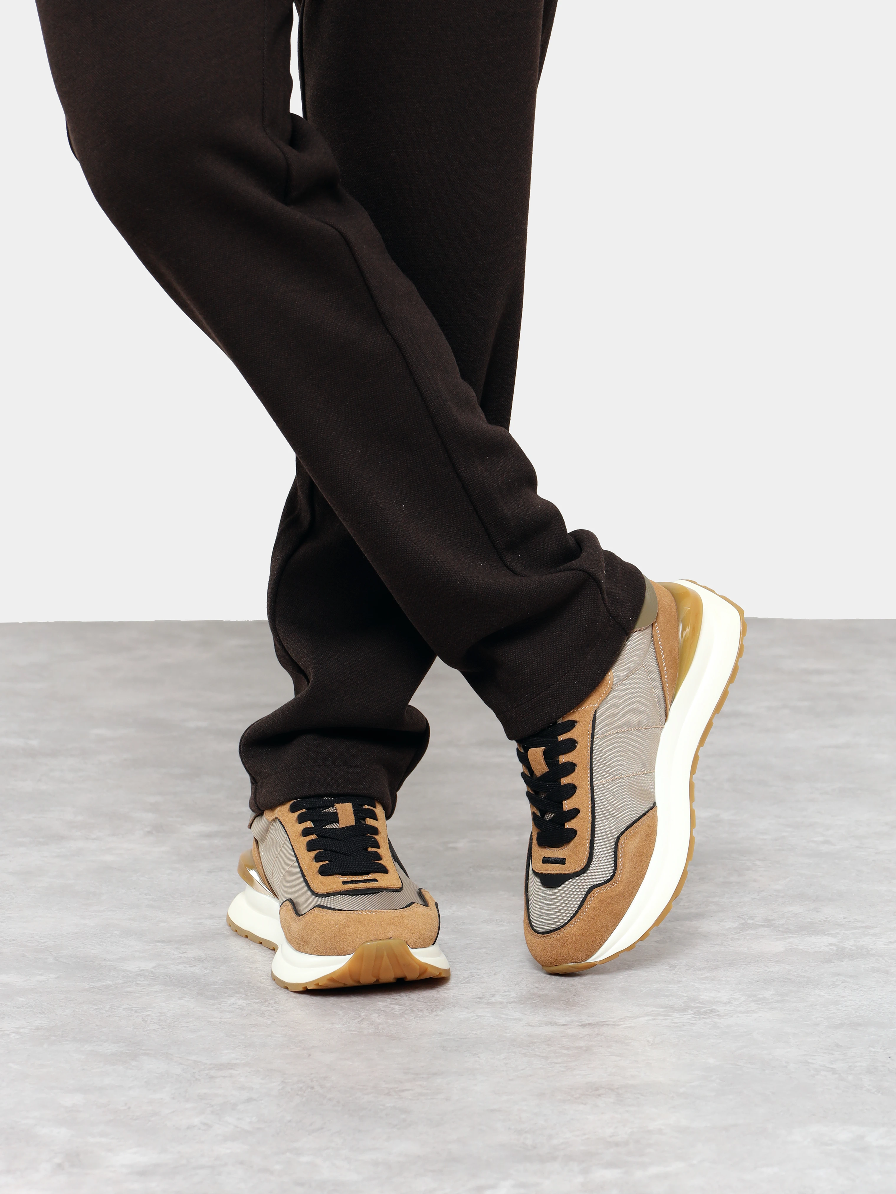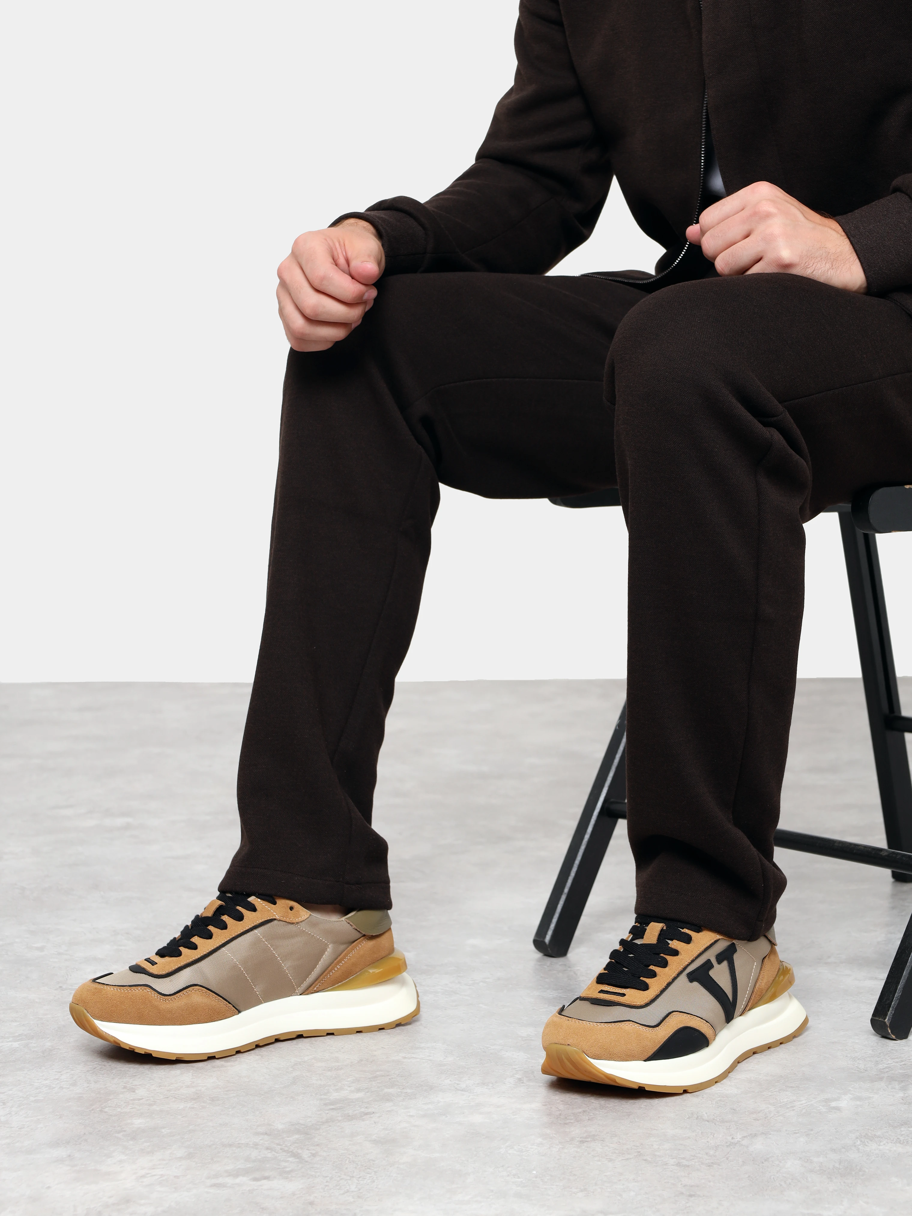 Кроссовки мужские демисезонные, цвет коричневый, натуральный спилок/текстиль/натуральная кожа