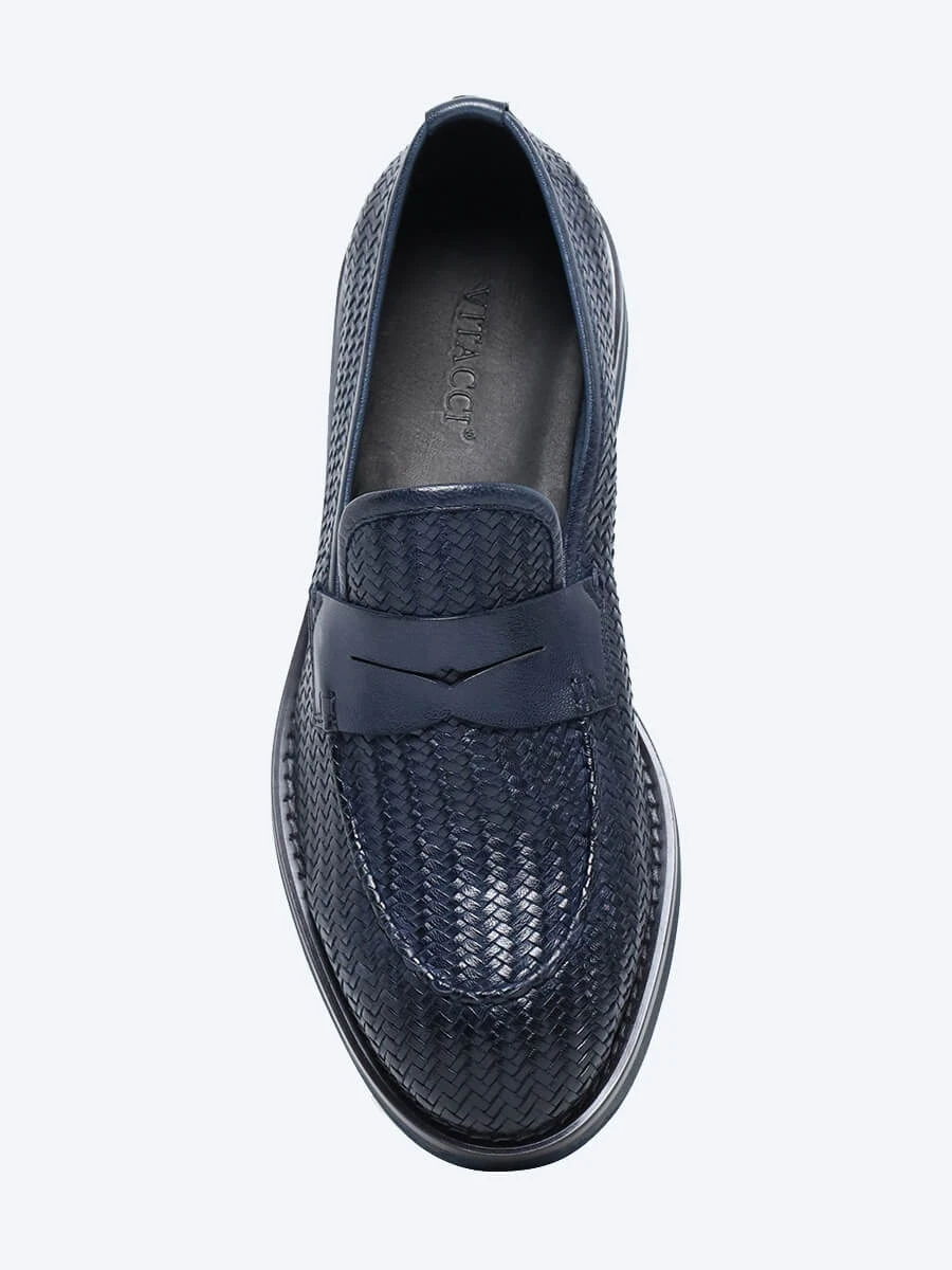 Лоферы мужские всесезонные, цвет синий, натуральная кожа
