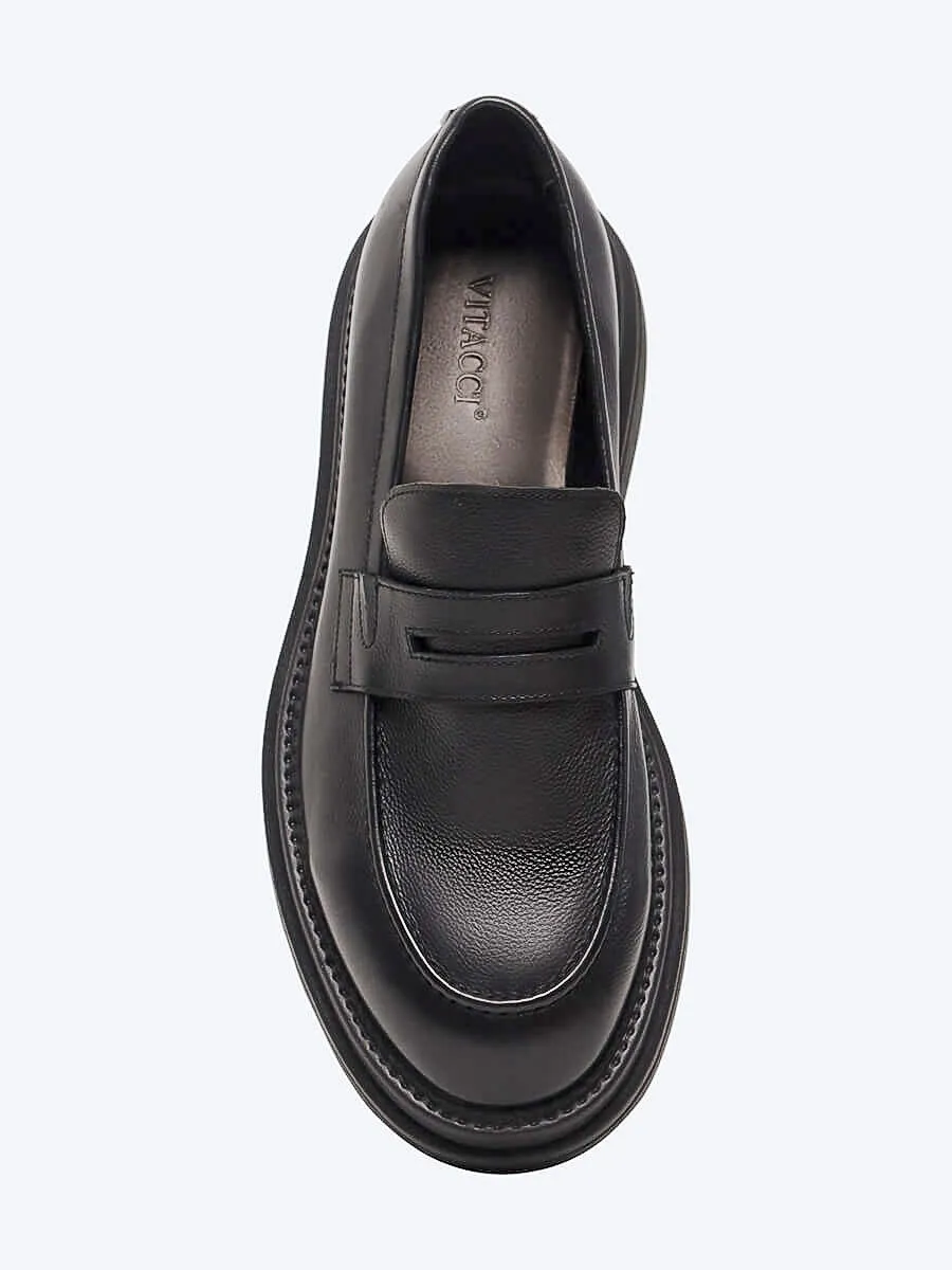 Лоферы мужские всесезонные, цвет черный, натуральная кожа