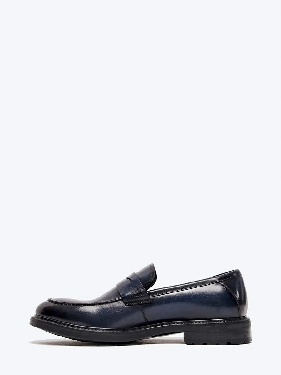 Лоферы мужские всесезонные, цвет синий, натуральная кожа