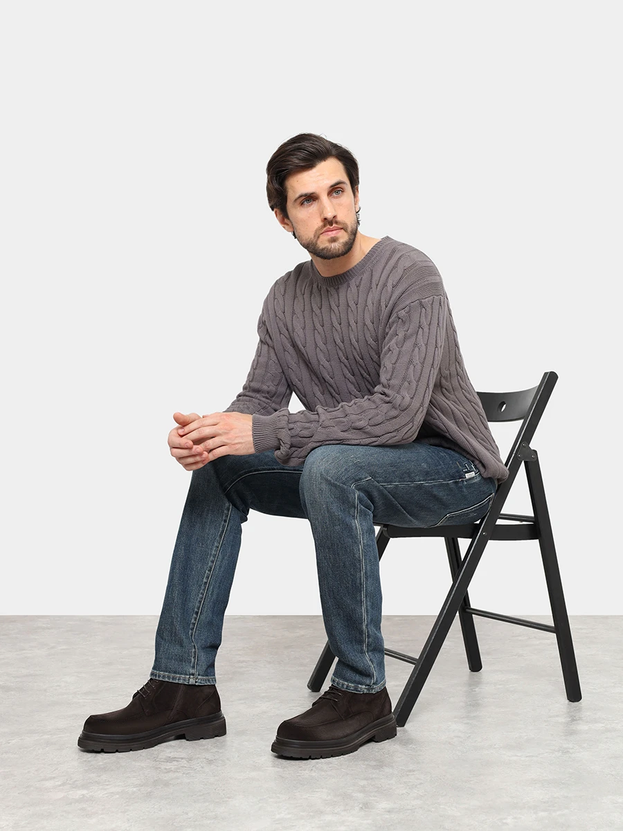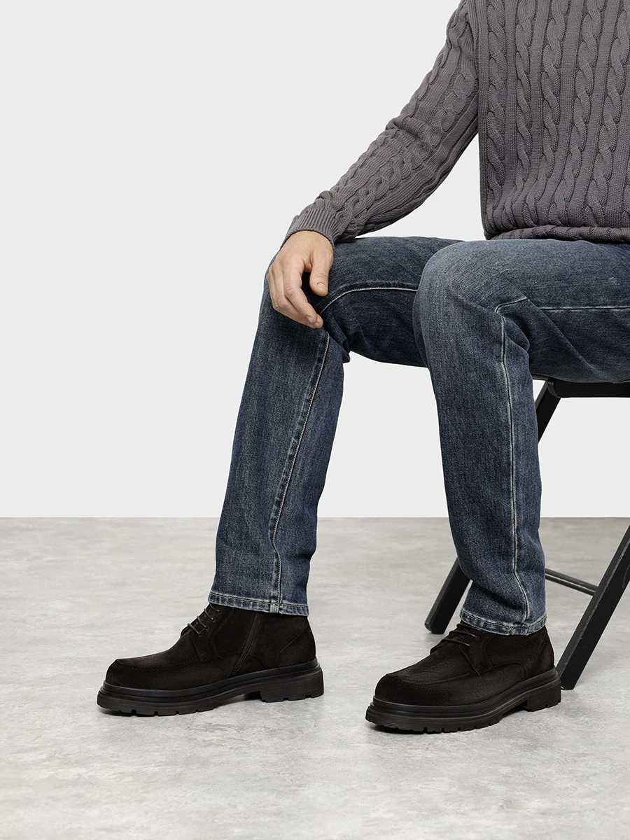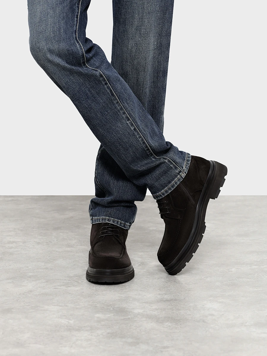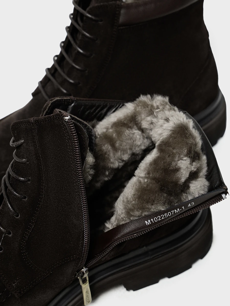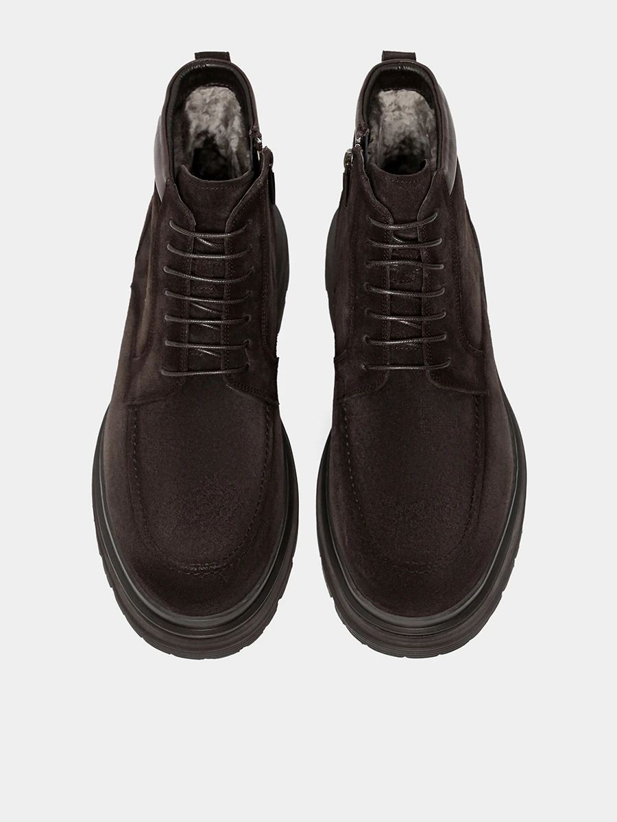 Ботинки мужские зимние, цвет коричневый, натуральный спилок
