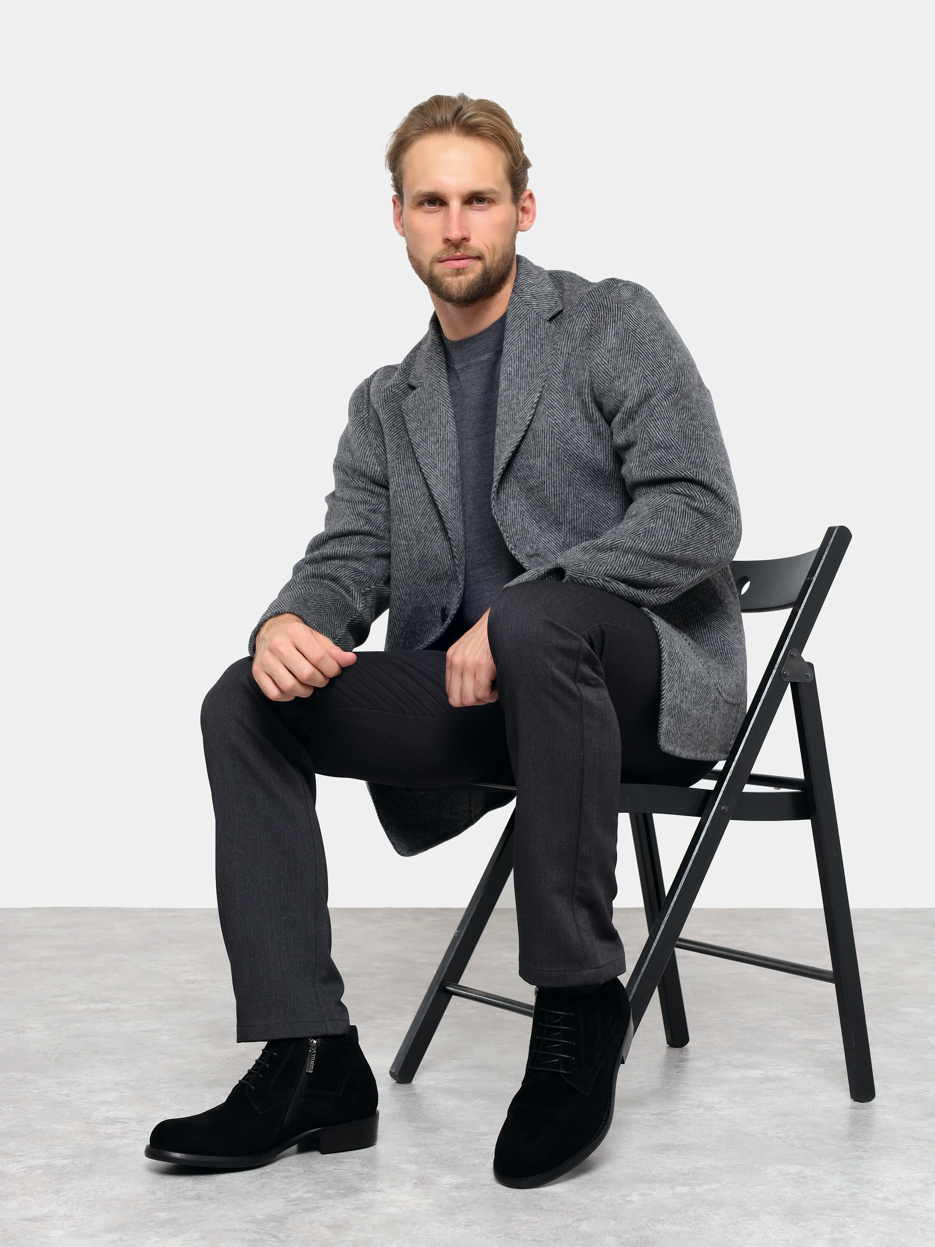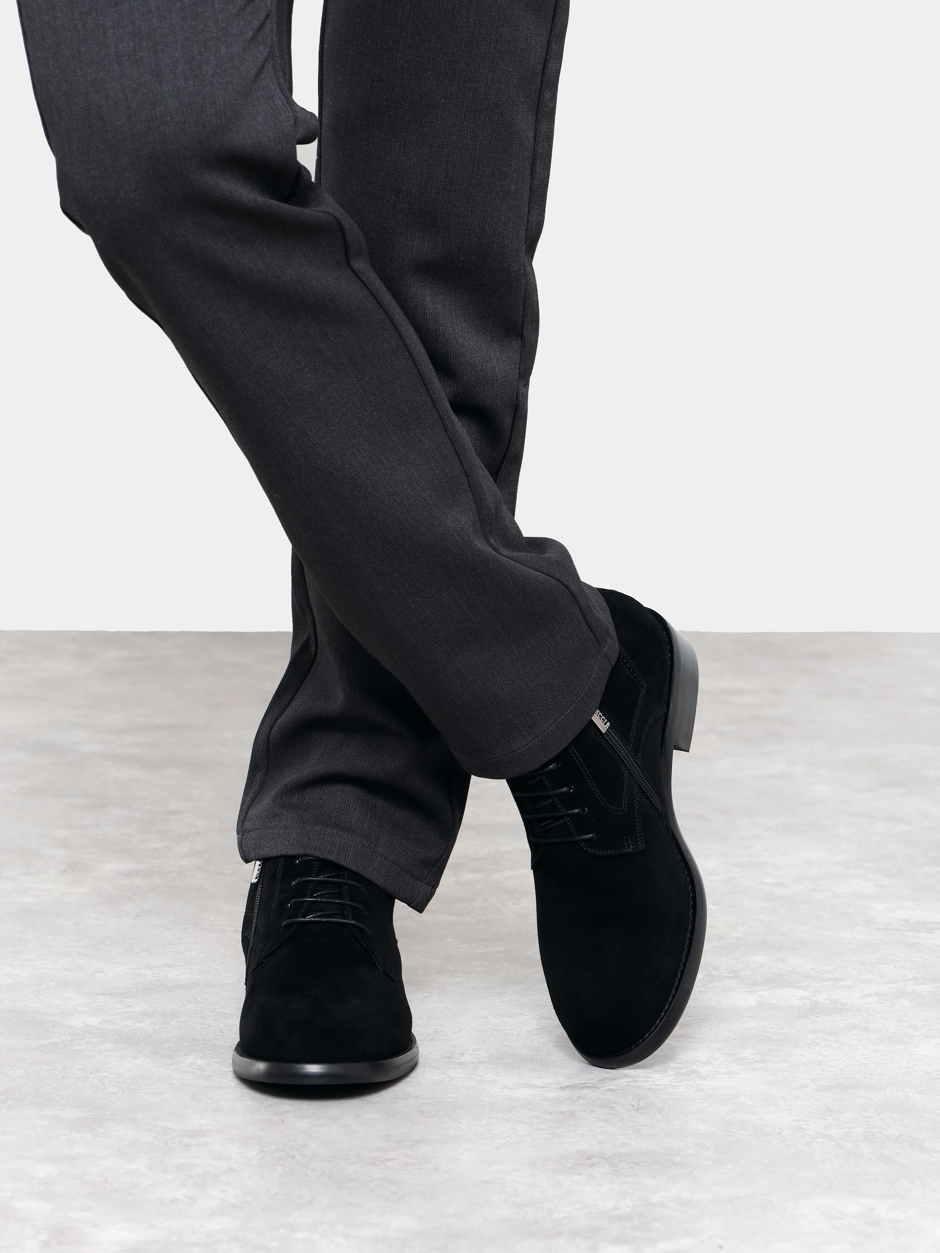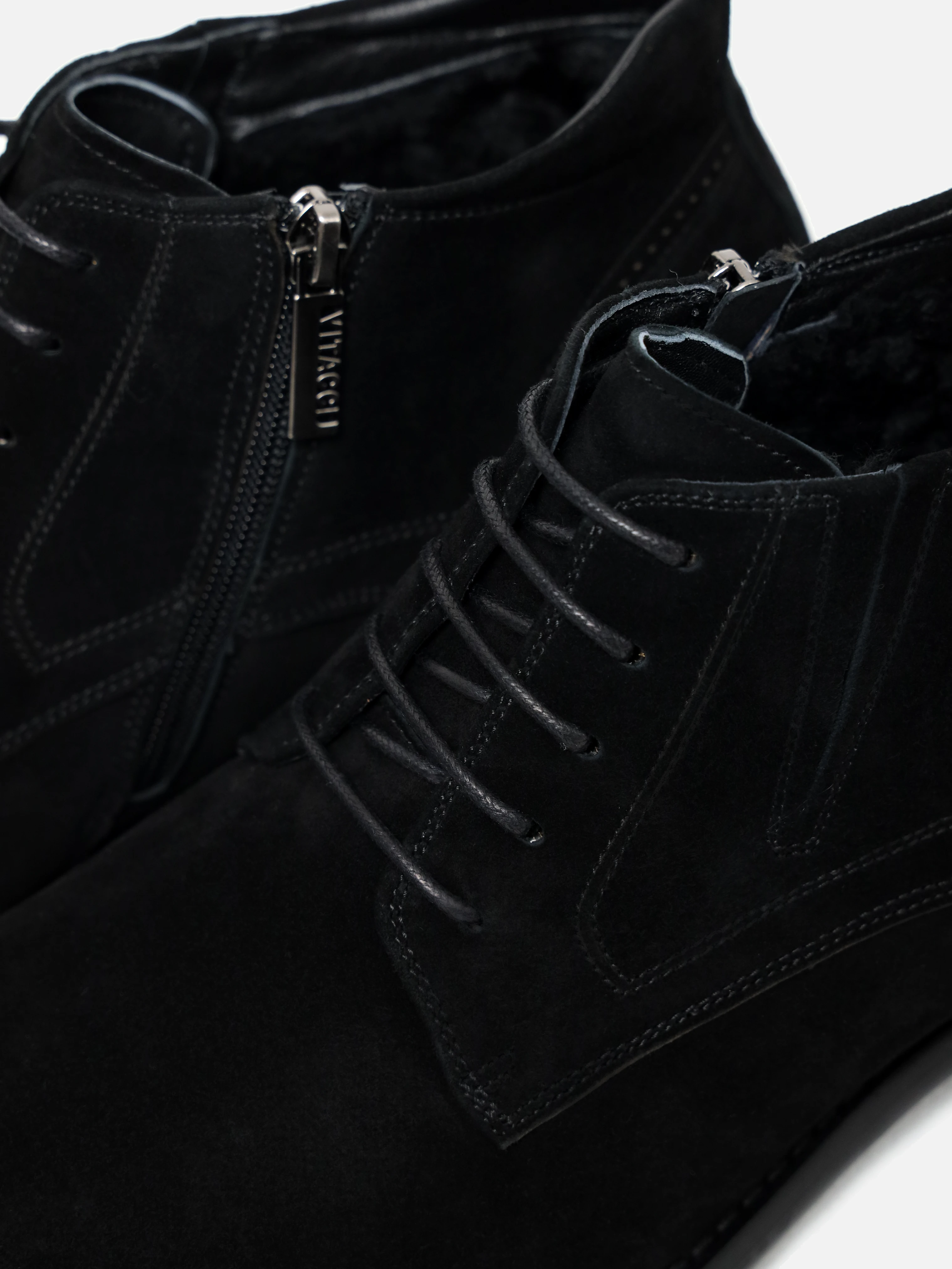 Ботинки мужские зимние, цвет черный, натуральный велюр