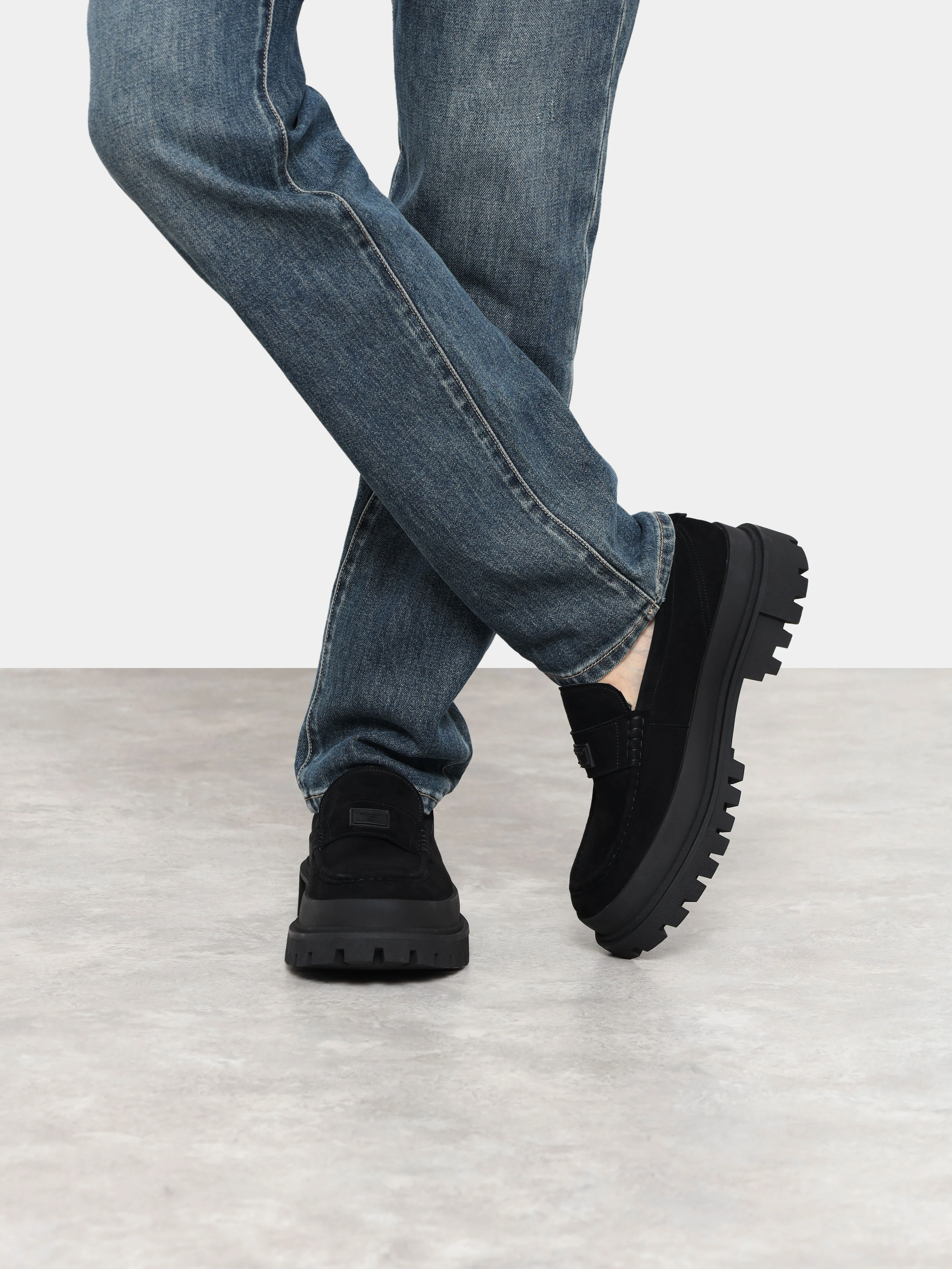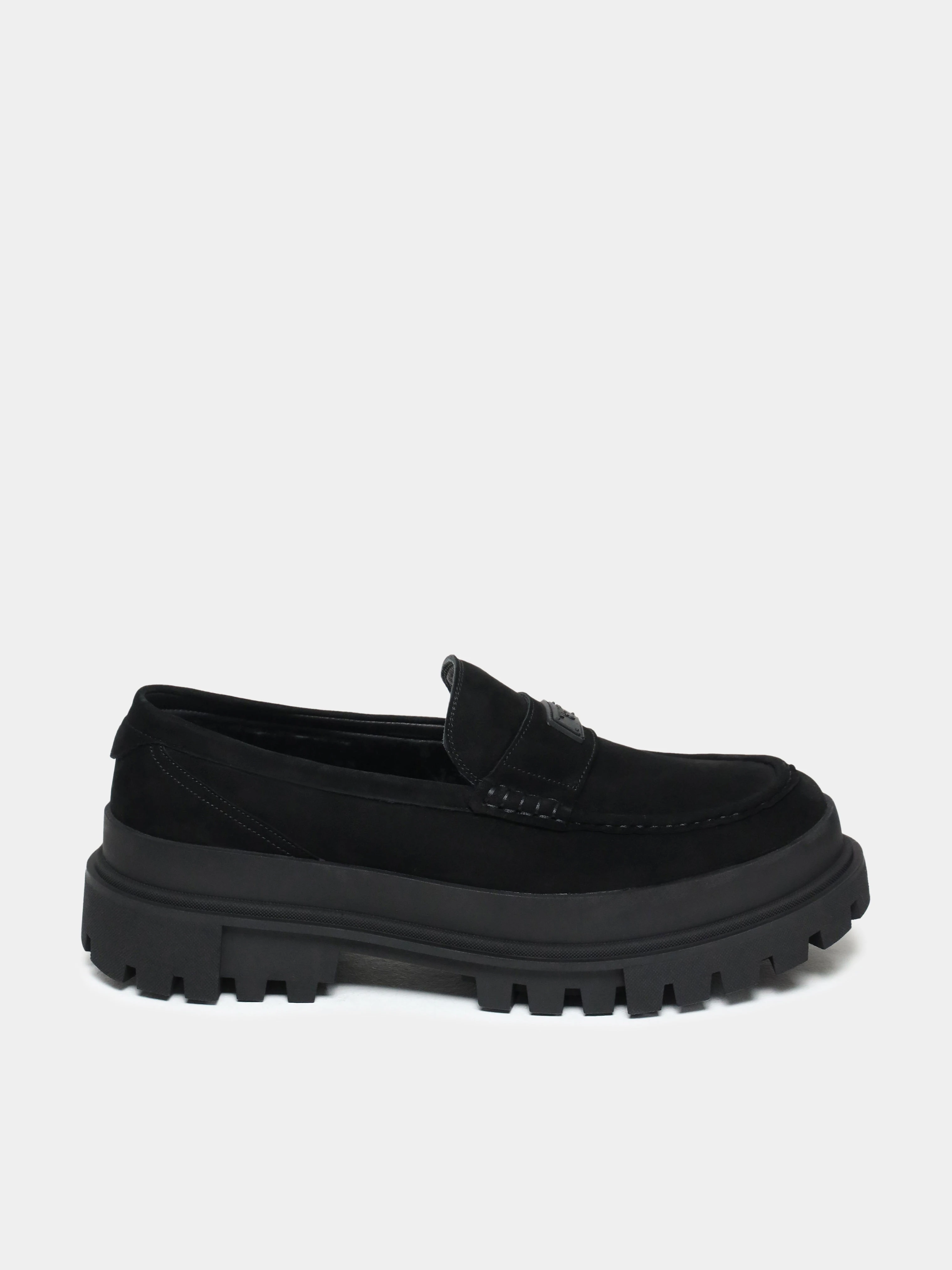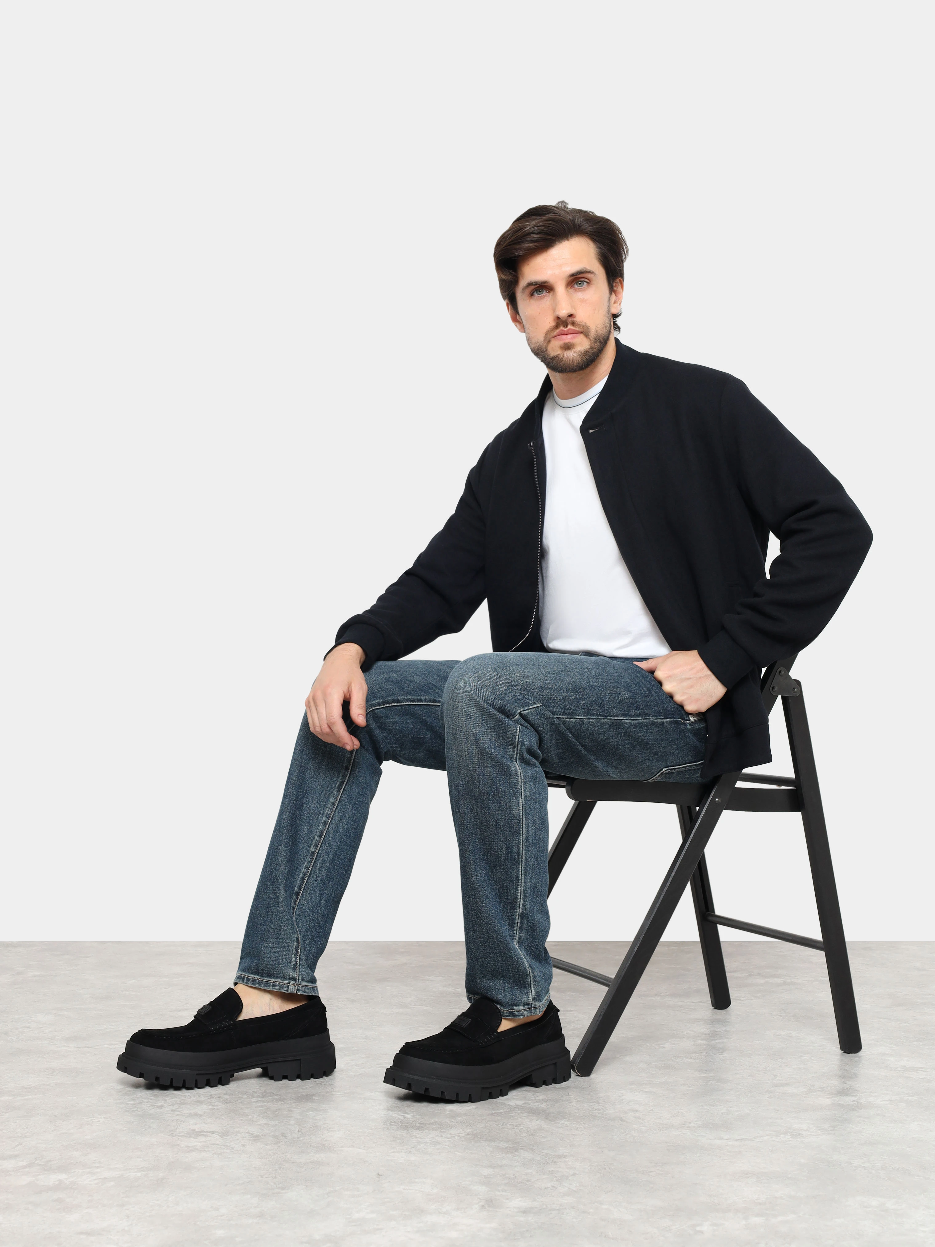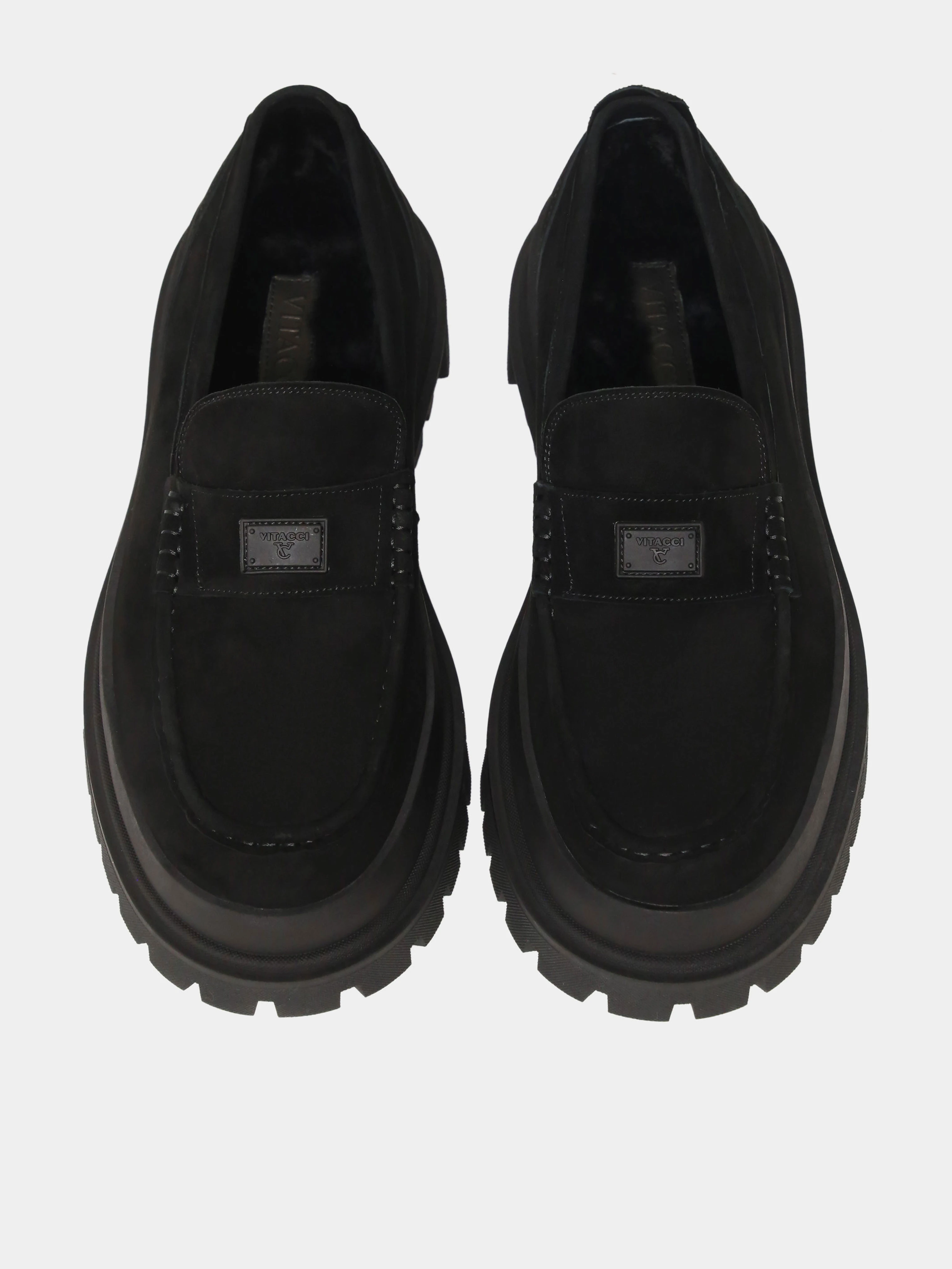 Лоферы мужские зимние, цвет черный, натуральный велюр