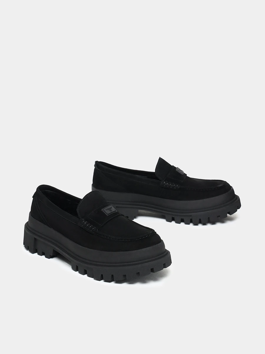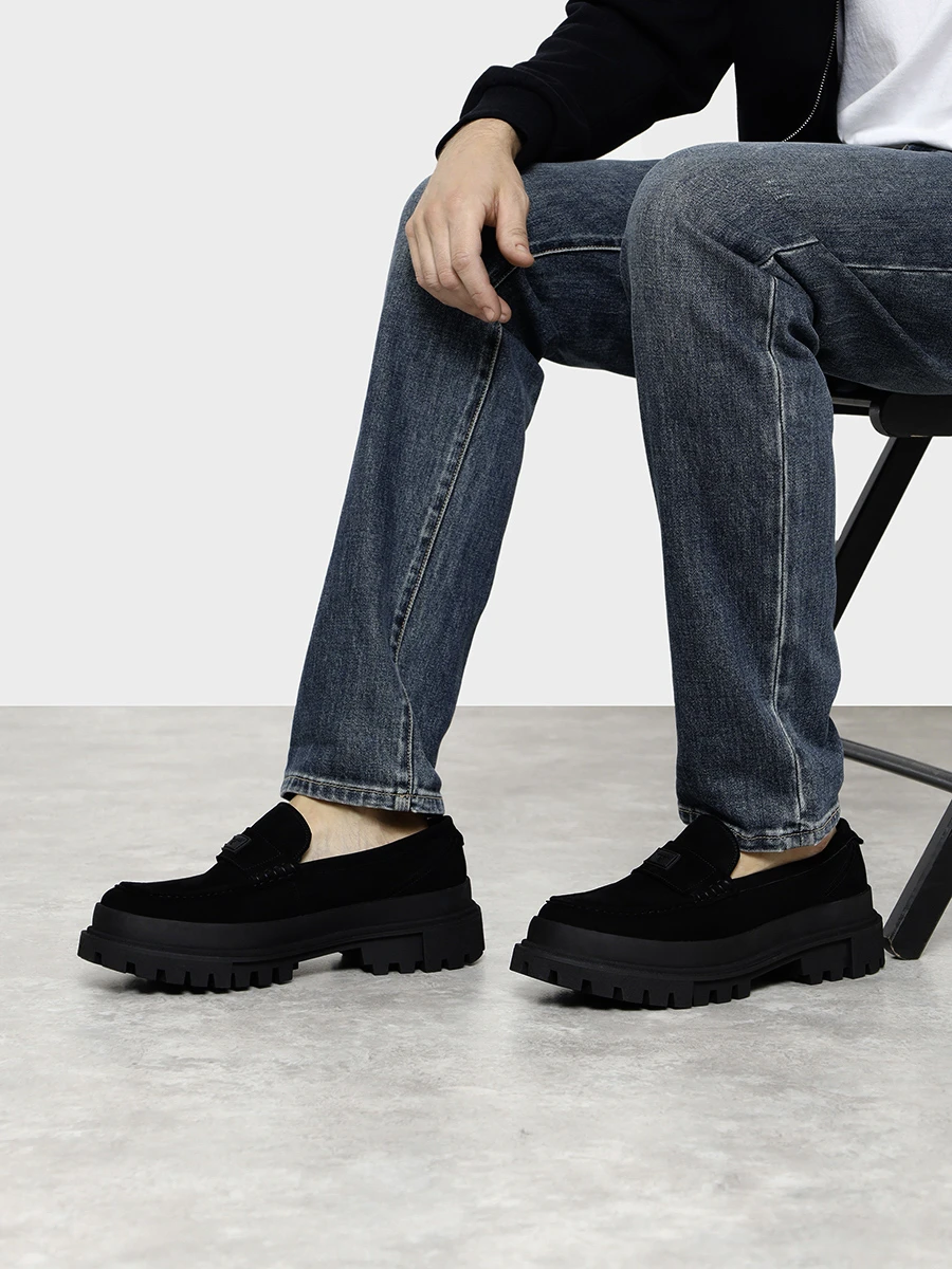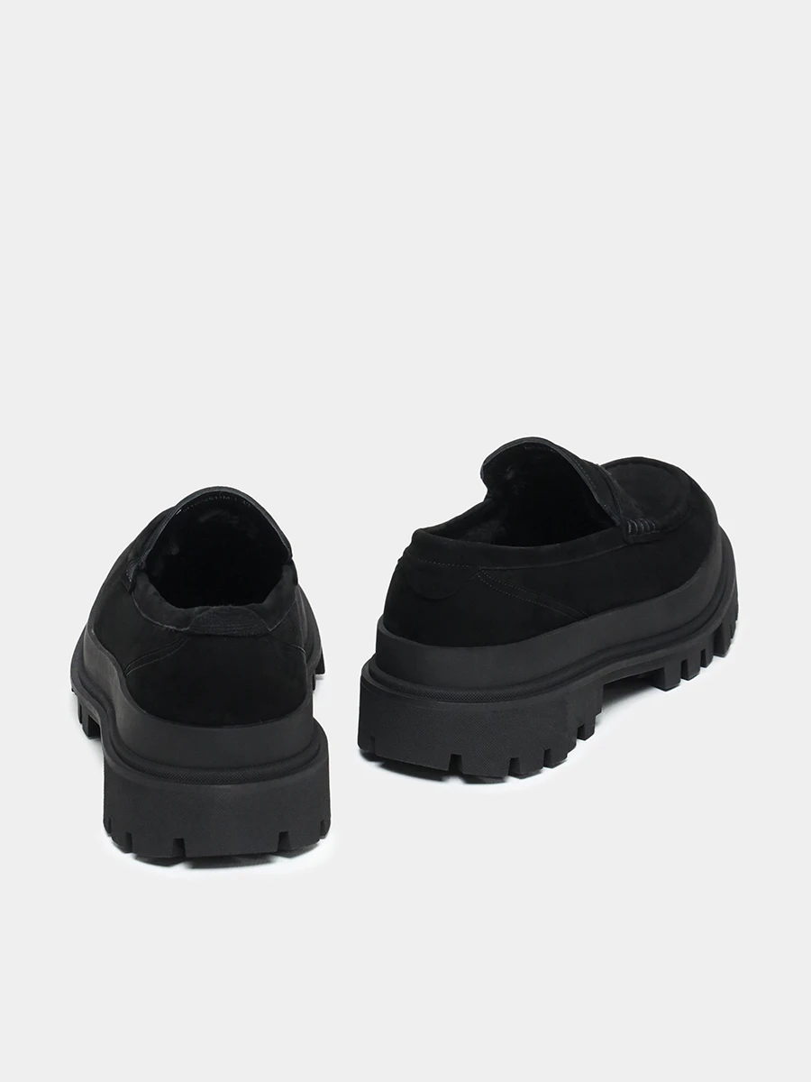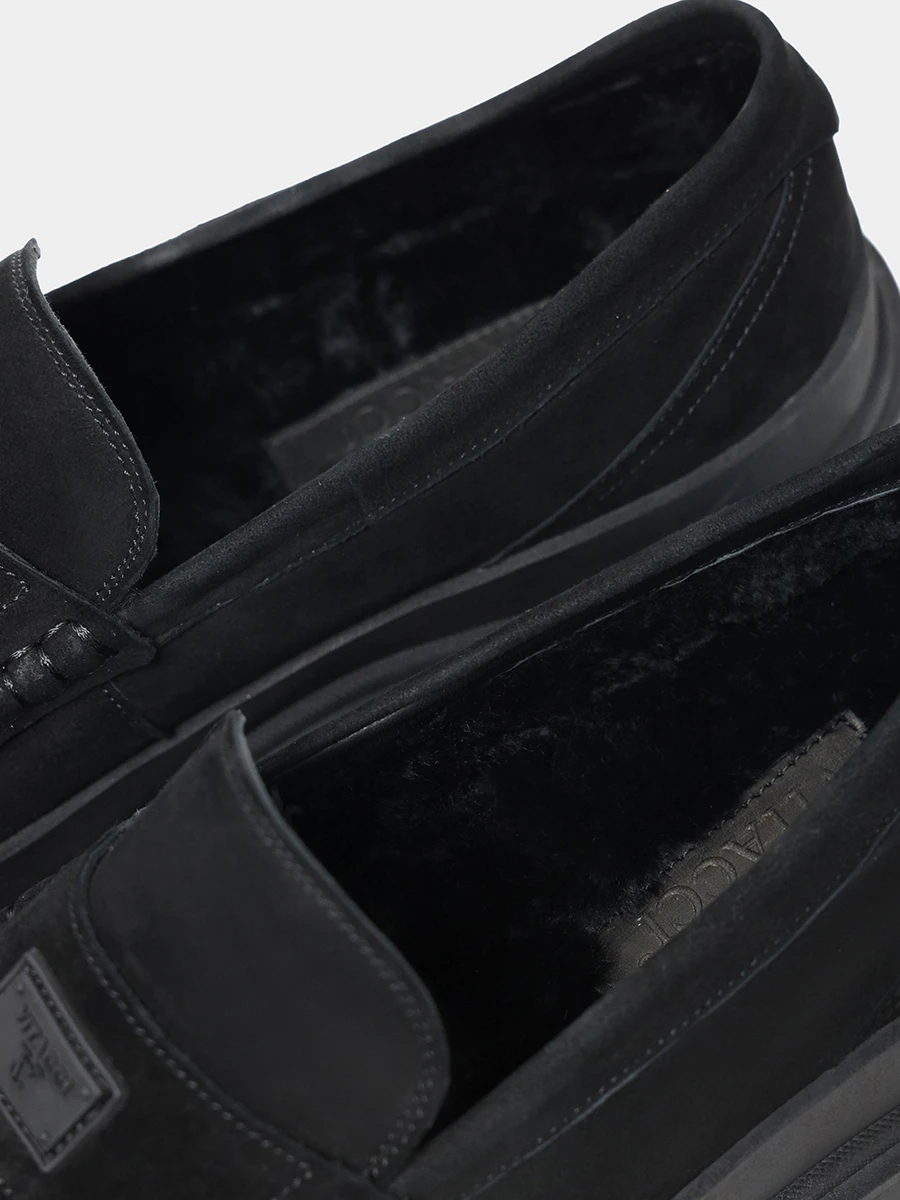 Лоферы мужские зимние, цвет черный, натуральный велюр