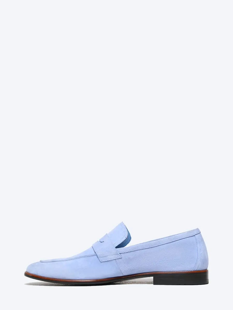 Лоферы мужские всесезонные, цвет голубой, натуральный велюр