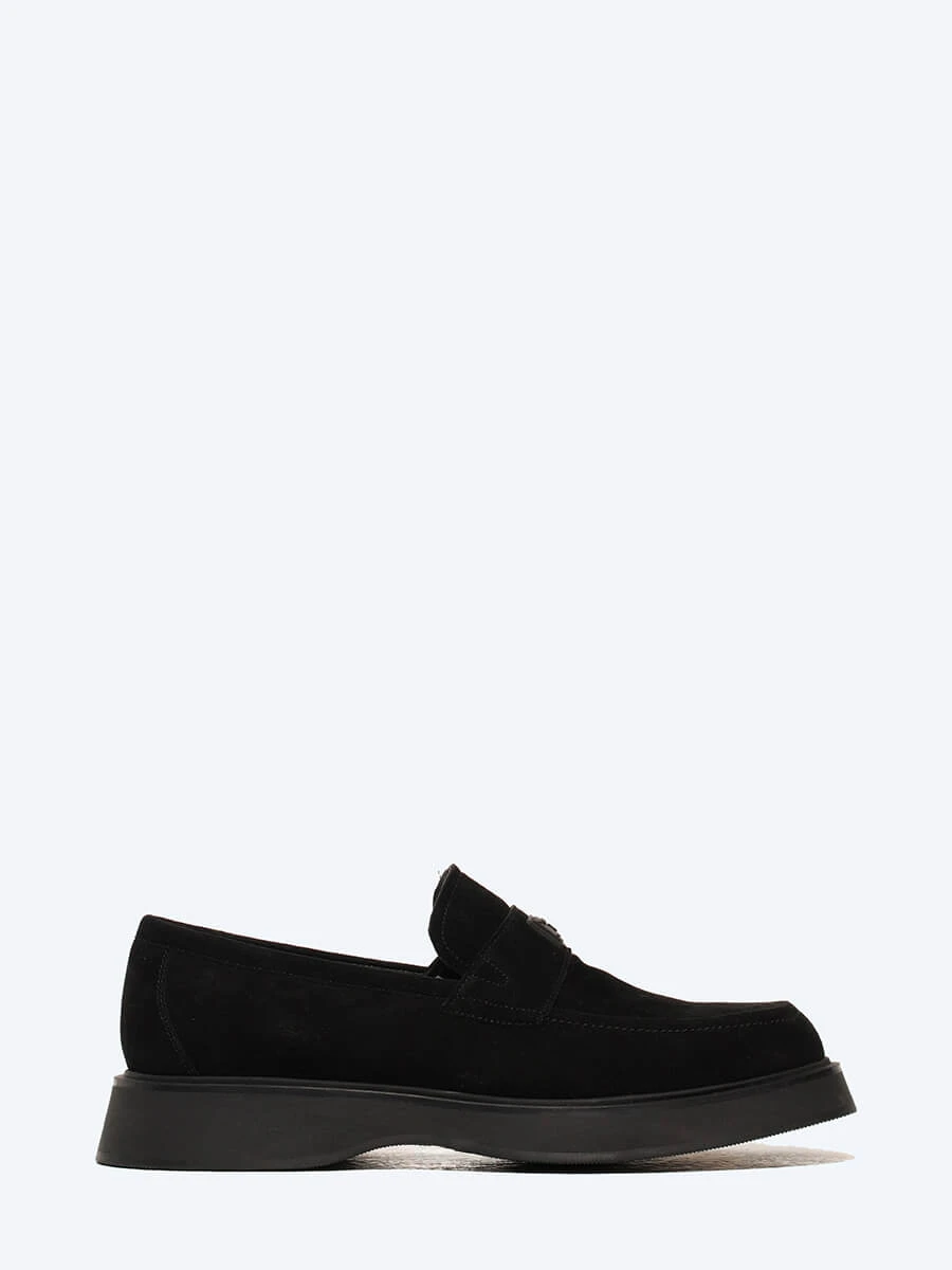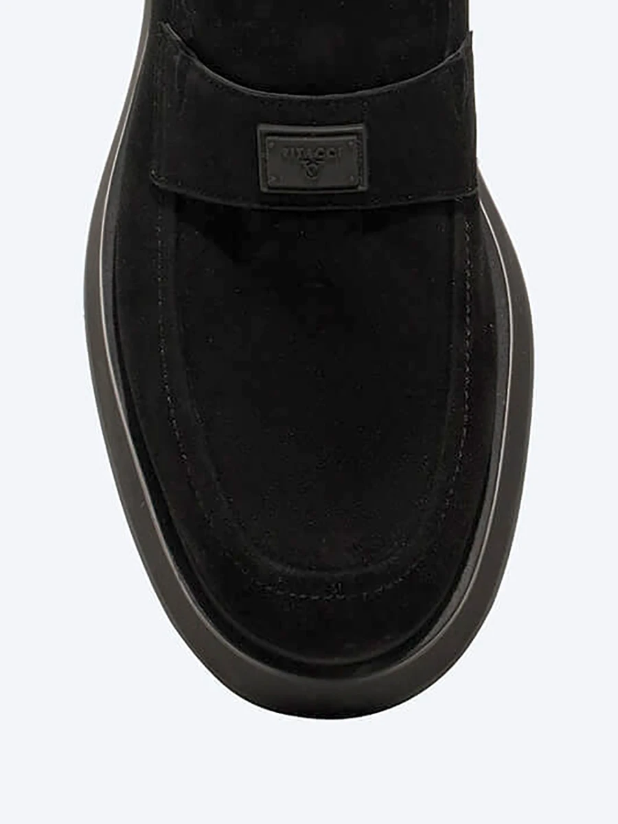 Лоферы мужские зимние, цвет черный, натуральный велюр