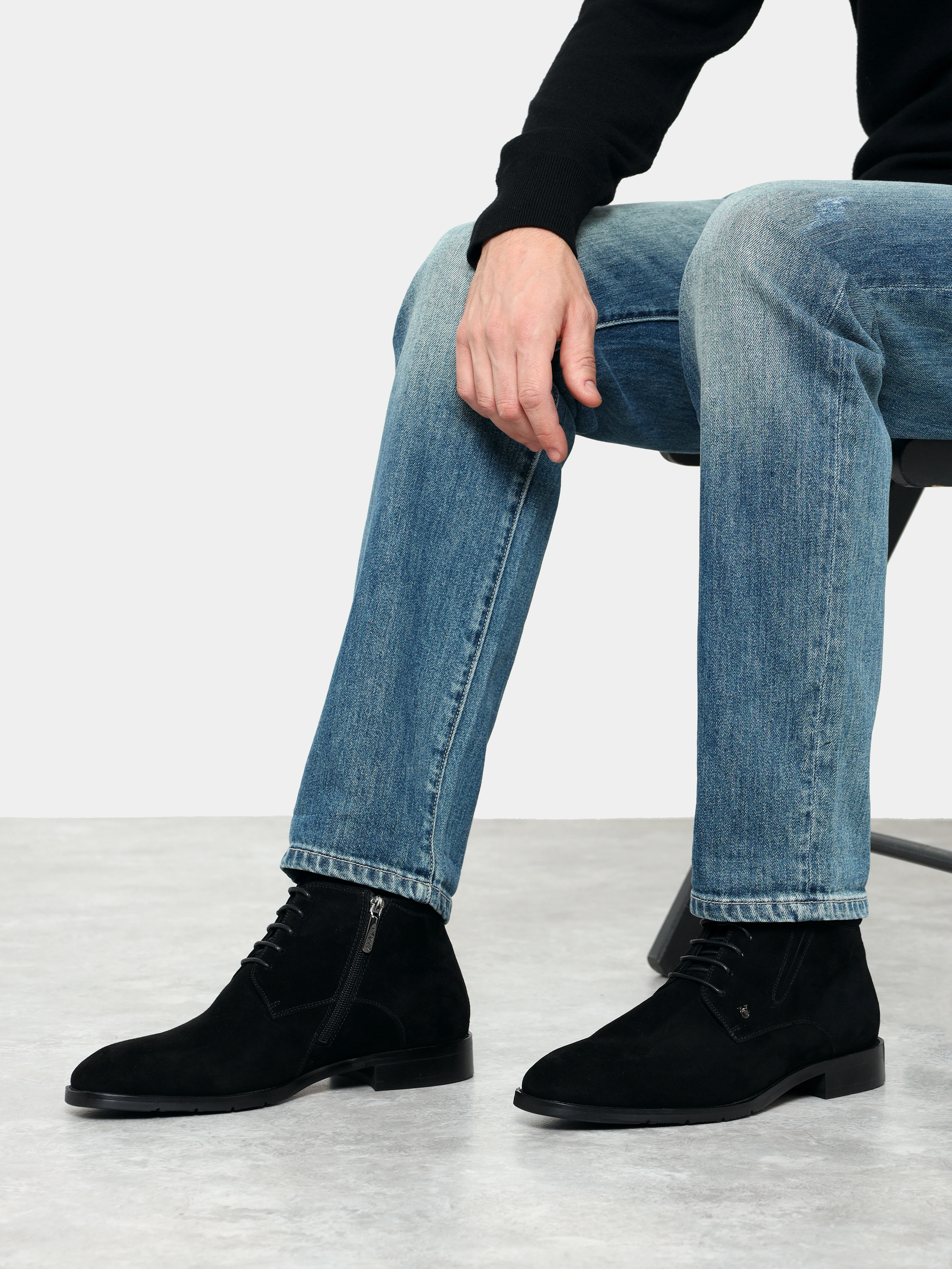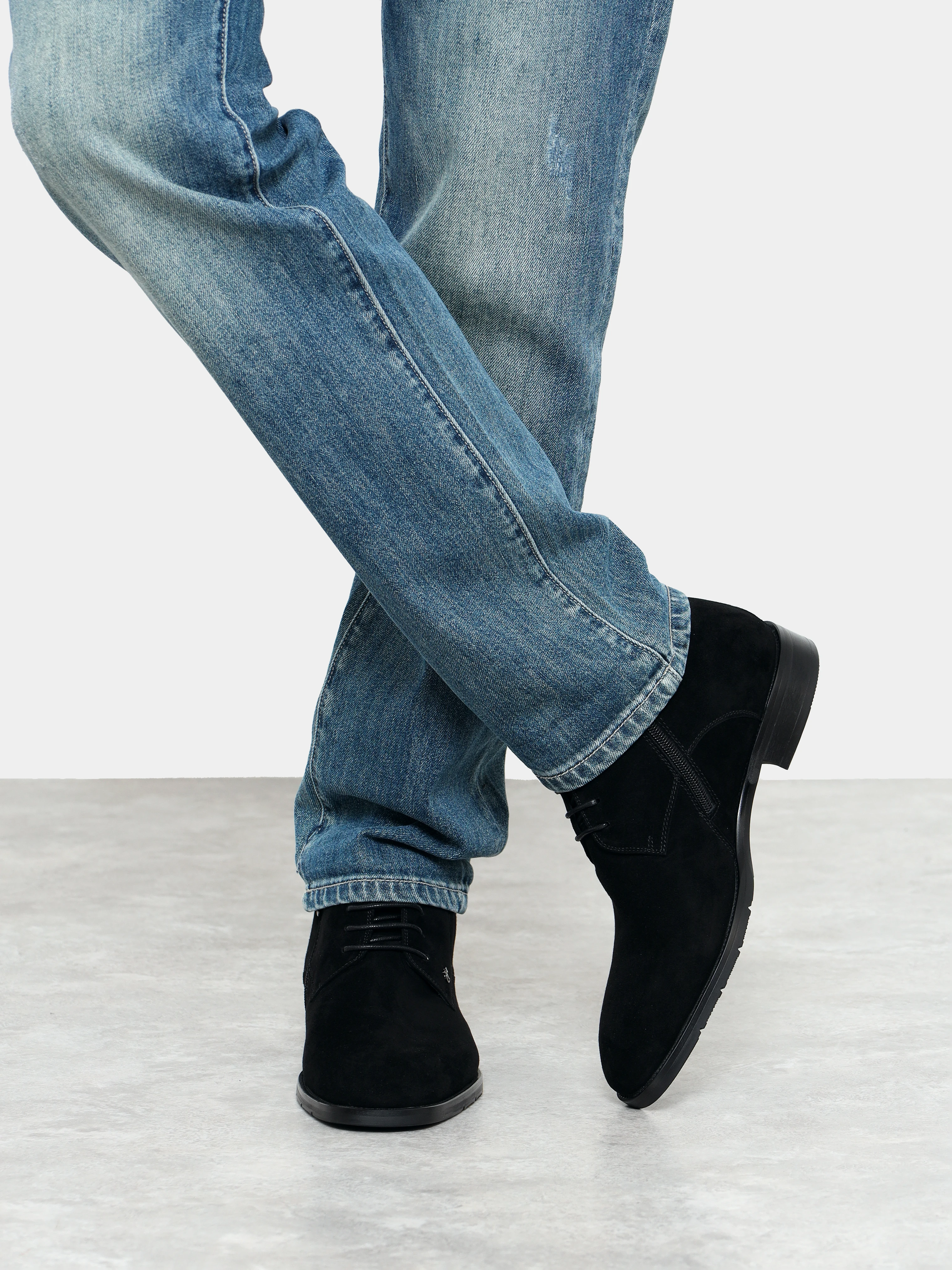 Ботинки мужские демисезонные, цвет черный, натуральный велюр