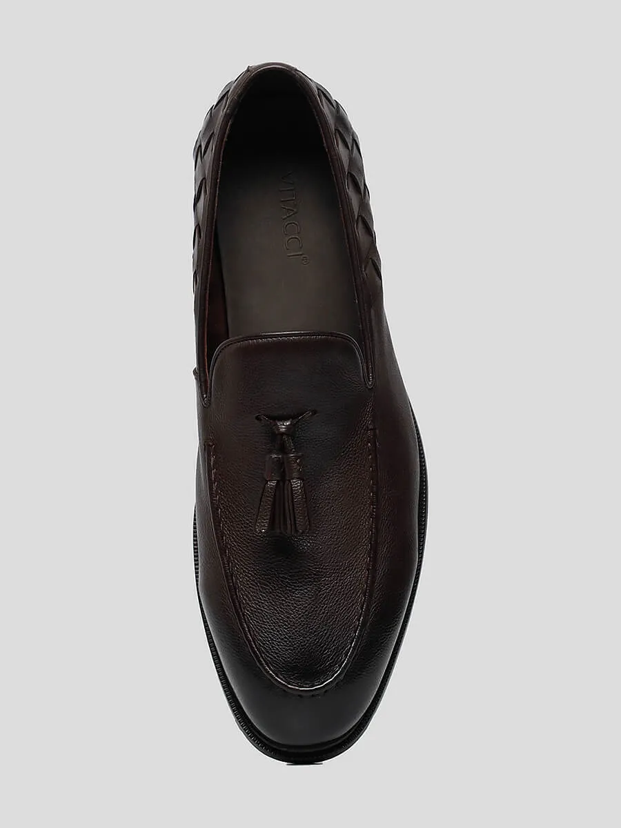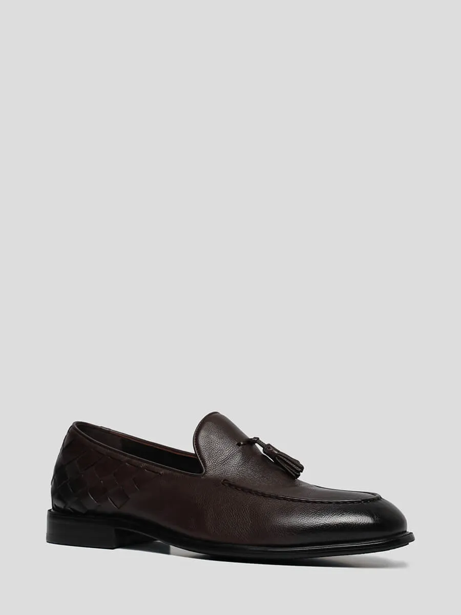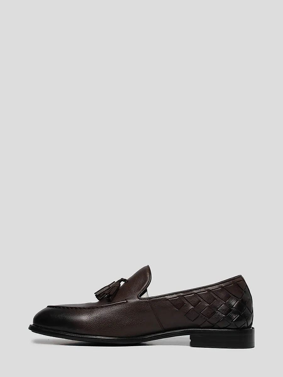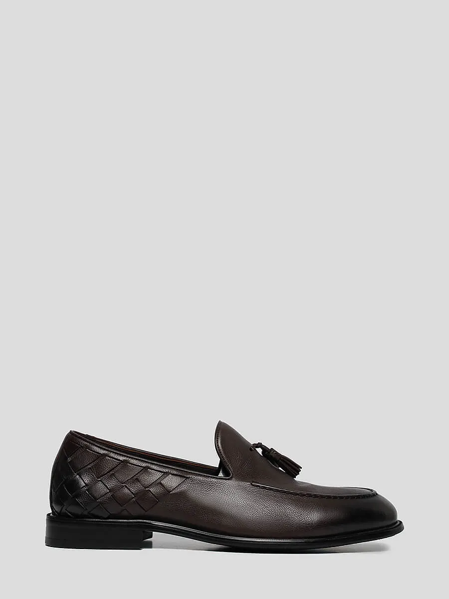 Тассел-лоферы из натуральной кожи. Закругленный носок, декор в виде кисточек и плетения, плоский низкий каблук – отличительные черты данной модели.
