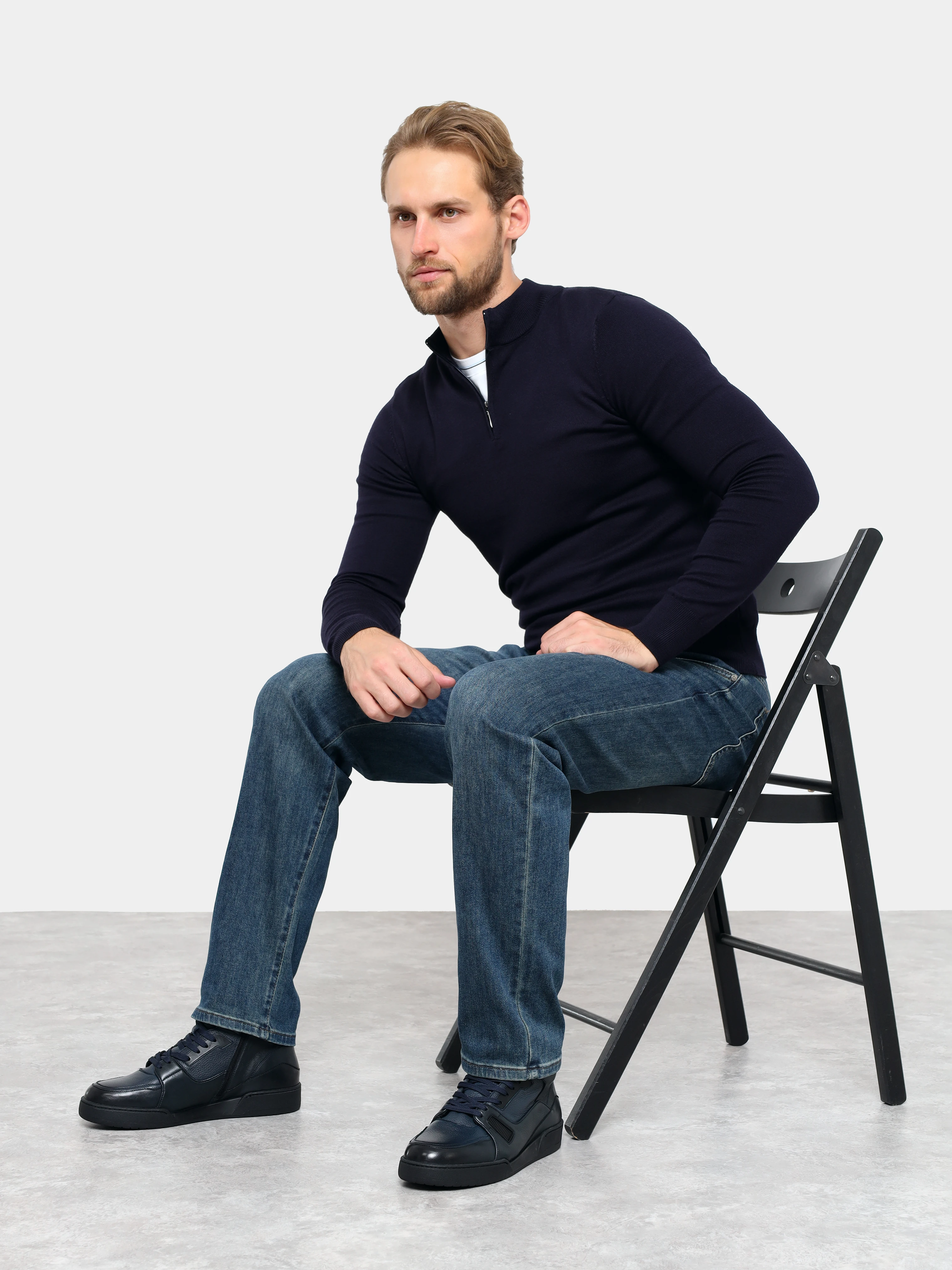 Кеды мужские демисезонные, цвет синий, натуральная кожа
