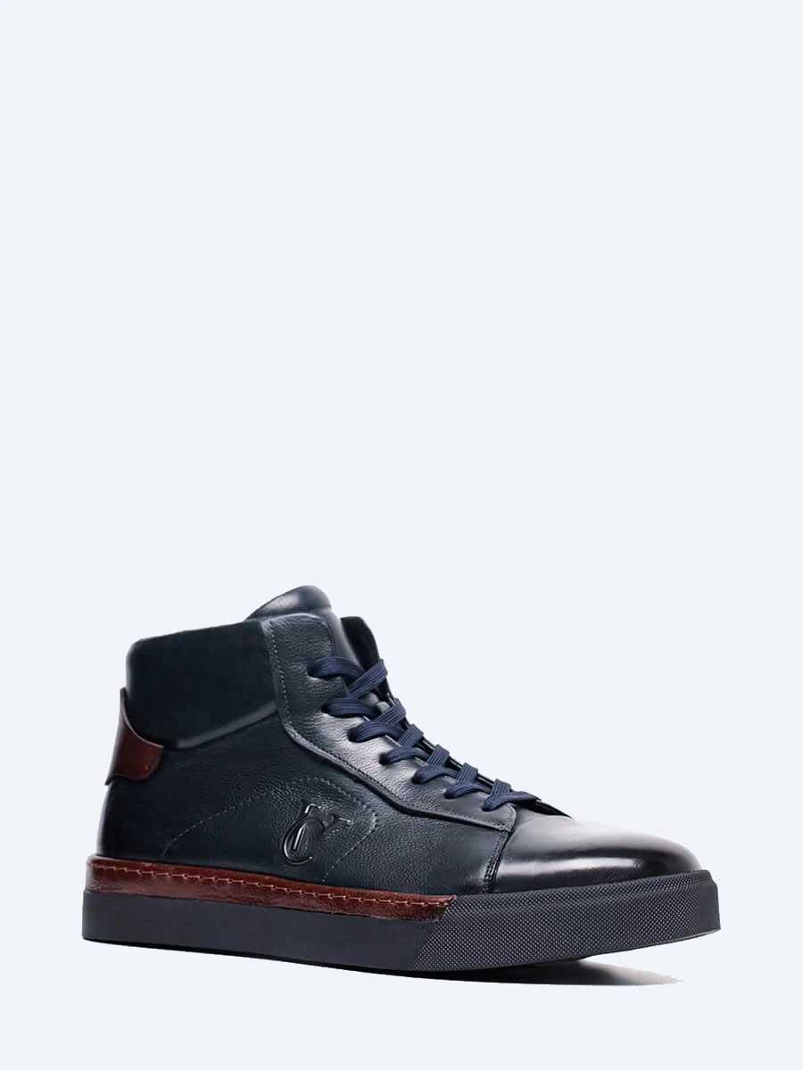 Кеды мужские зимние, цвет синий, натуральная кожа