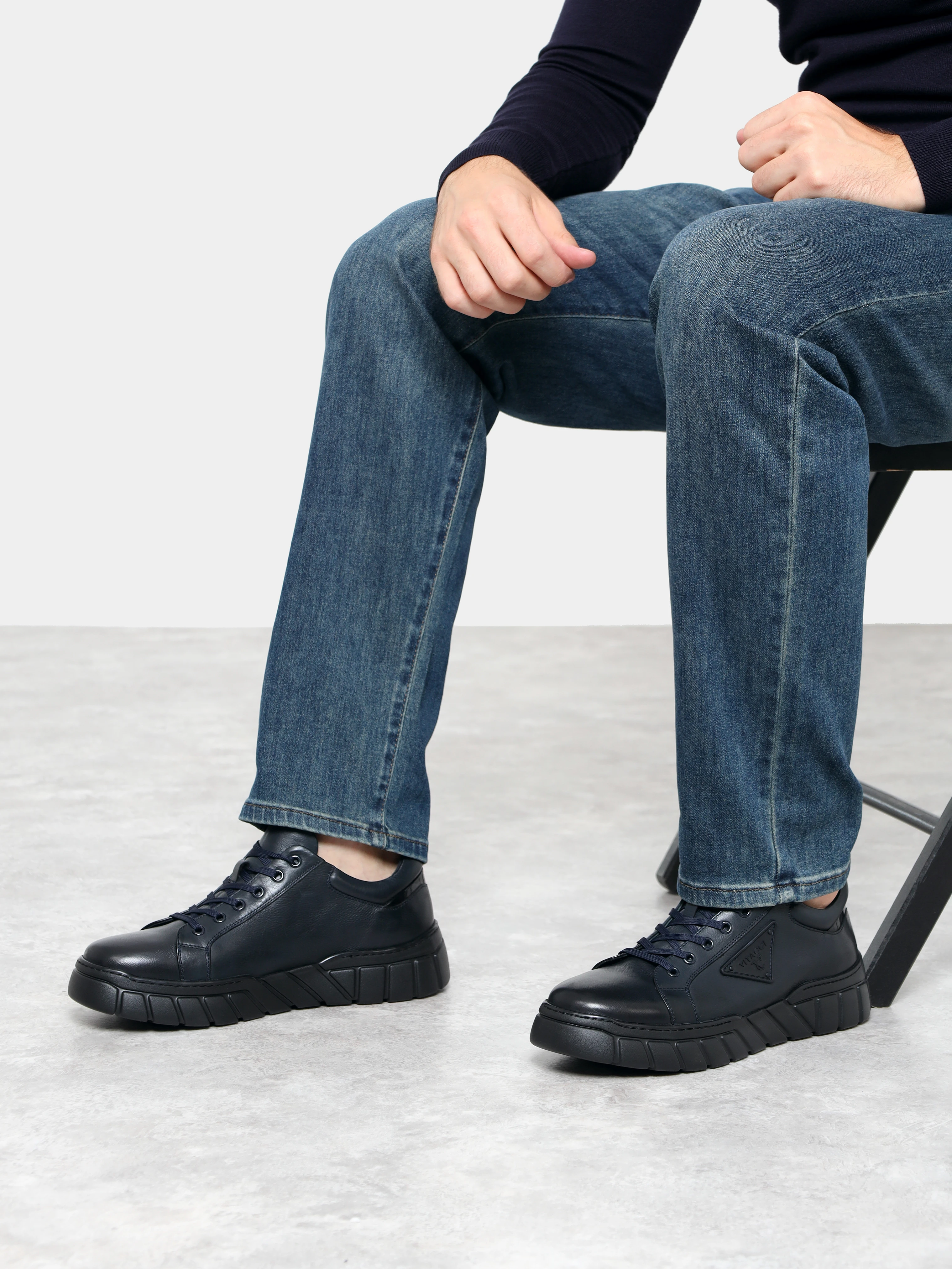 Кеды мужские демисезонные, цвет синий, натуральная кожа