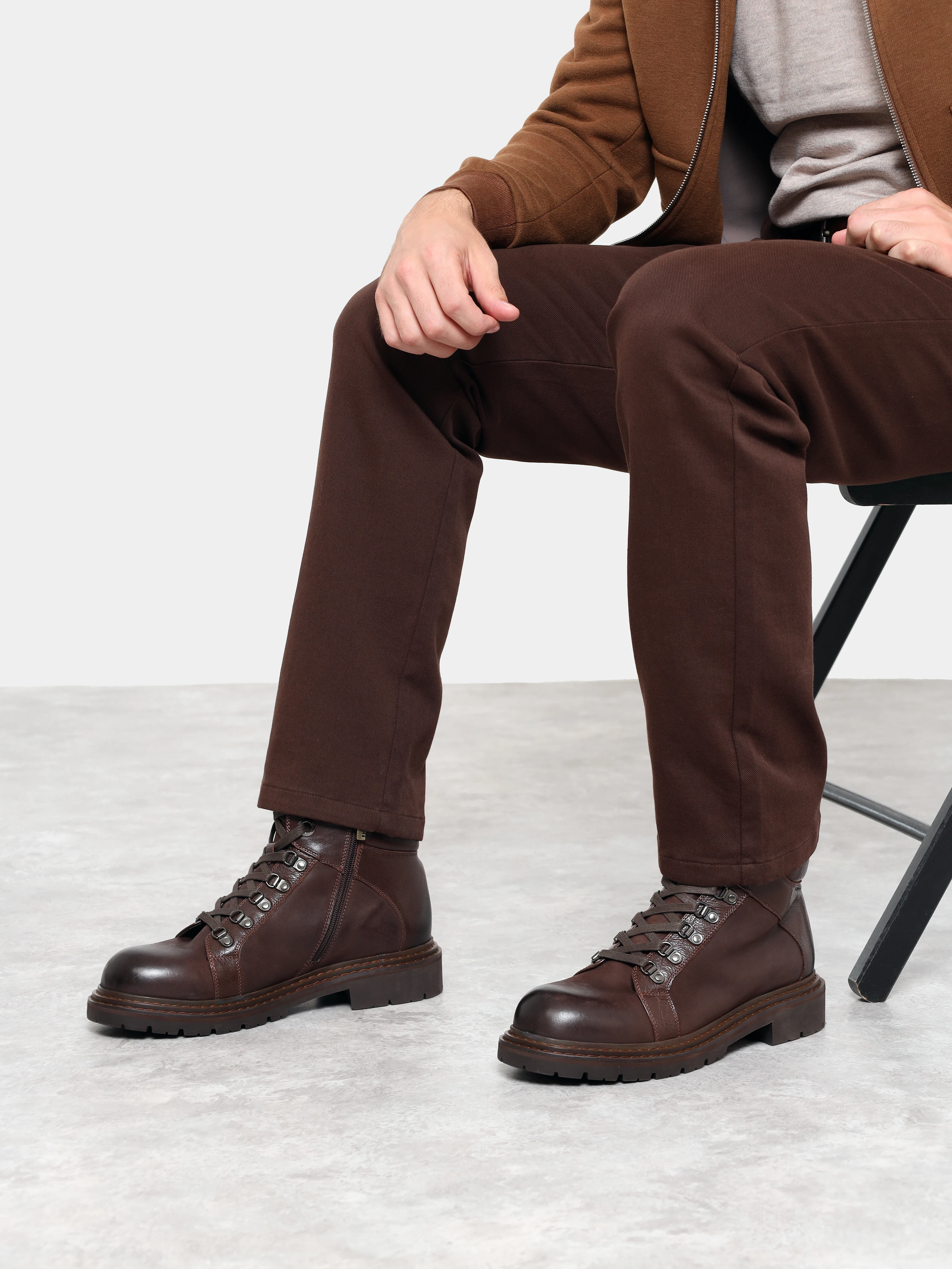 Ботинки мужские демисезонные, цвет коричневый, натуральный нубук/натуральная кожа