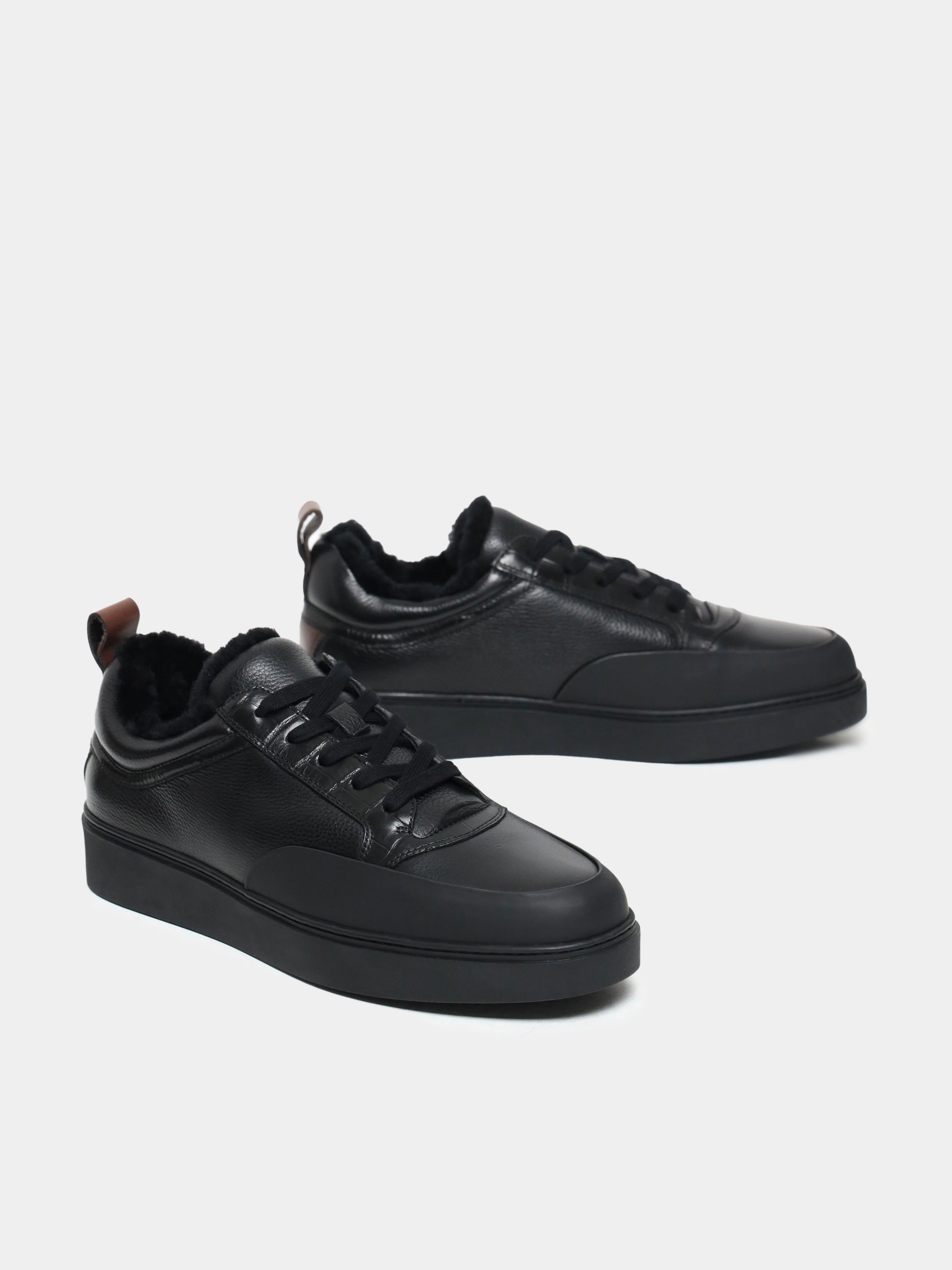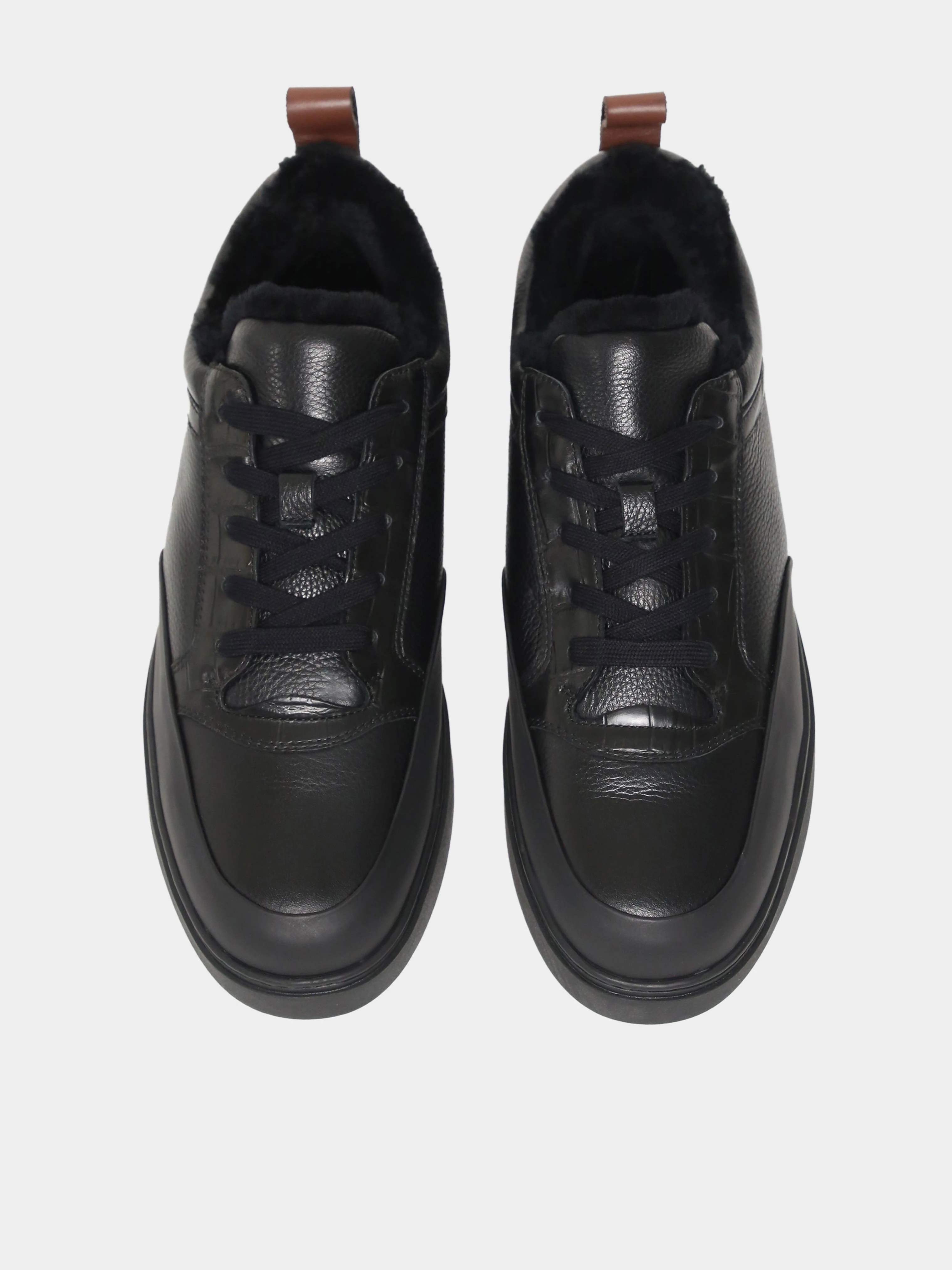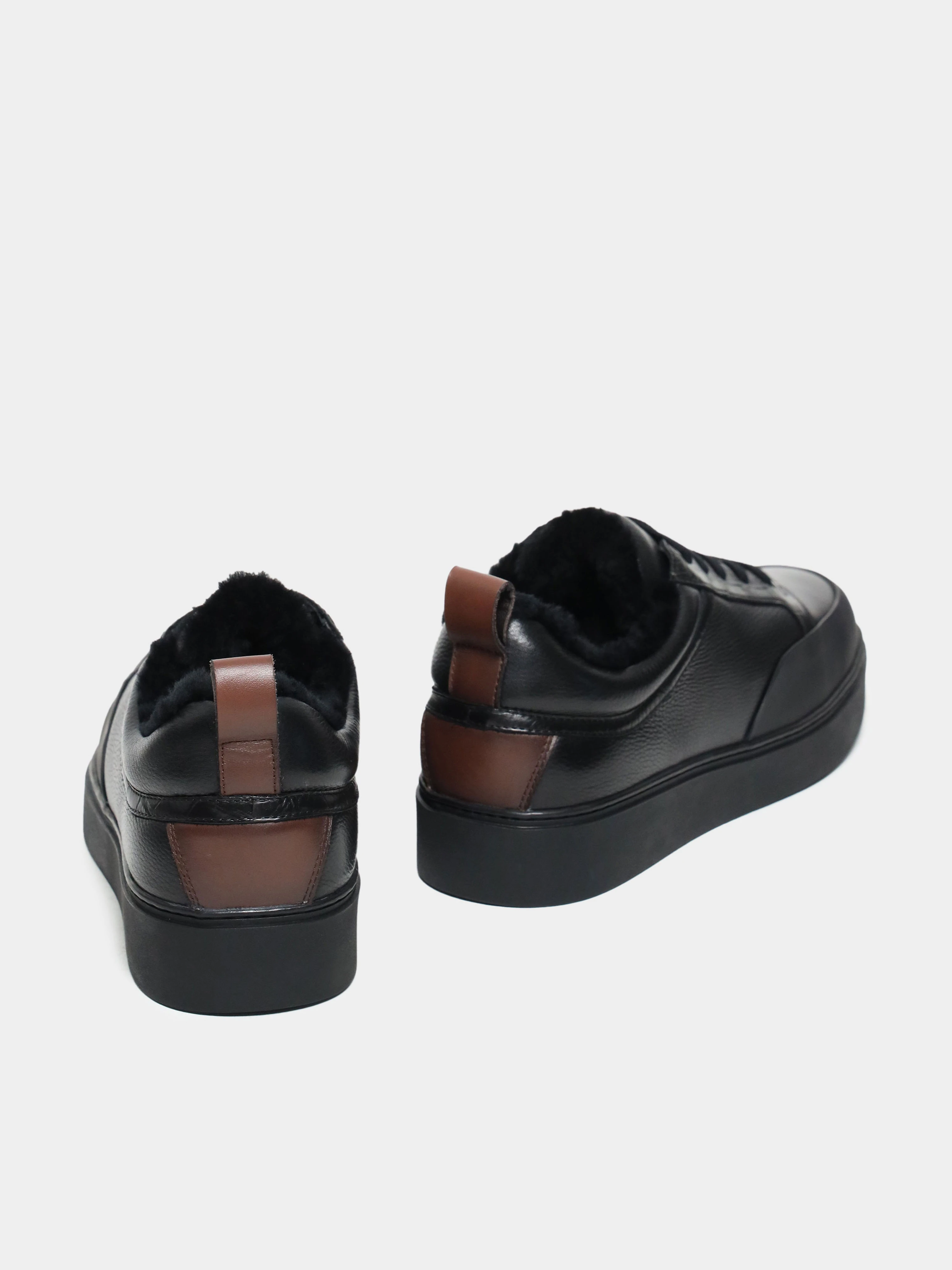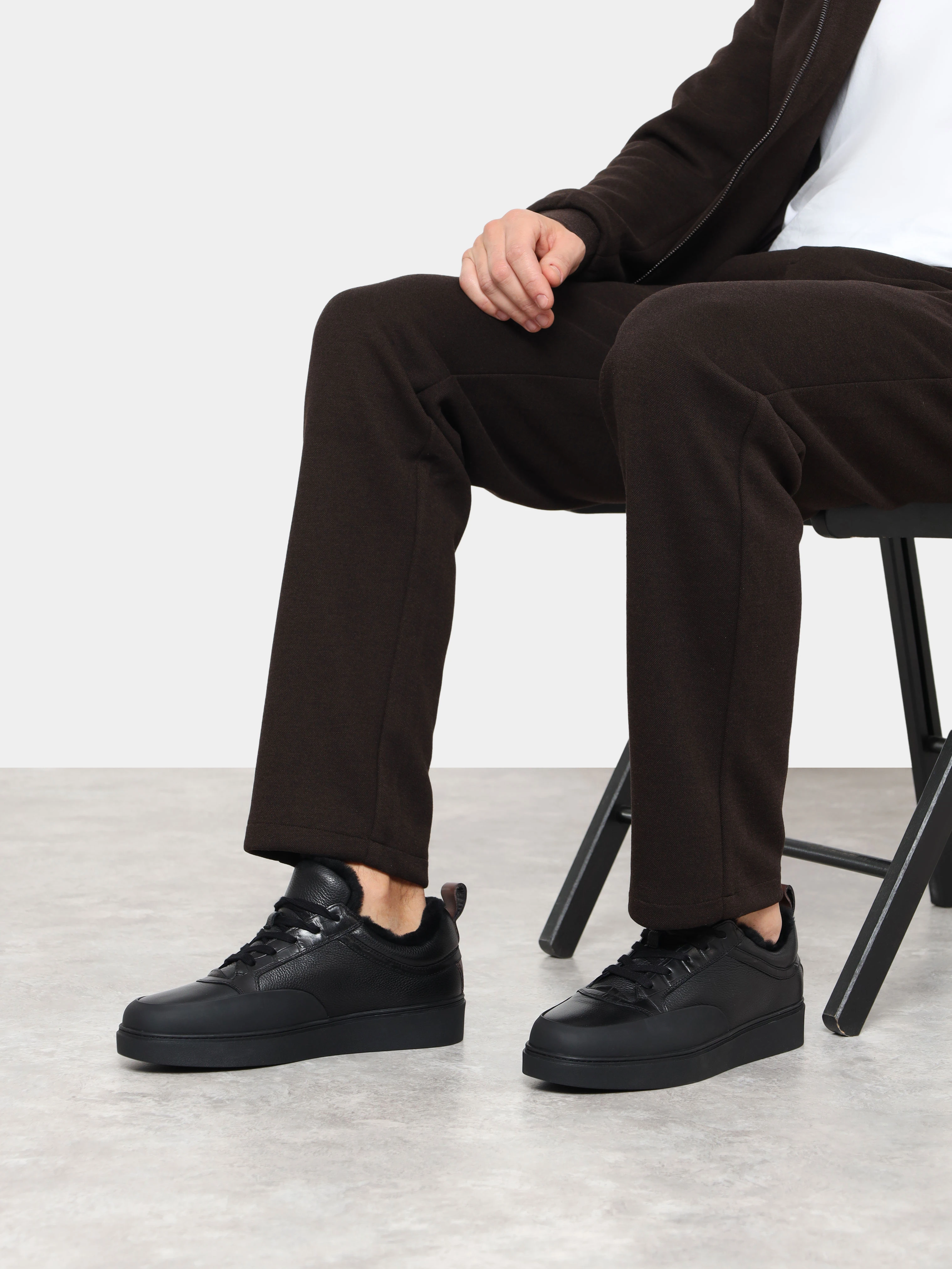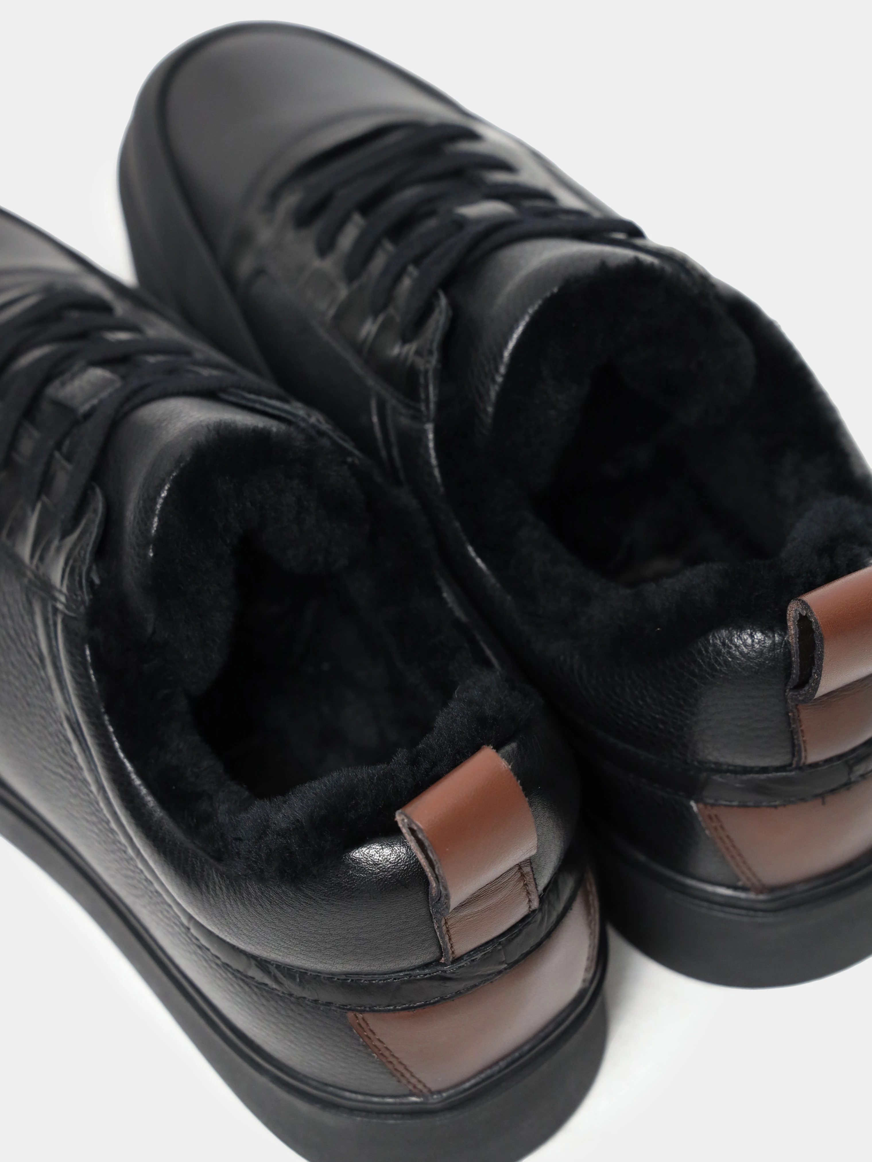 Кеды мужские зимние, цвет черный, натуральная кожа