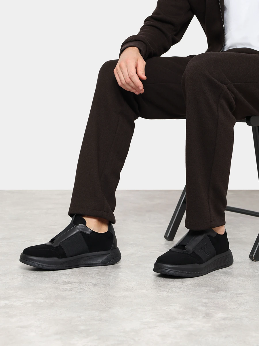 Кеды мужские демисезонные, цвет черный, натуральный спилок