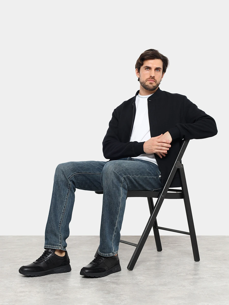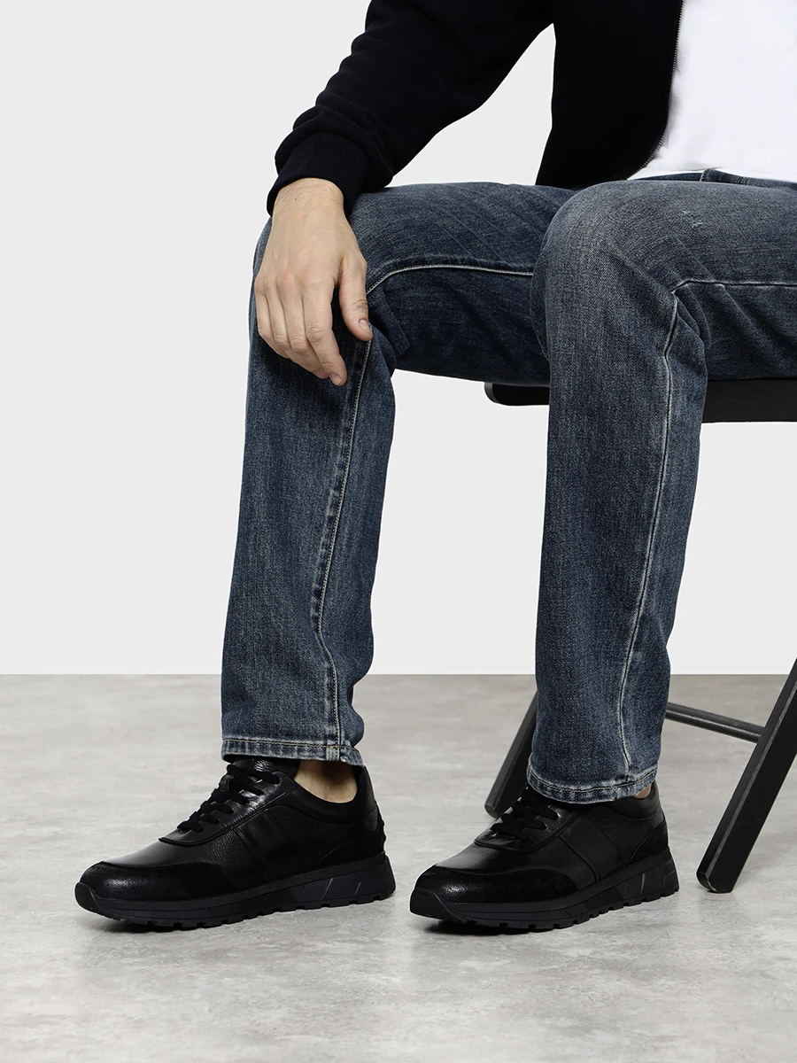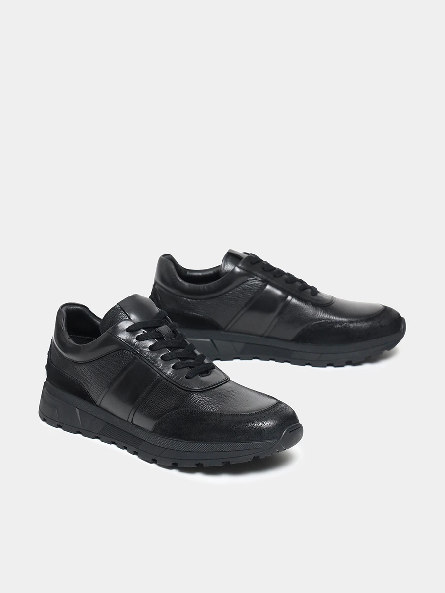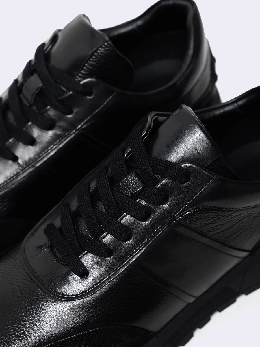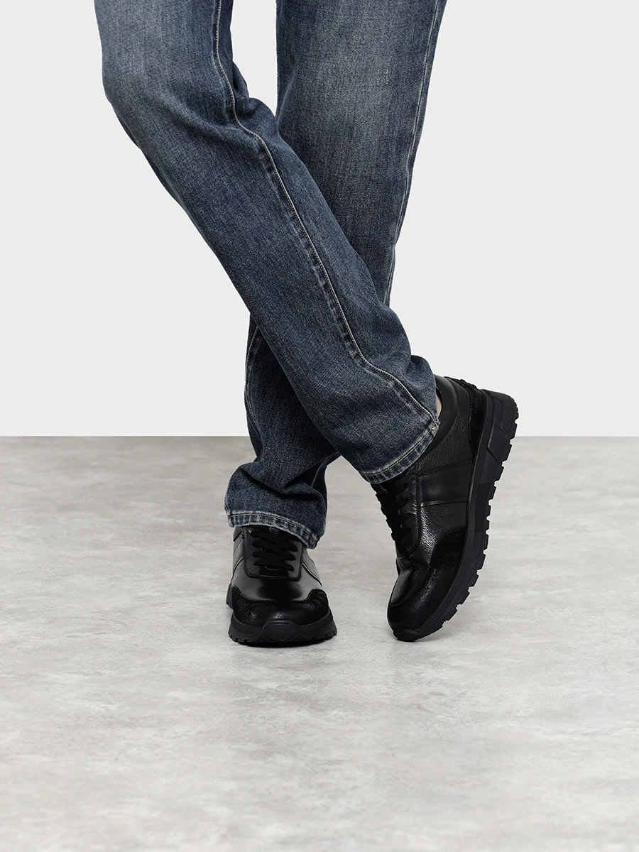 Кроссовки мужские демисезонные, цвет черный, натуральная кожа/натуральный спилок