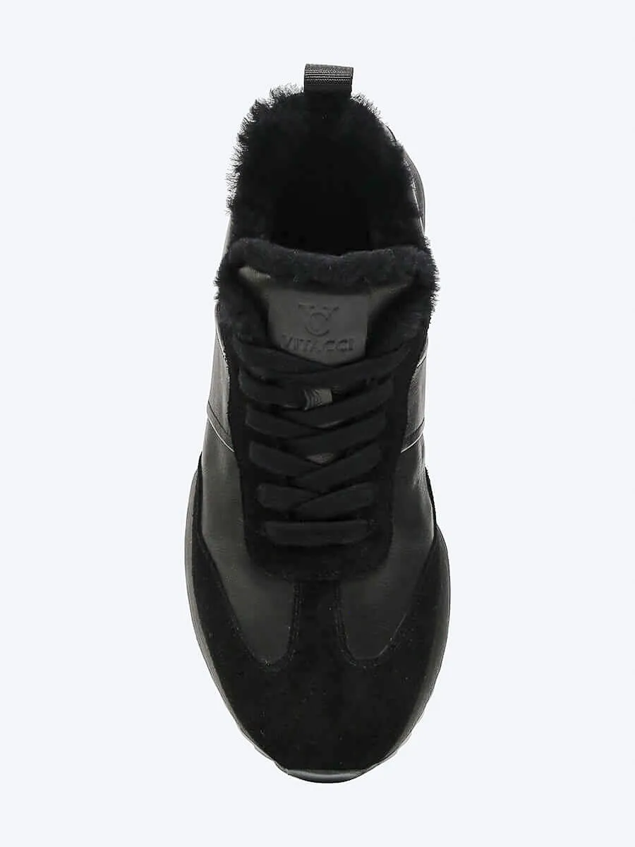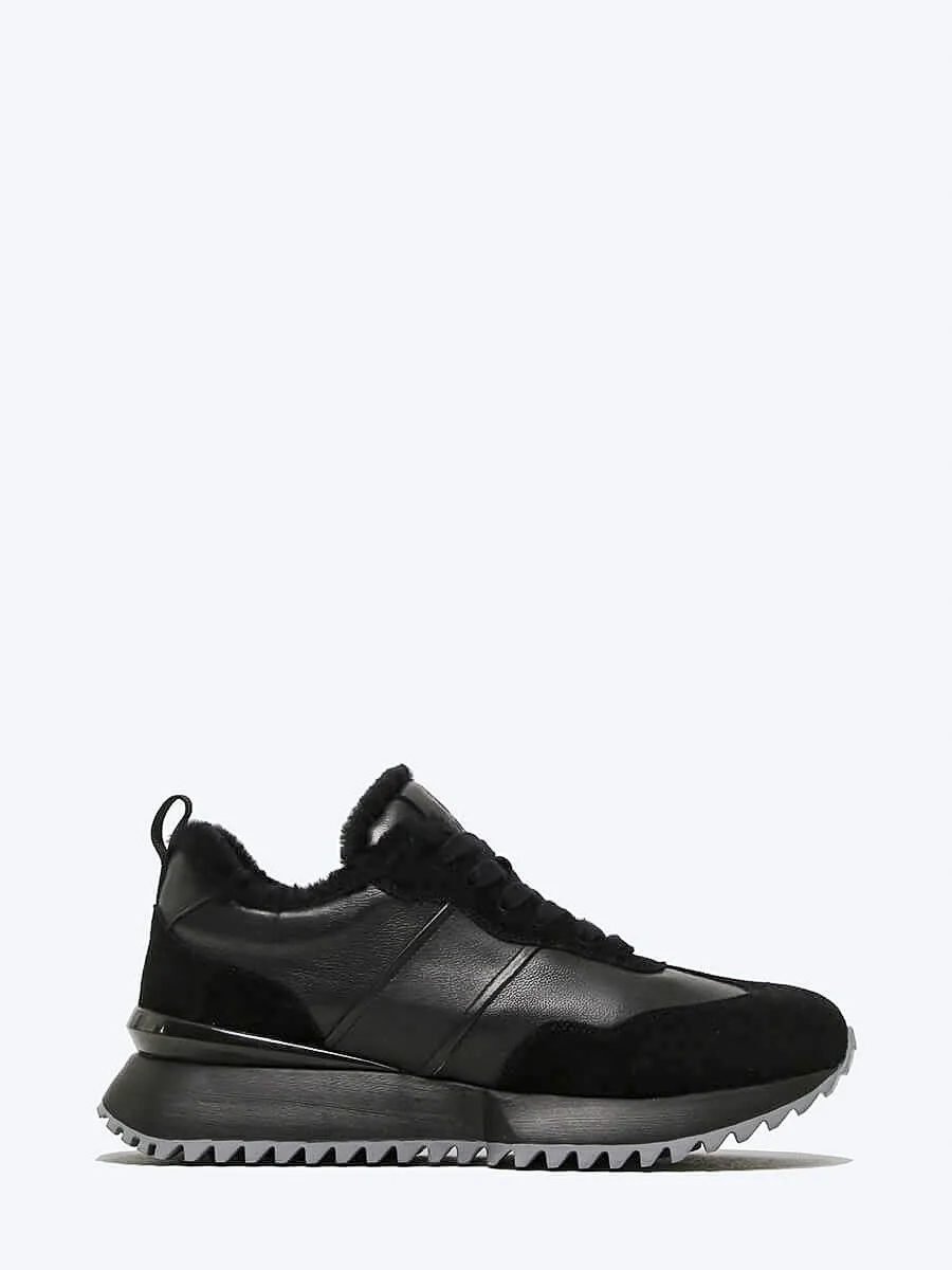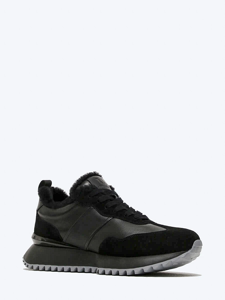 Кроссовки мужские зимние, цвет черный, натуральная кожа/натуральный спилок