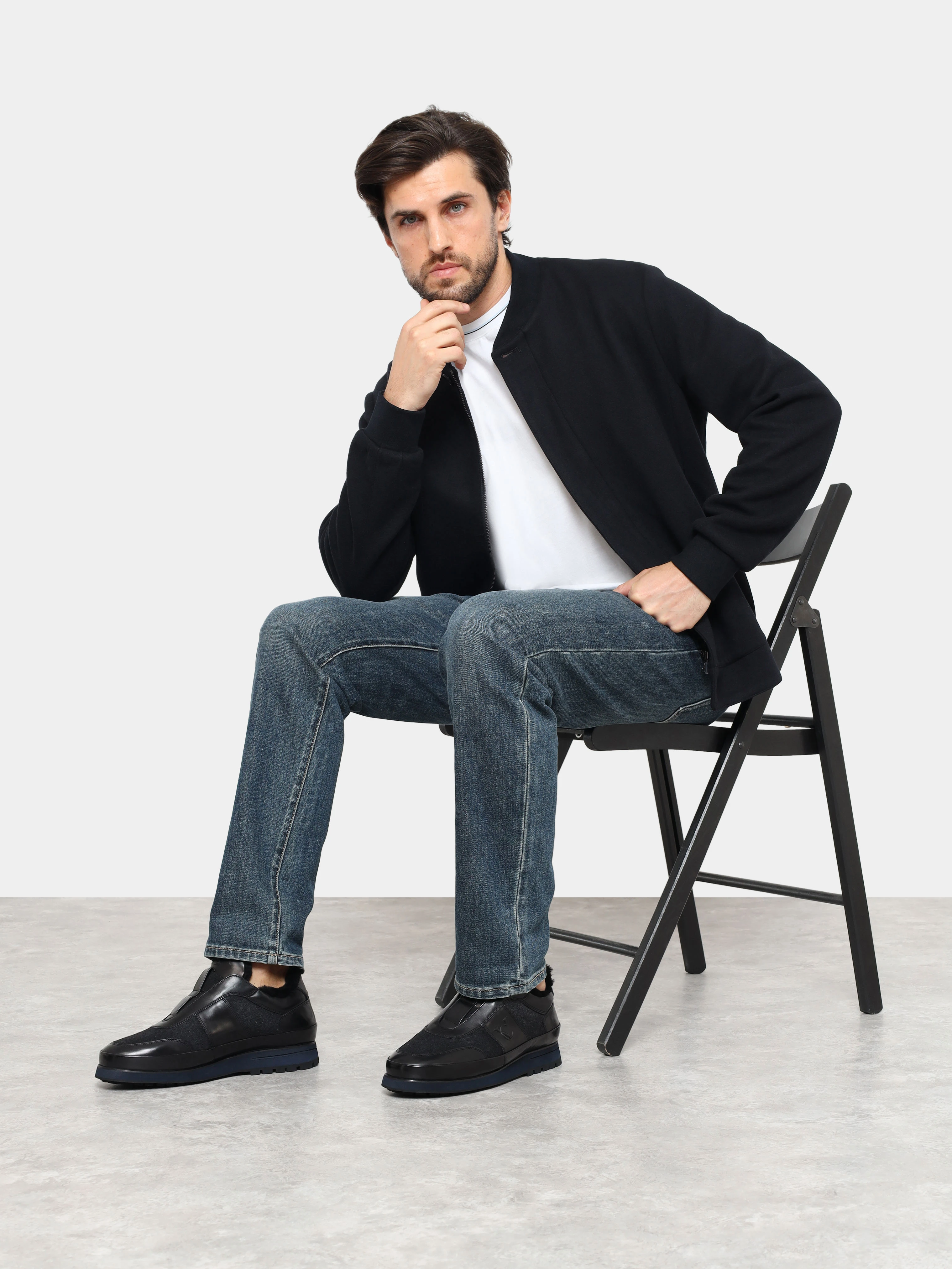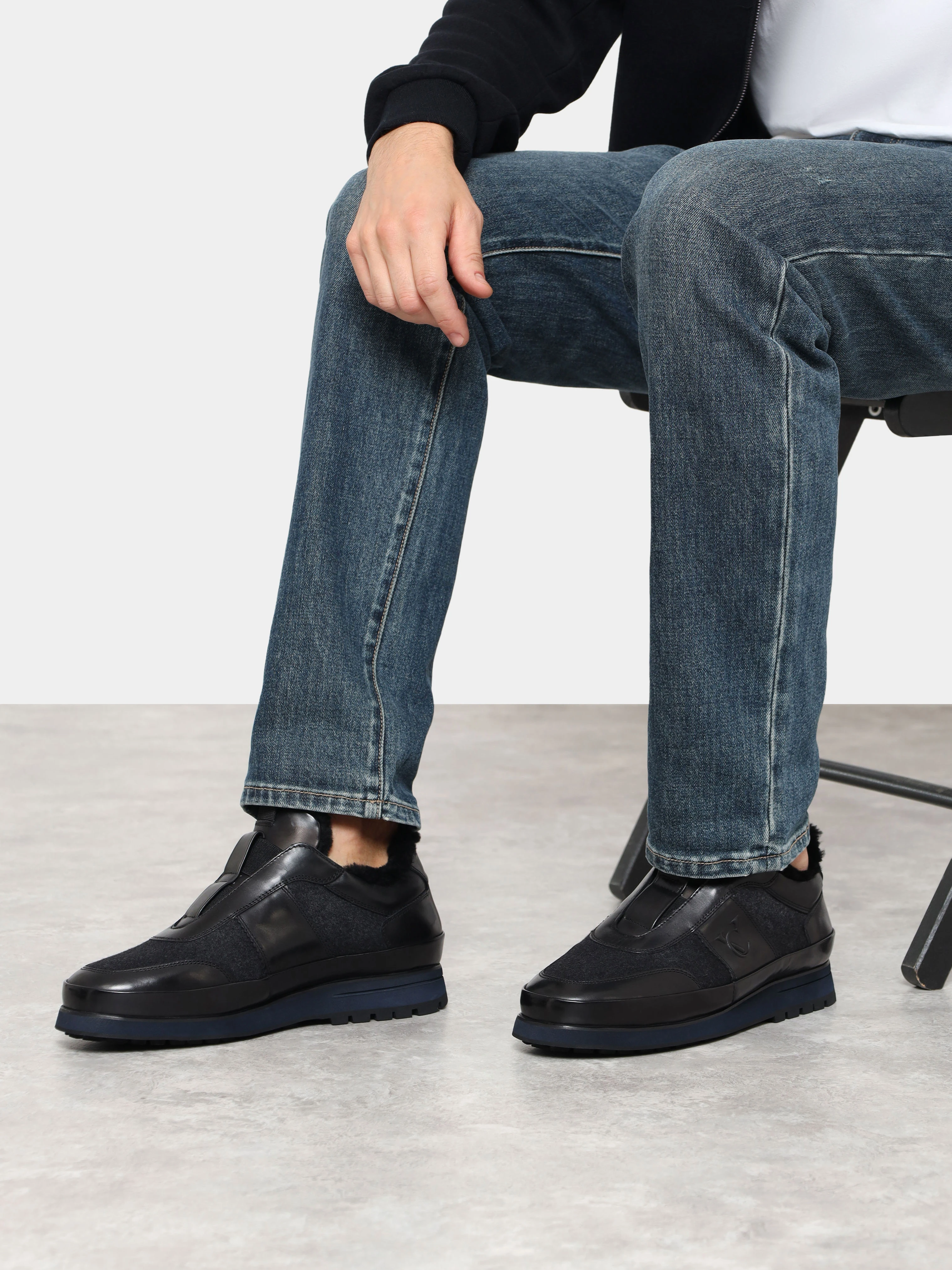 Кроссовки мужские зимние, цвет черный, натуральная кожа/текстиль