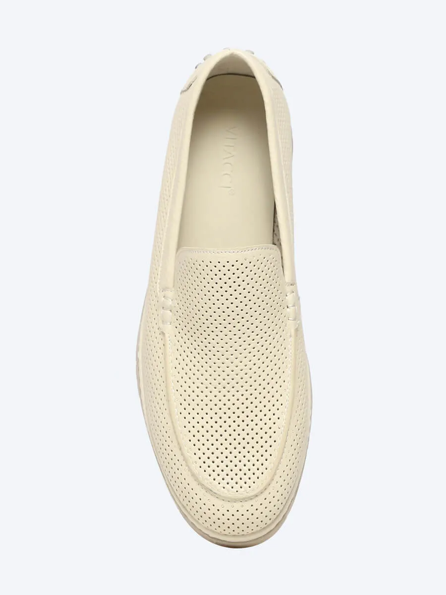 Лоферы мужские летние, цвет молочный, натуральная кожа