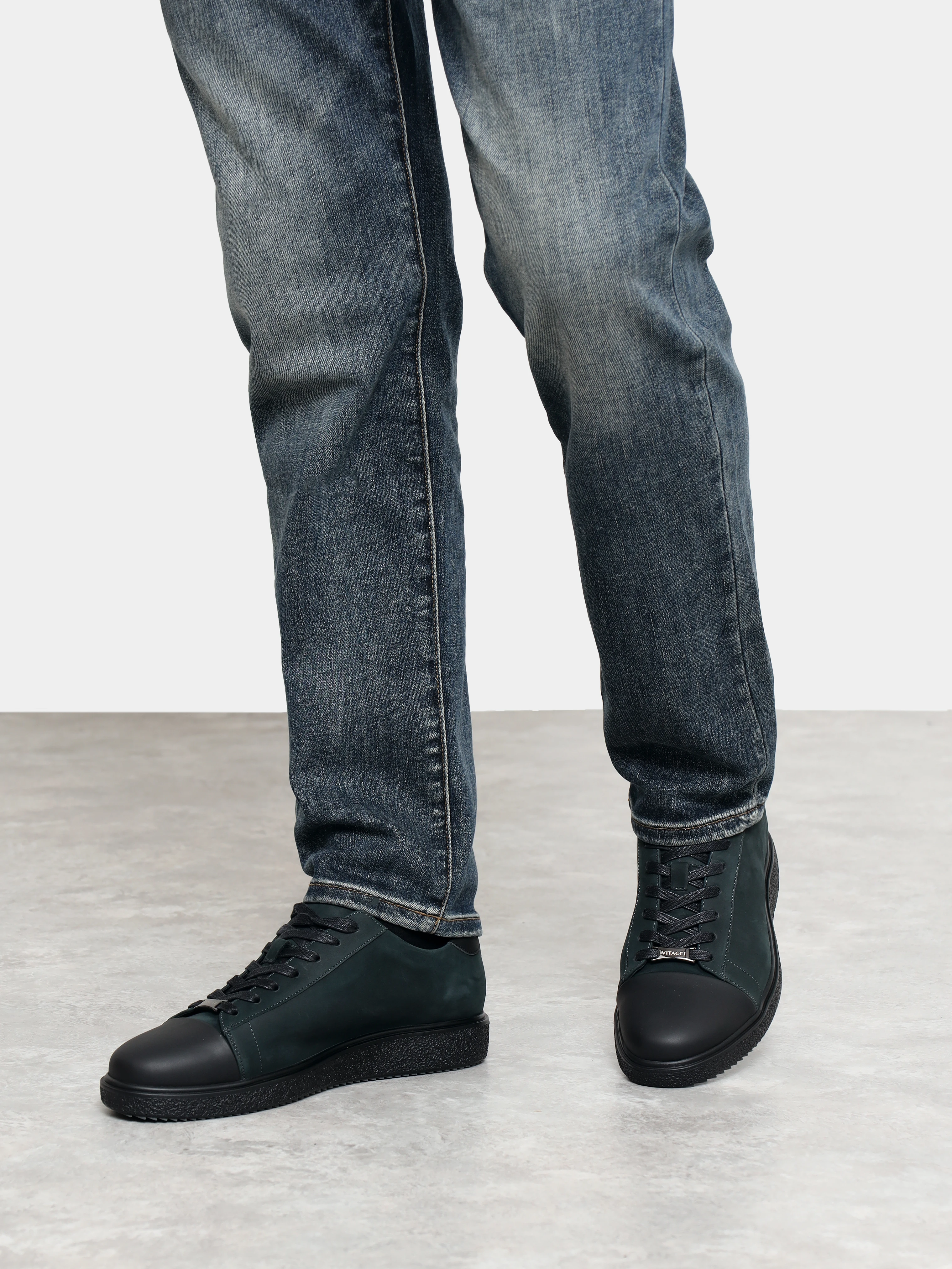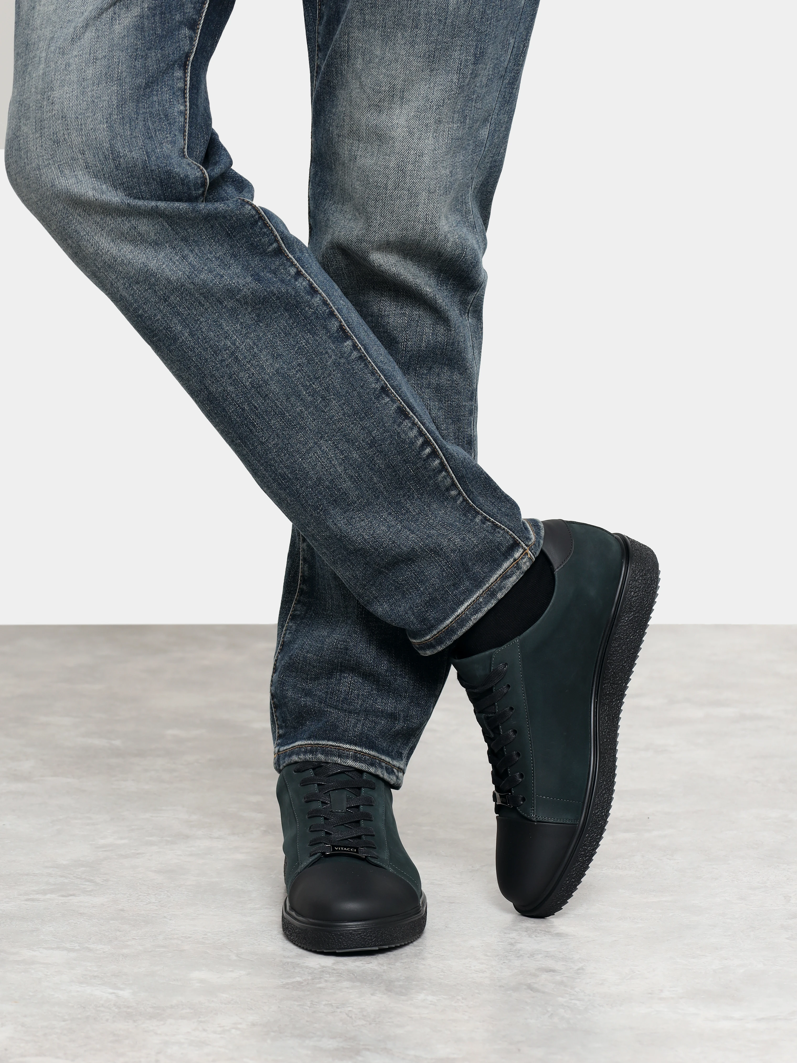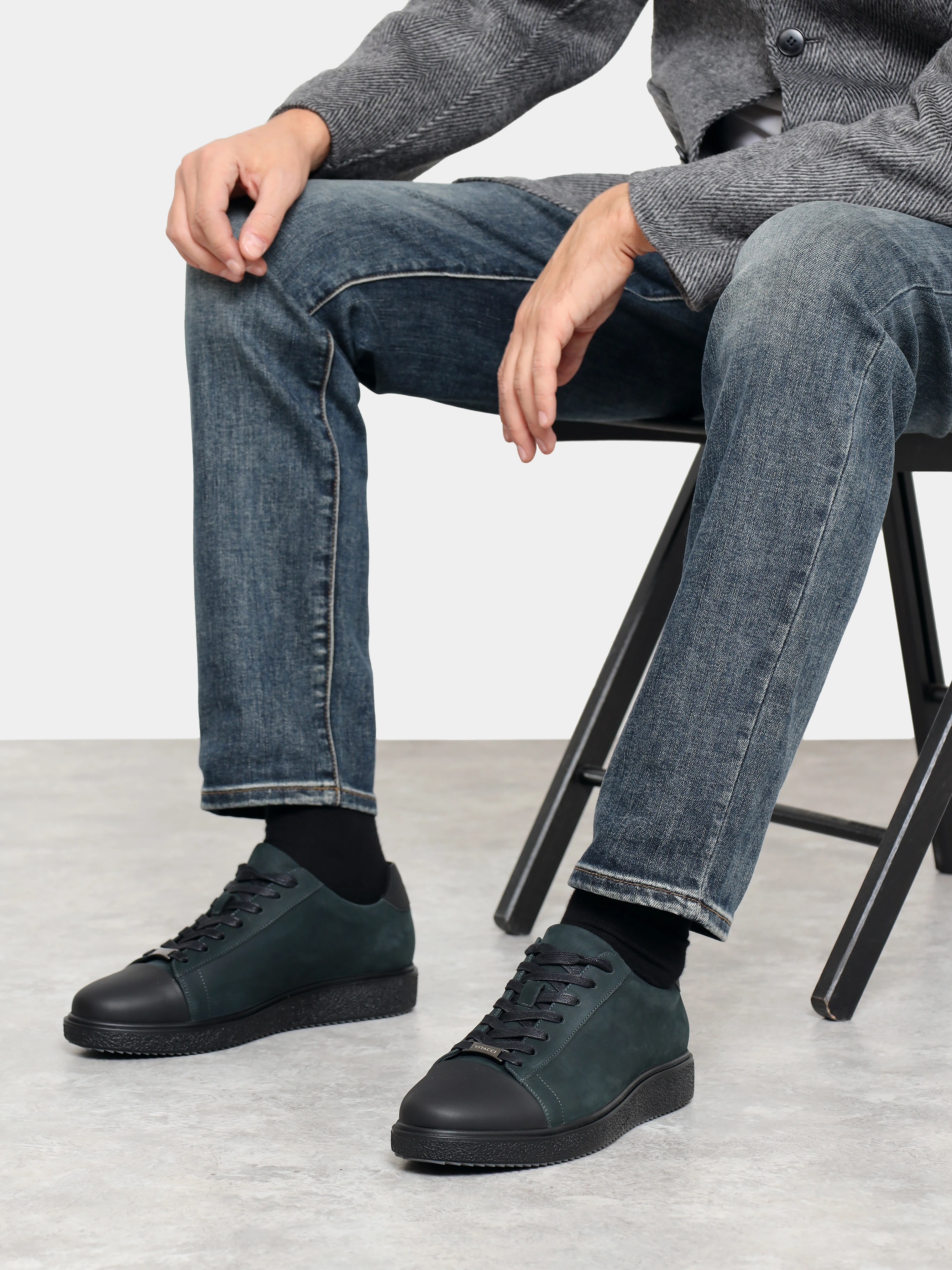 Кеды мужские демисезонные, цвет изумрудный, натуральный нубук/натуральная кожа