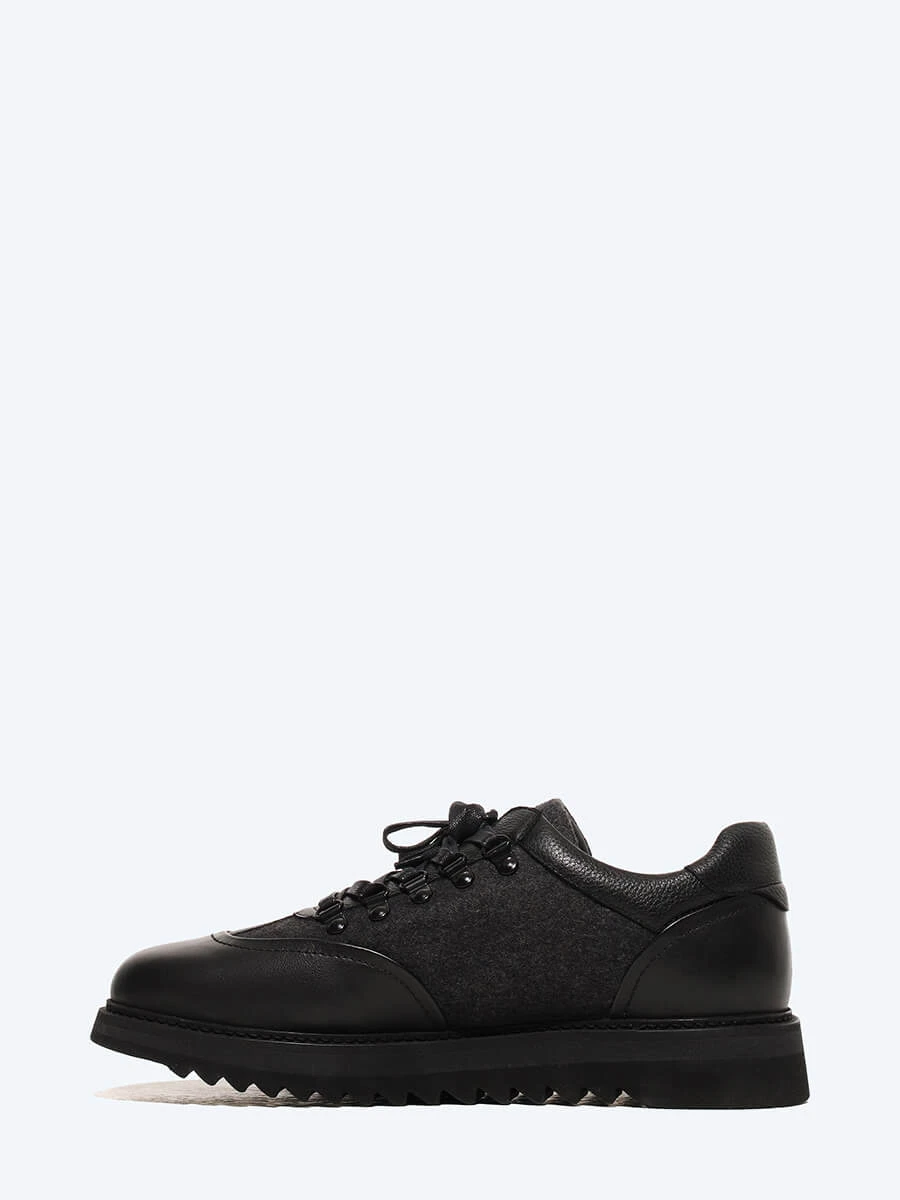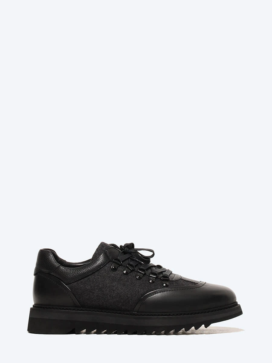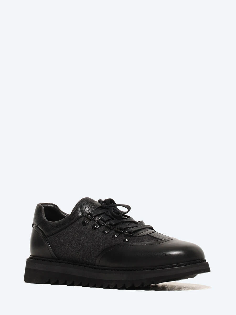 Полуботинки мужские зимние, цвет черный, натуральная кожа/шерсть