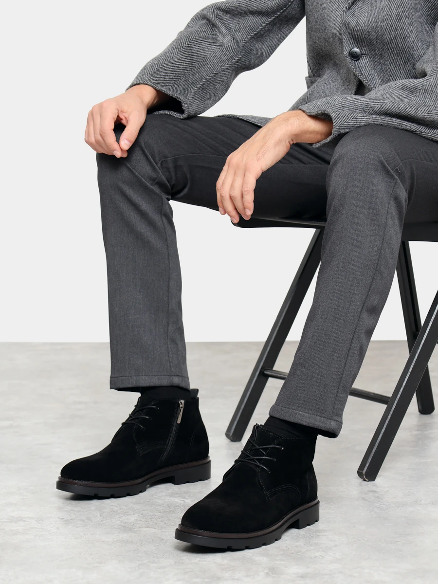 Ботинки мужские демисезонные, цвет черный, натуральный спилок