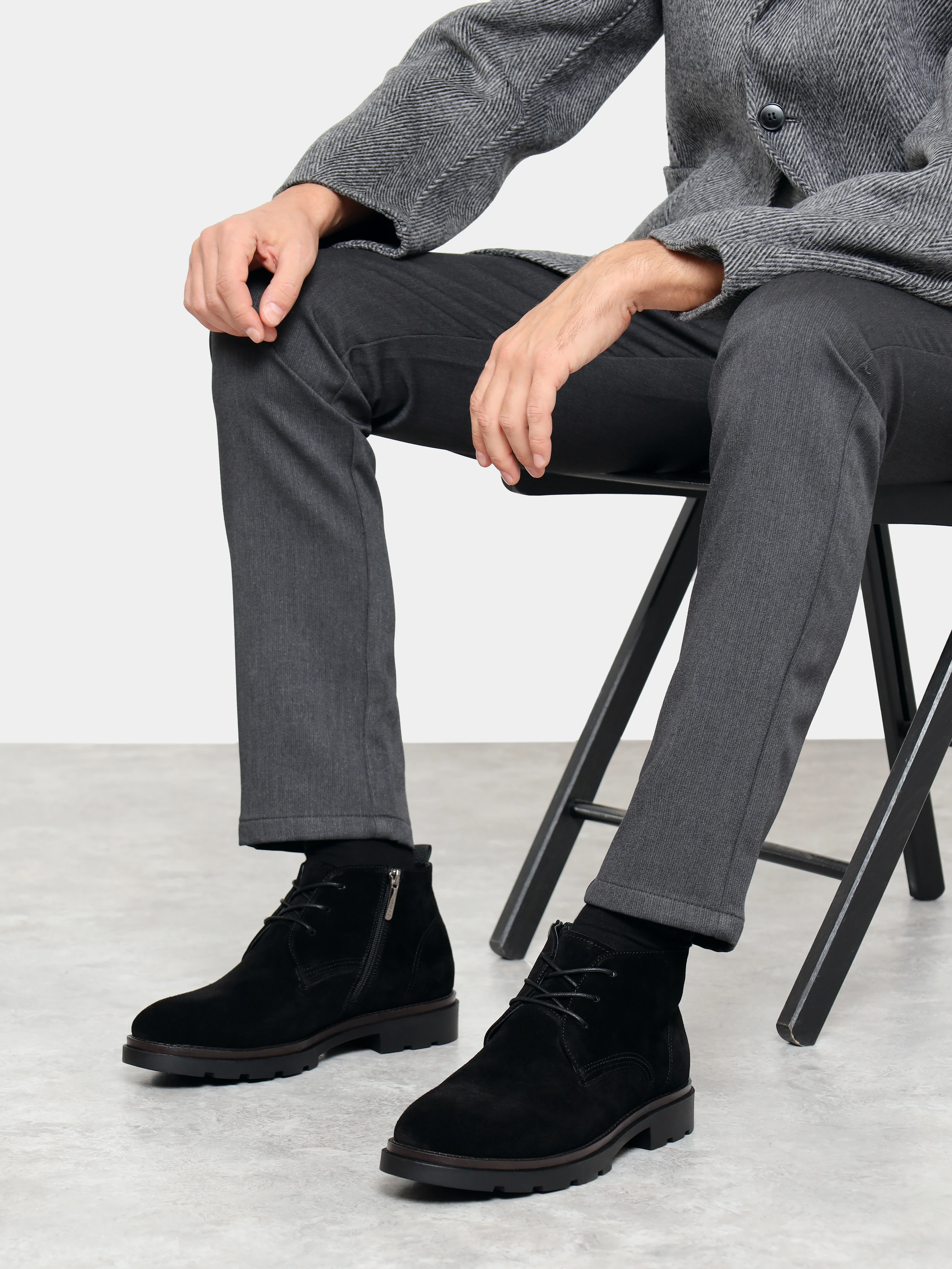 Ботинки мужские зимние, цвет черный, натуральный спилок
