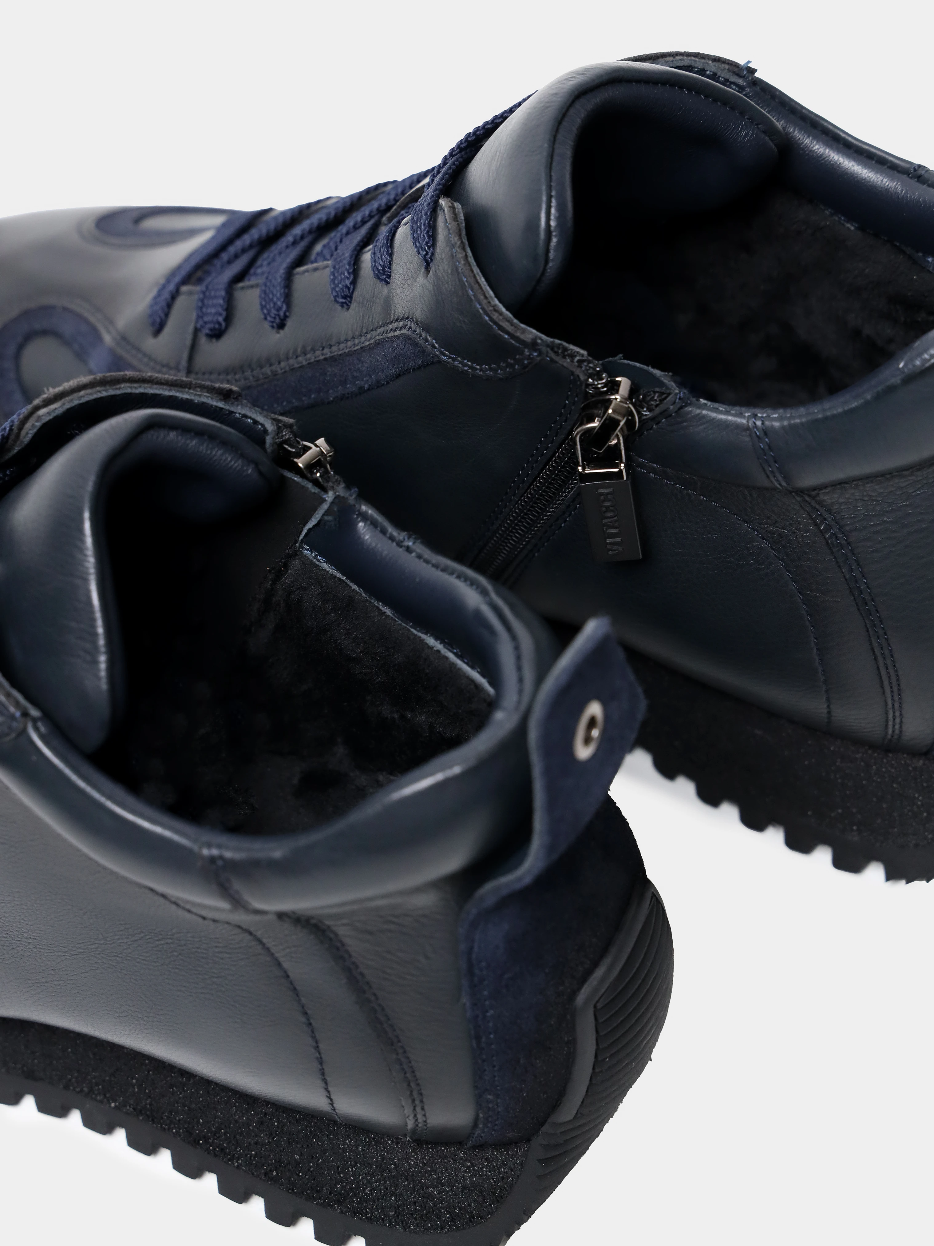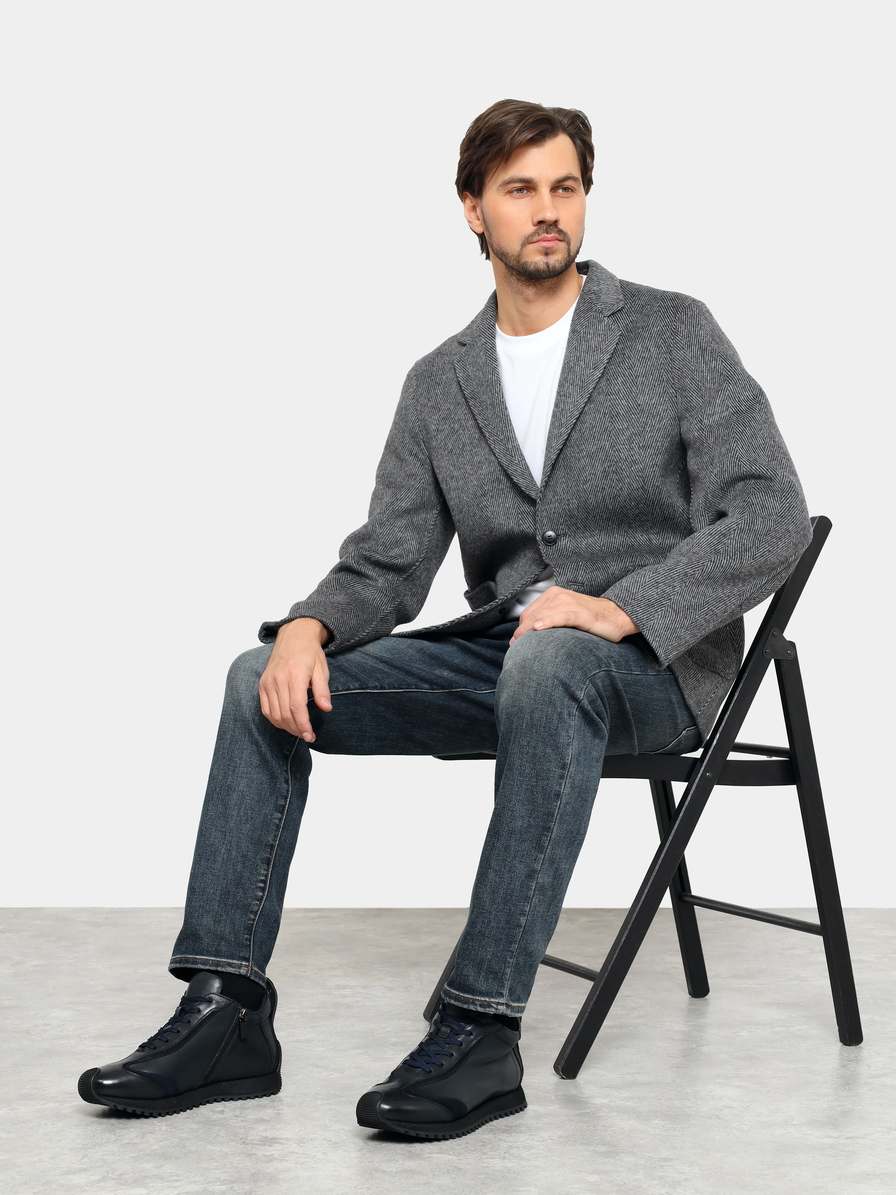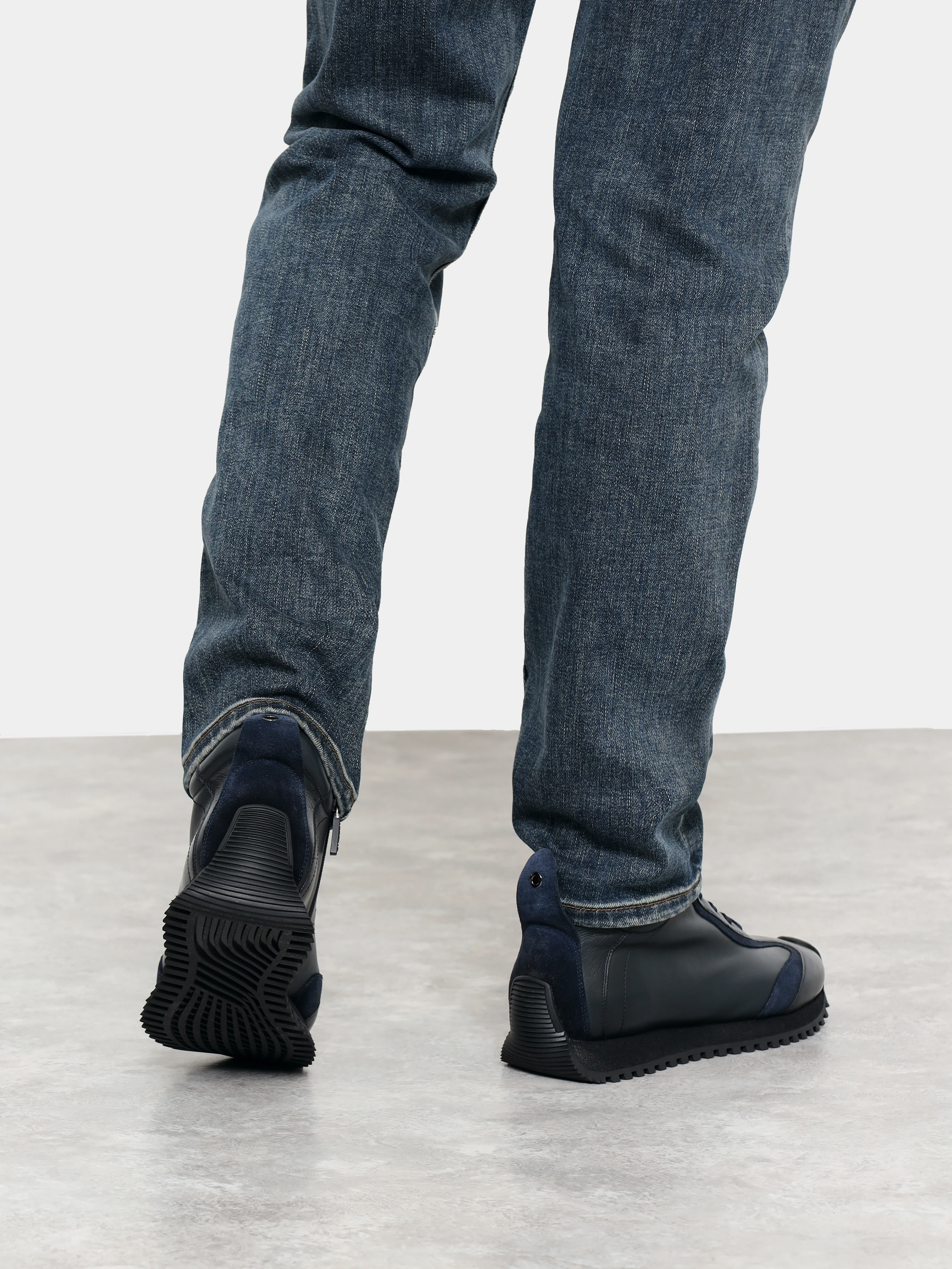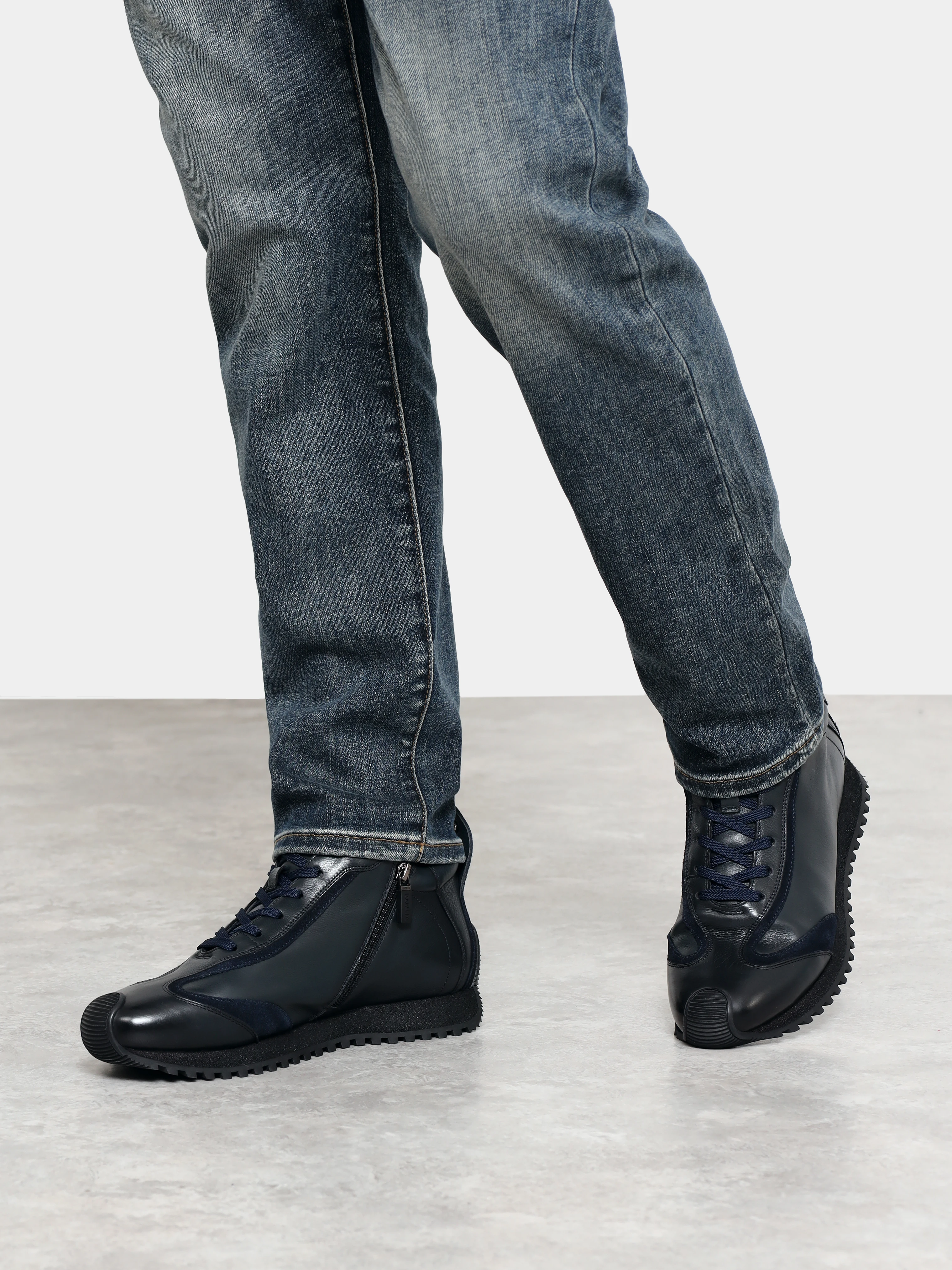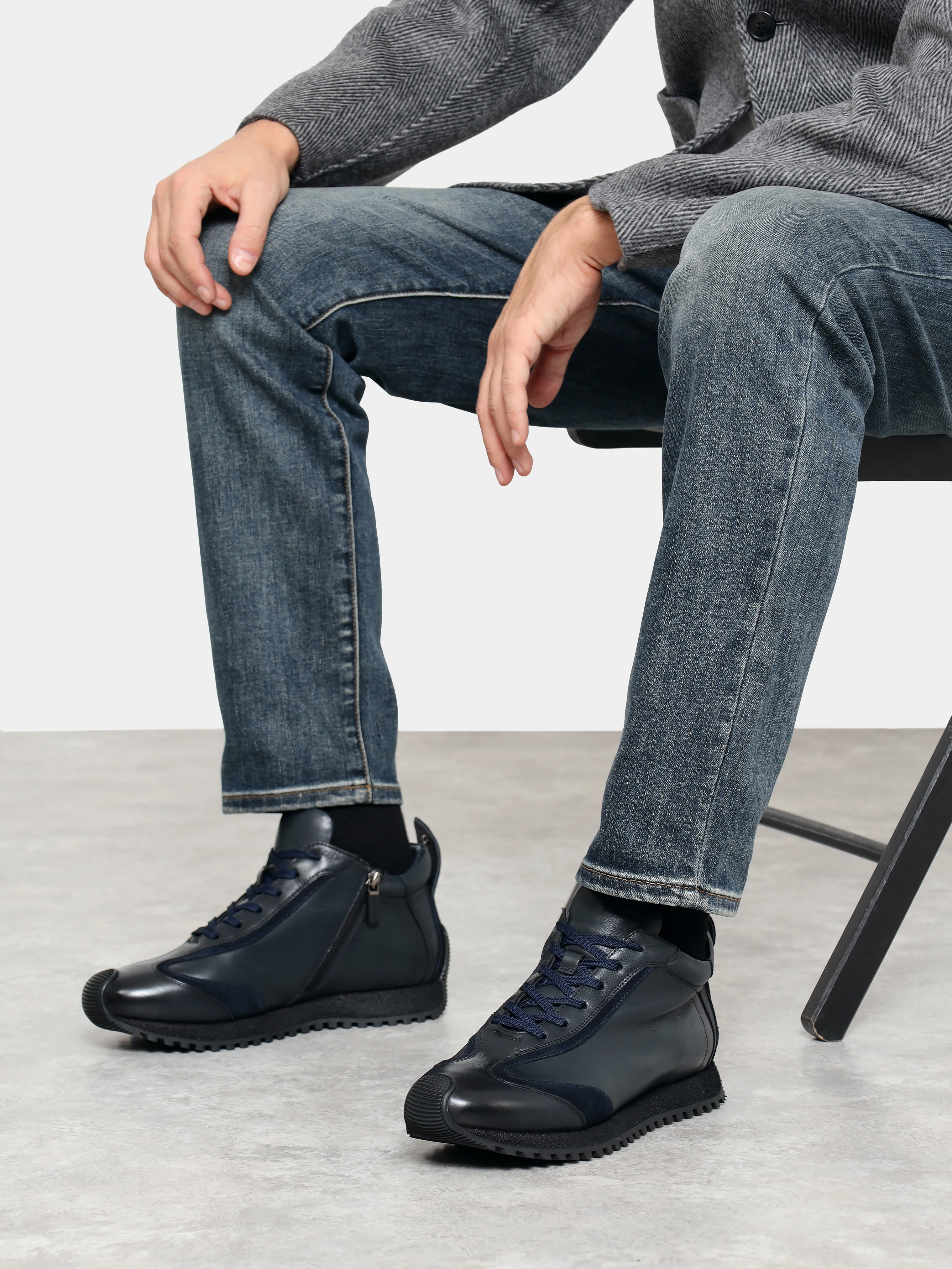 Ботинки мужские демисезонные, цвет синий, натуральная кожа/натуральный спилок