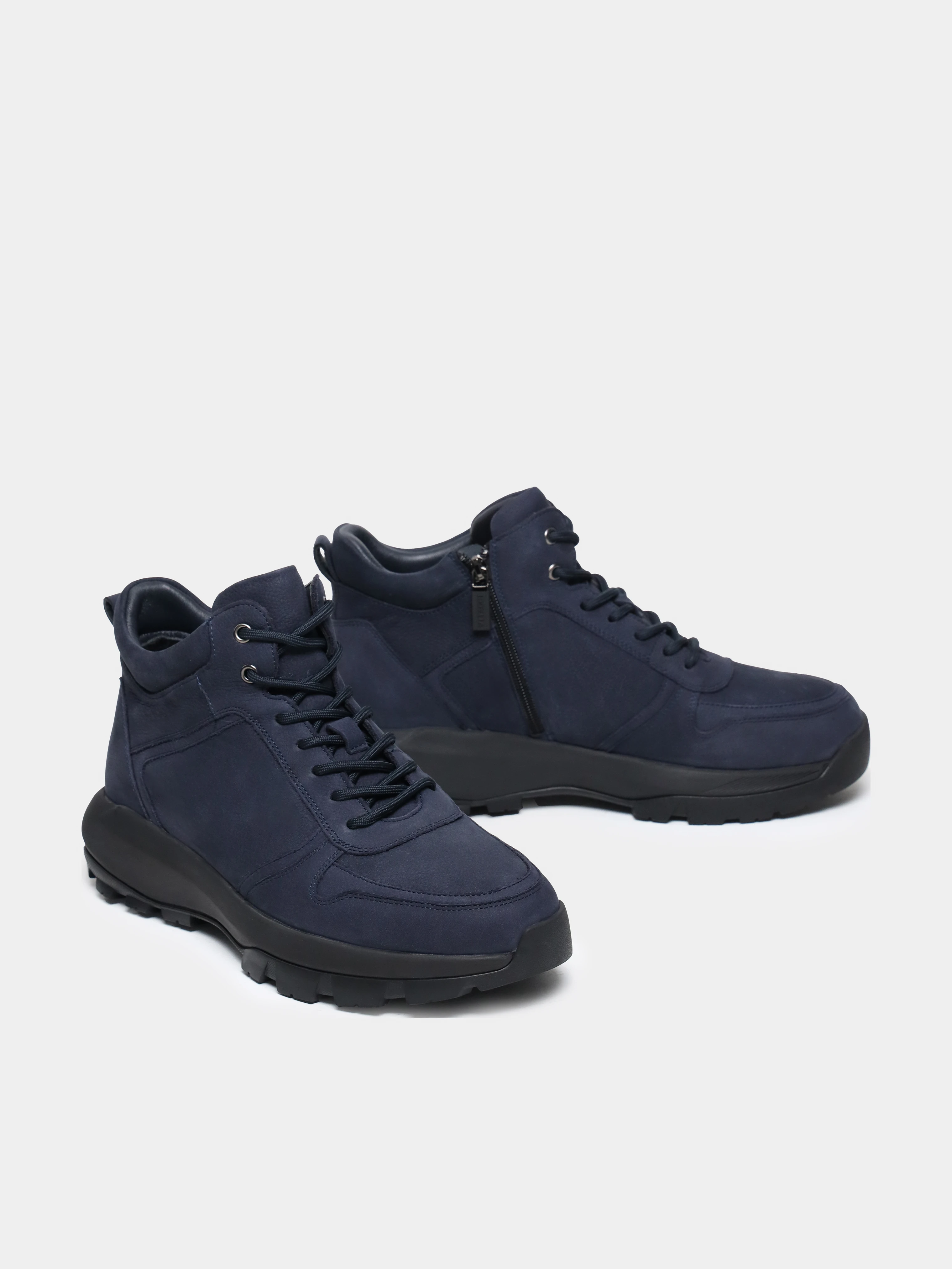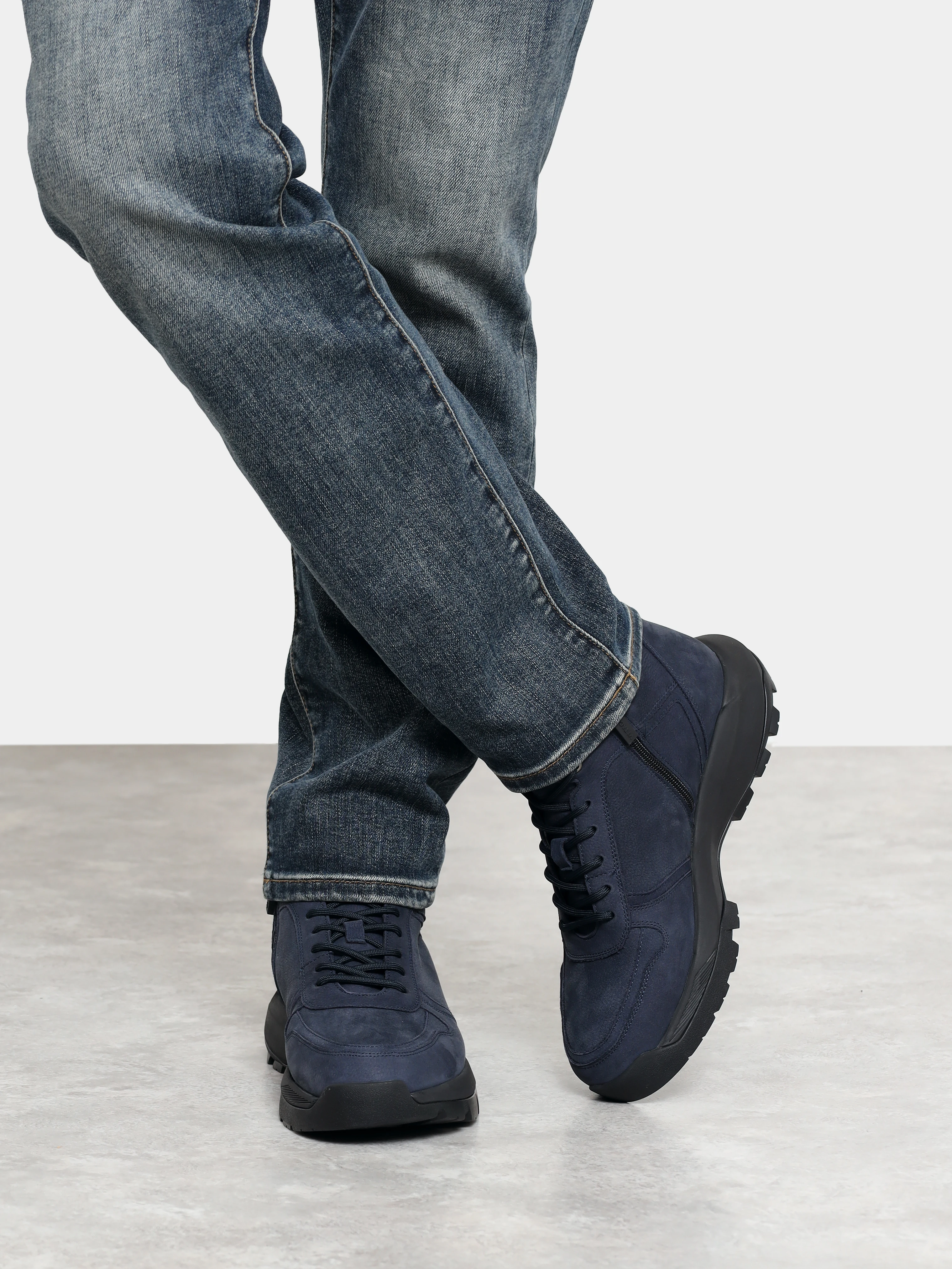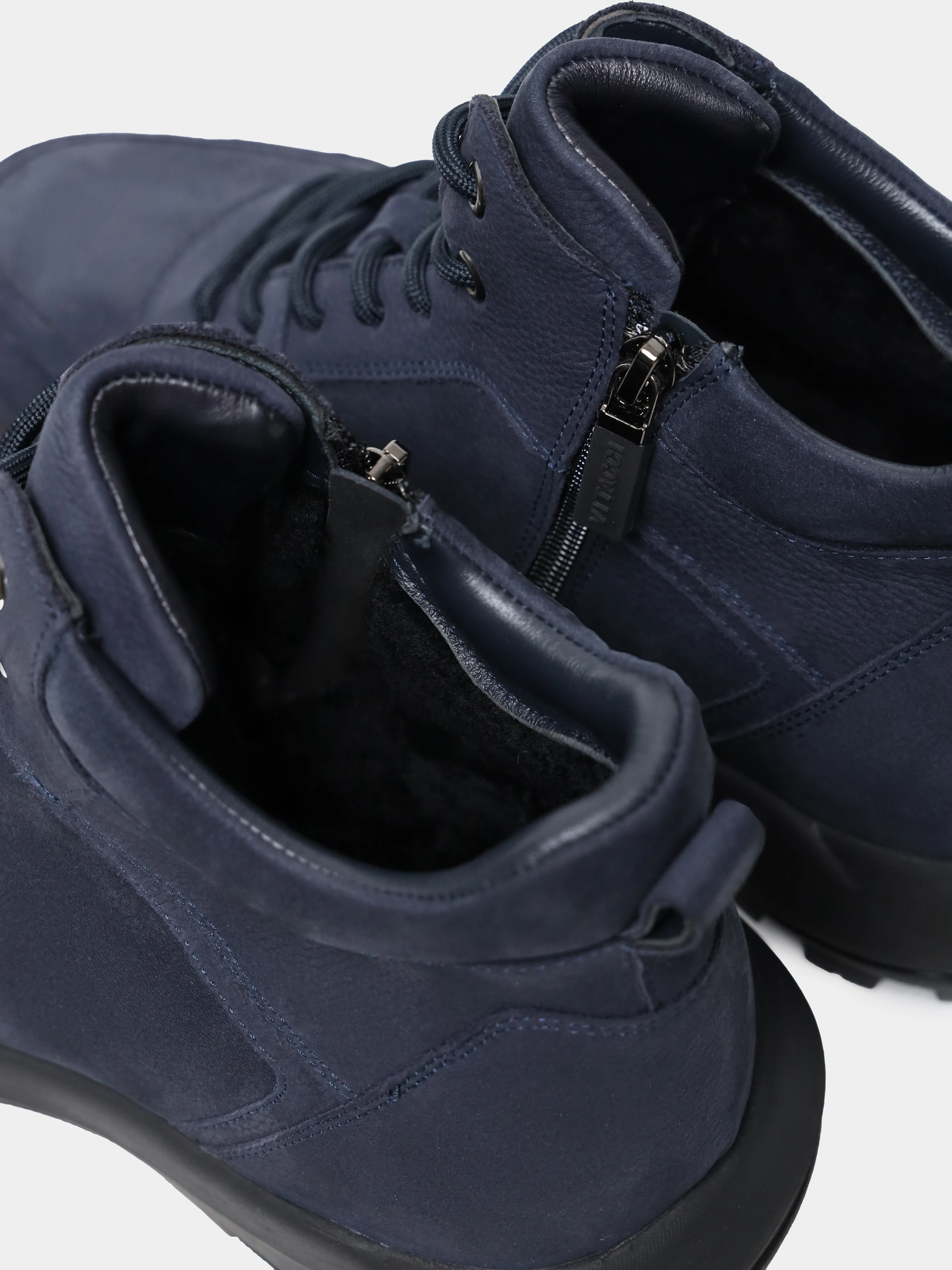 Ботинки мужские зимние, цвет синий, натуральный нубук