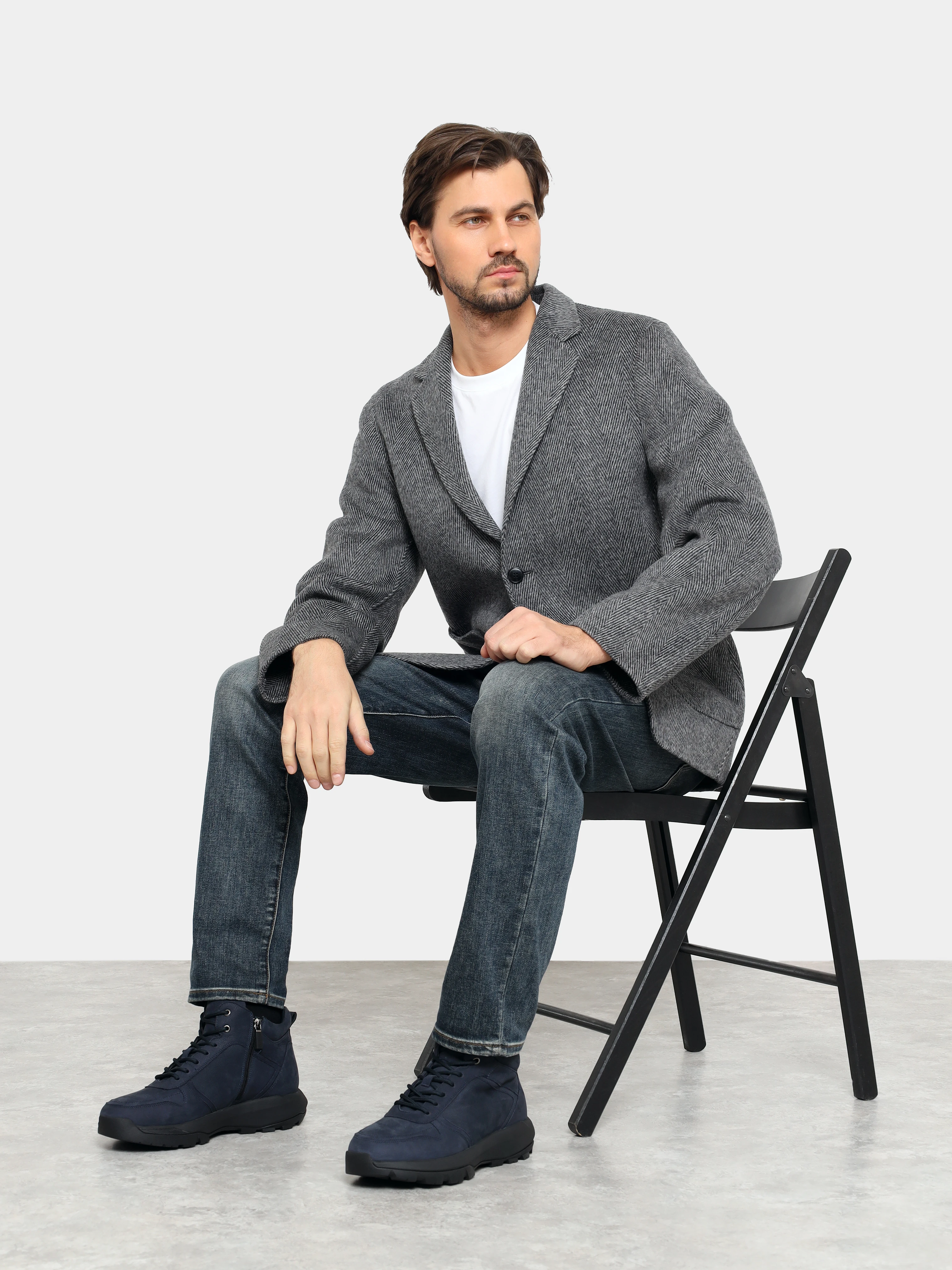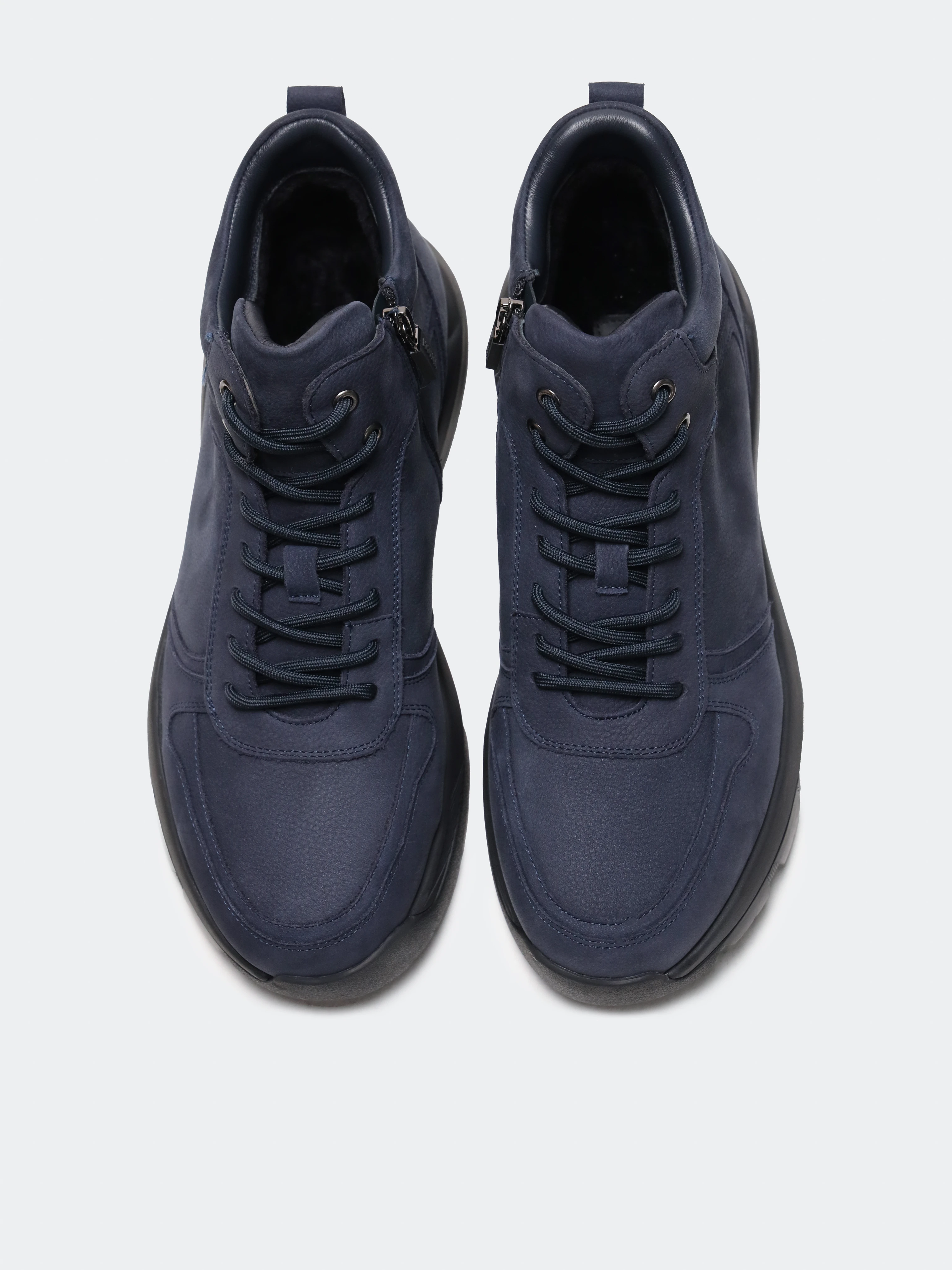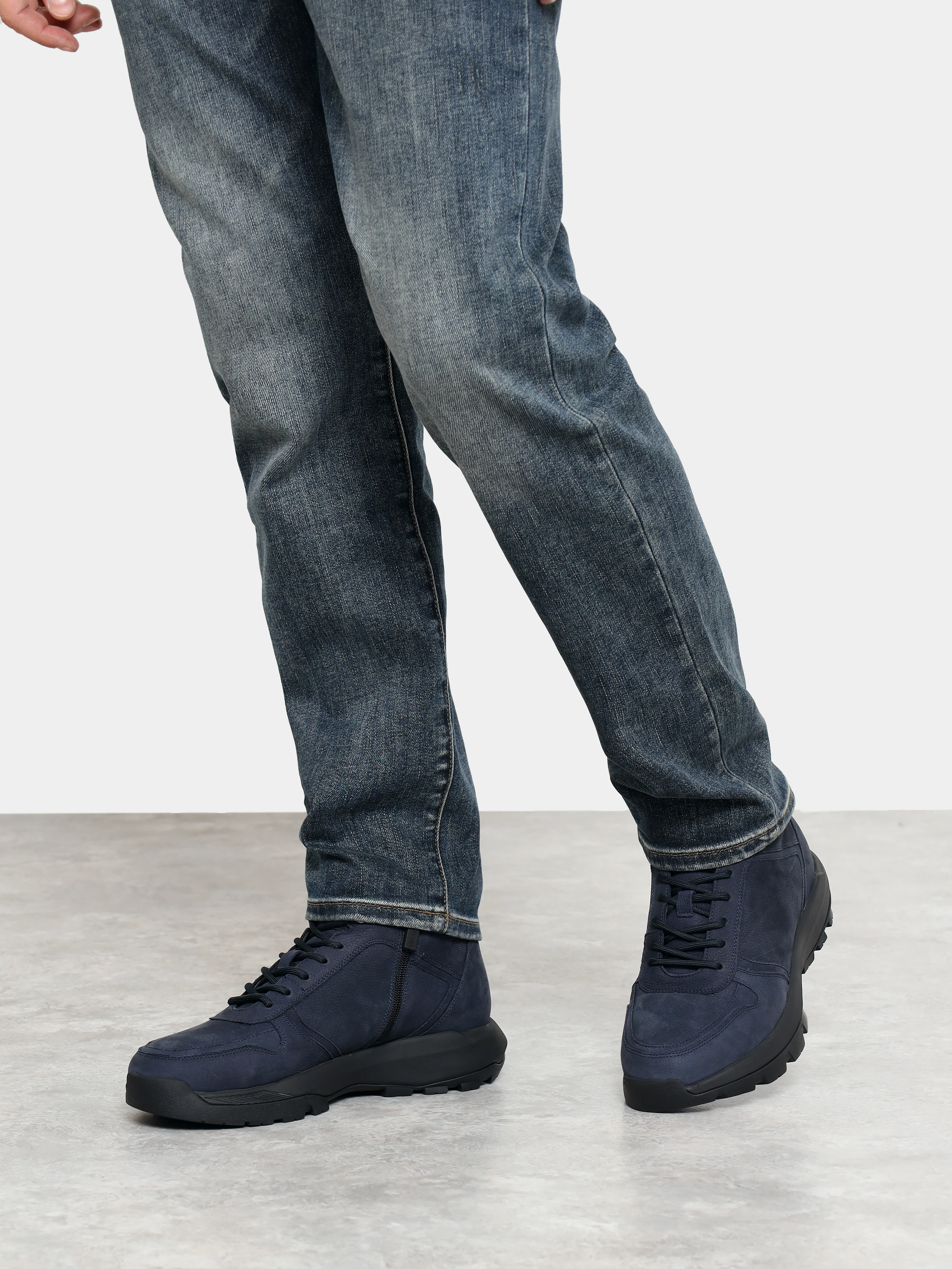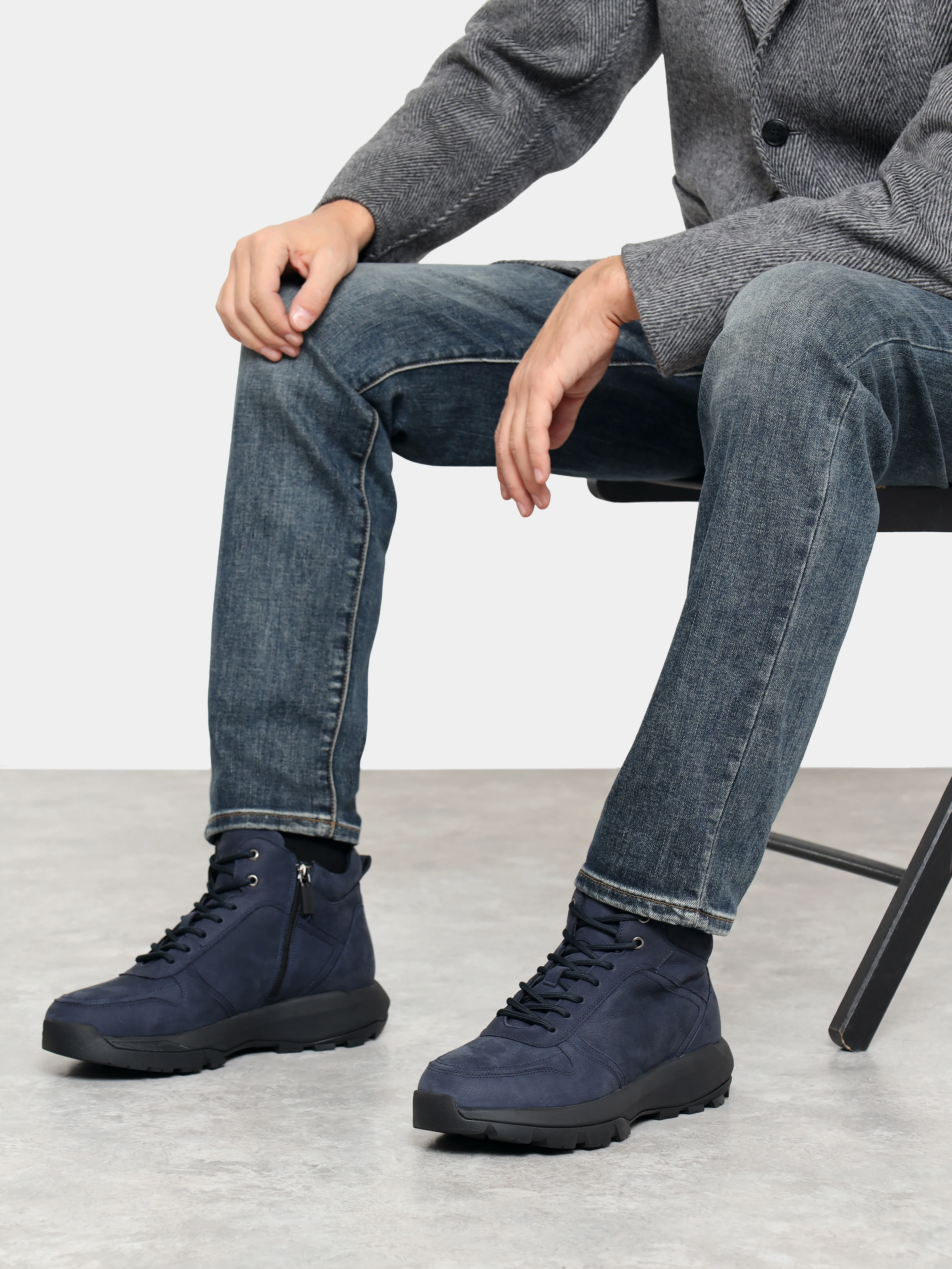 Ботинки мужские зимние, цвет синий, натуральный нубук