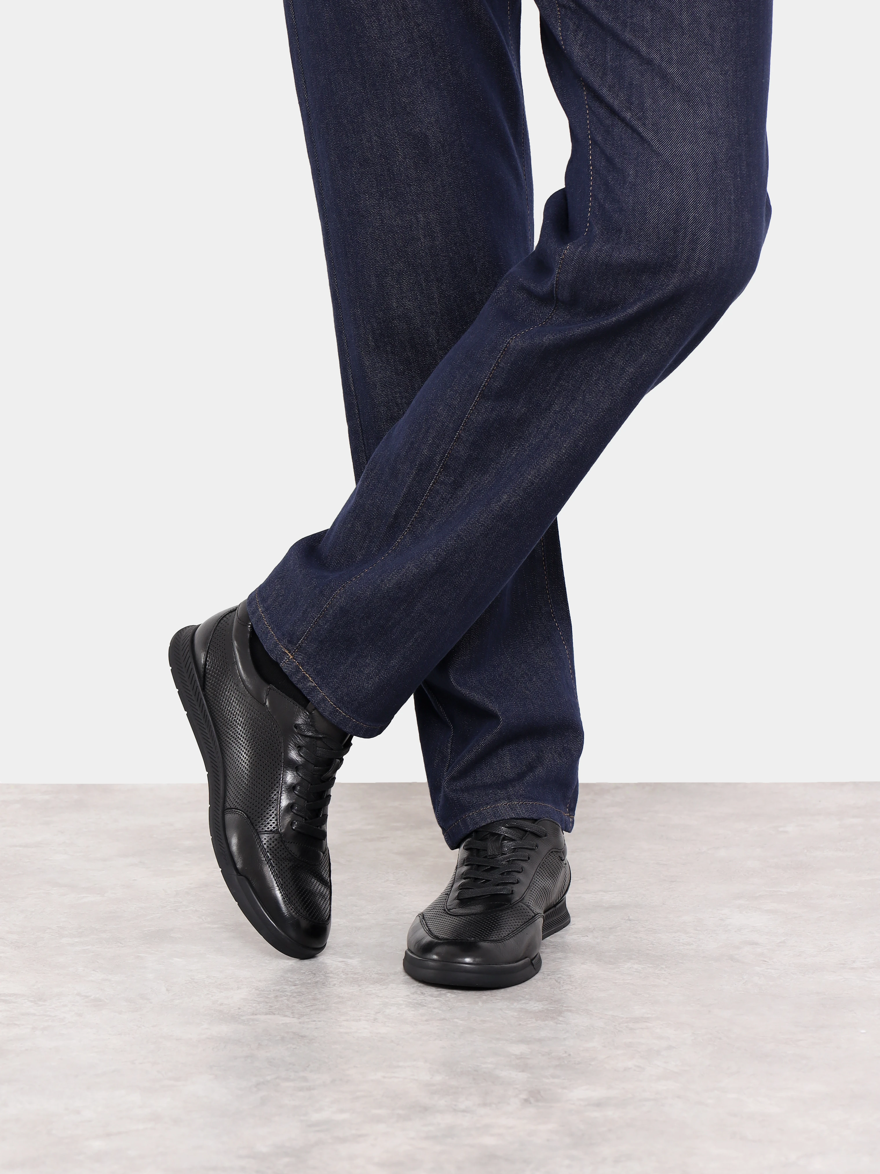 Кроссовки мужские летние, цвет черный, натуральная кожа