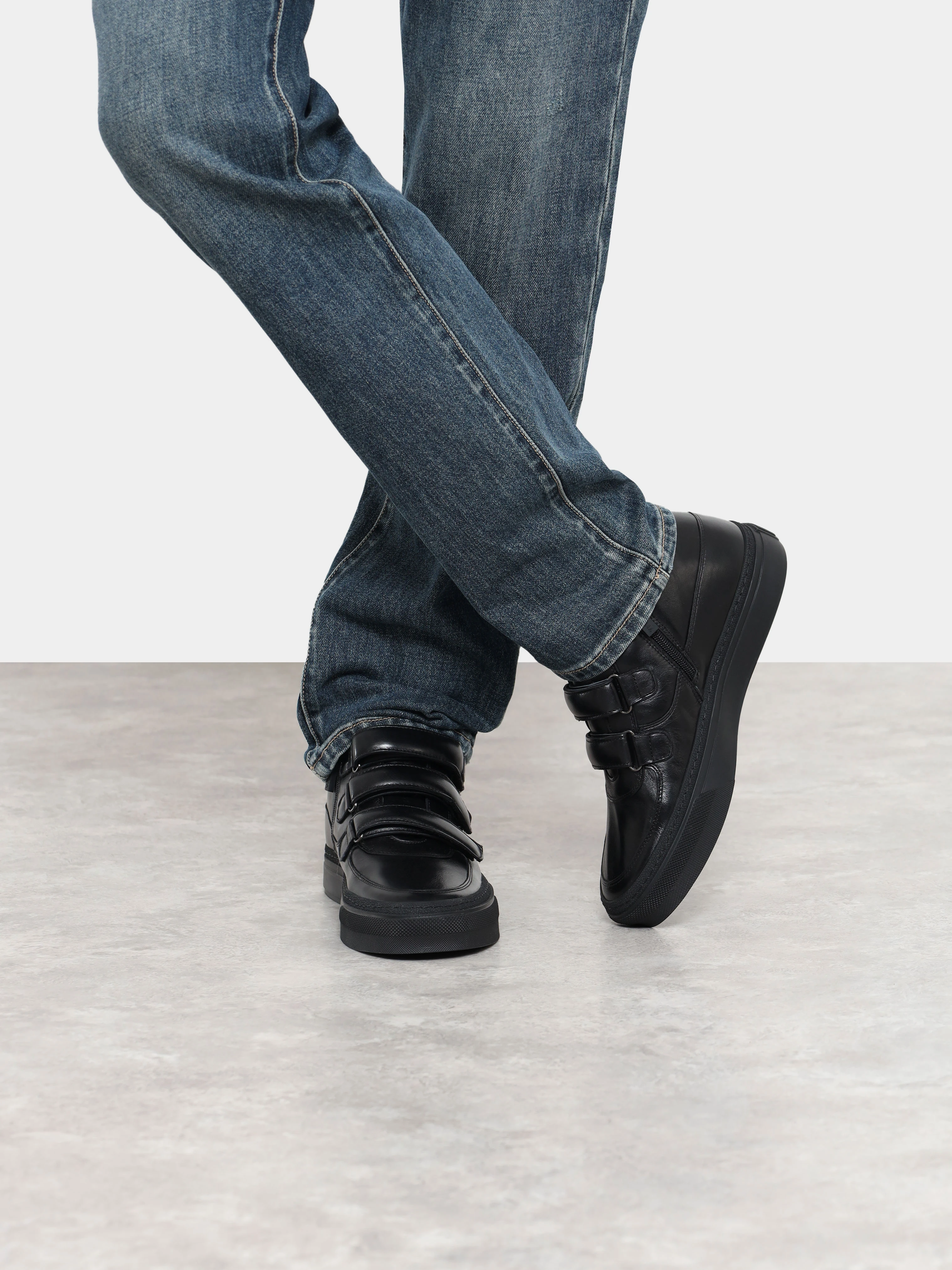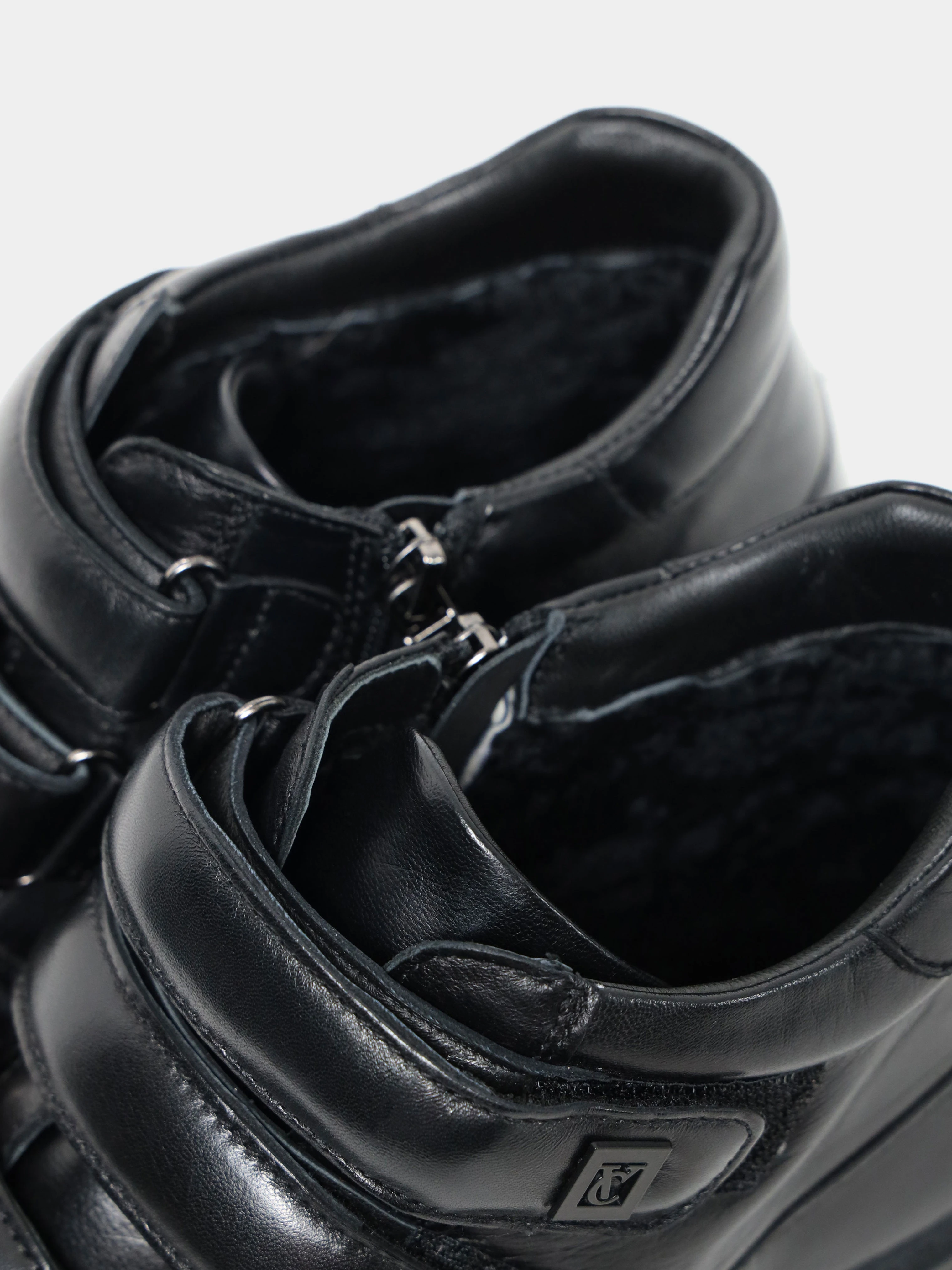 Кеды мужские зимние, цвет черный, натуральная кожа